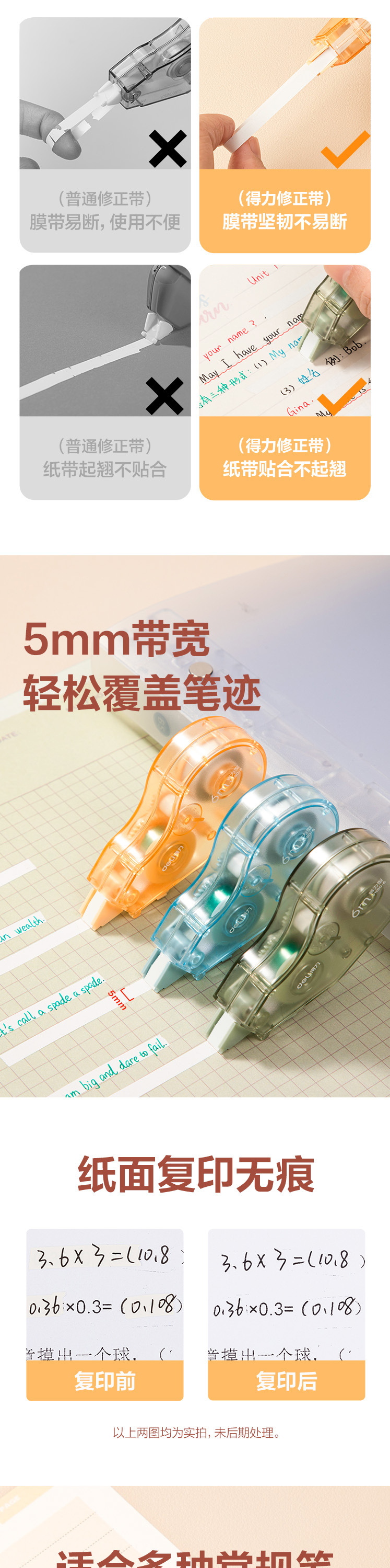 델리 VR80-6 노동절약형 교정벨트 6m 가벼운 음교정벨트 학생용 부드러운 교정벨트 노동절약형 교정벨트