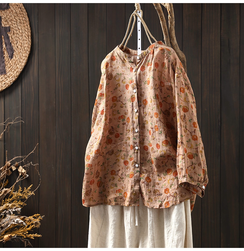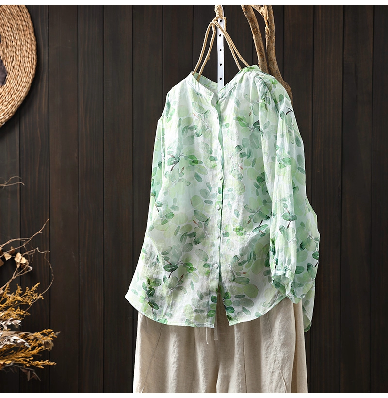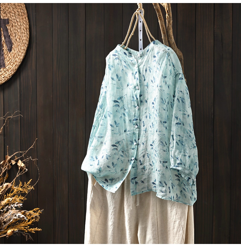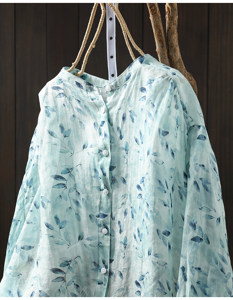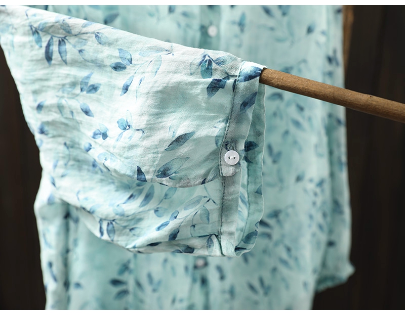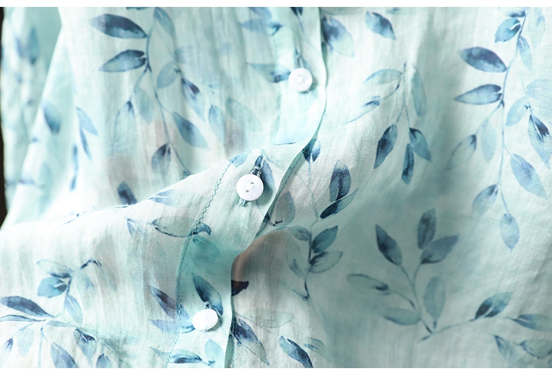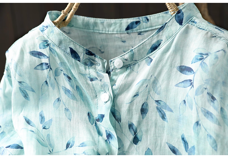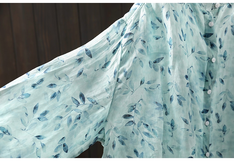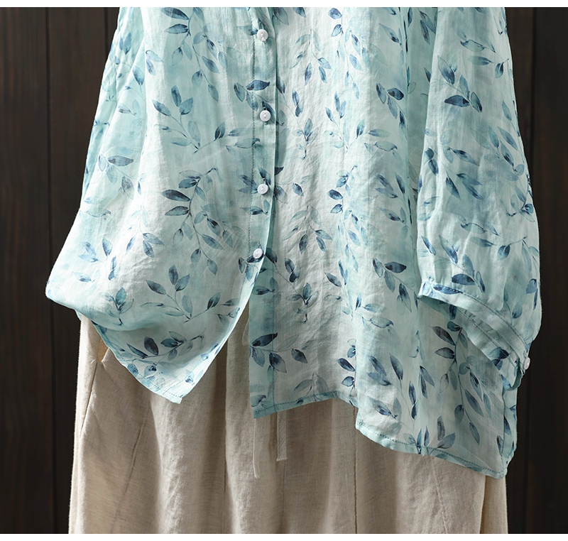 디지털 인쇄 칼라 라미 셔츠 여성의 느슨한 7 점 소매 여름 새로운 예술적 캐주얼 우아한 단일 브레스트 셔츠