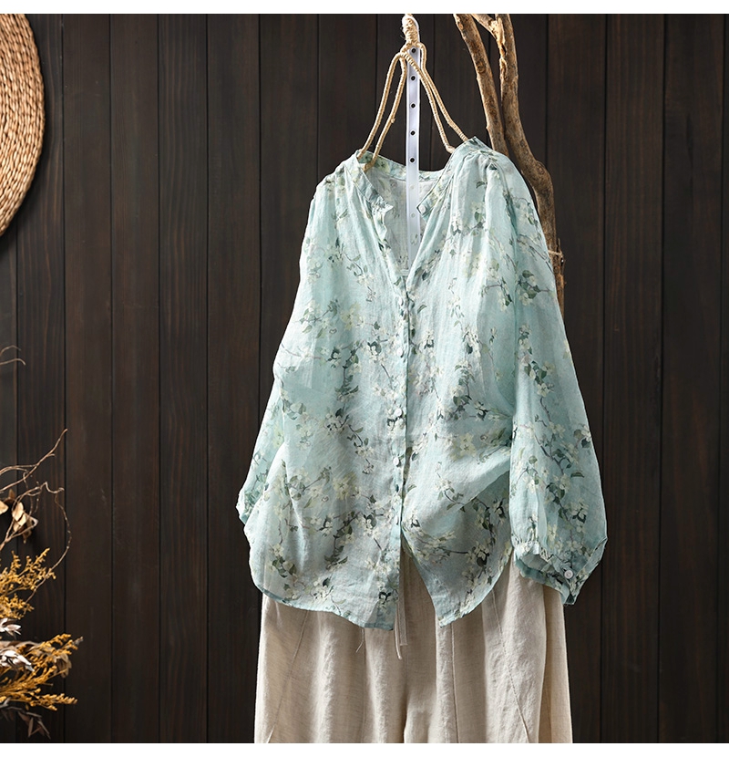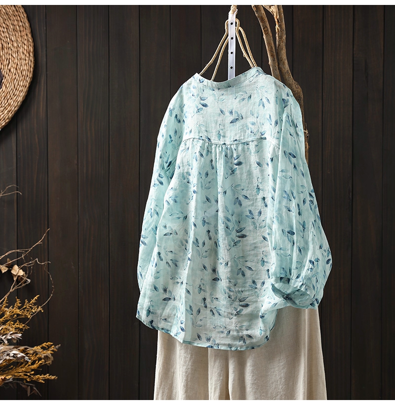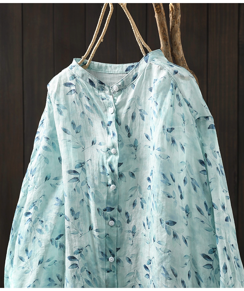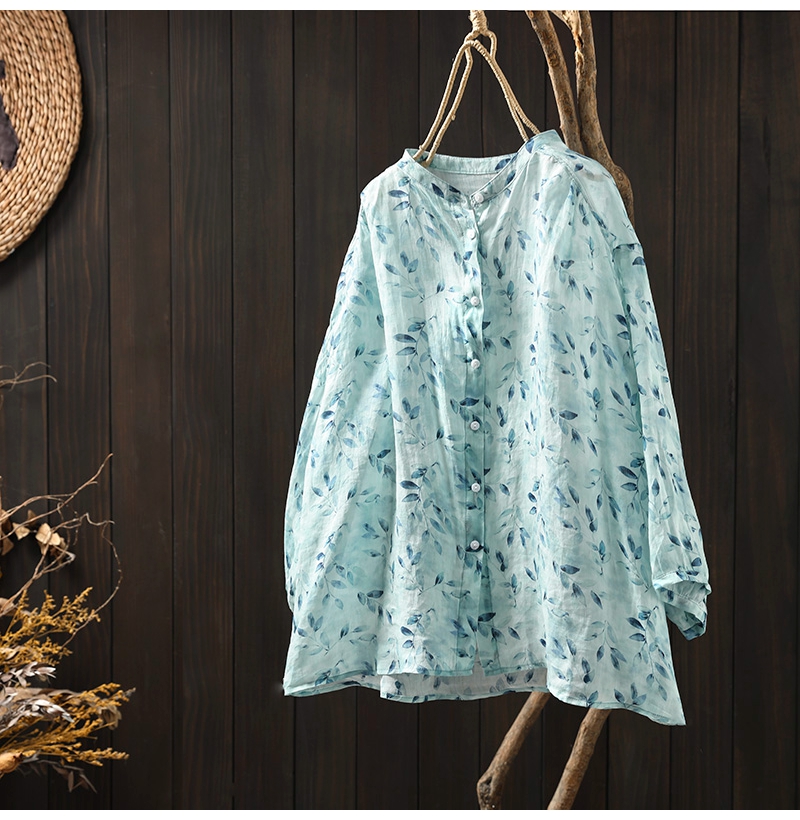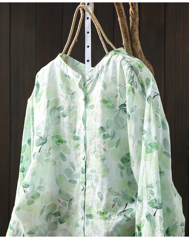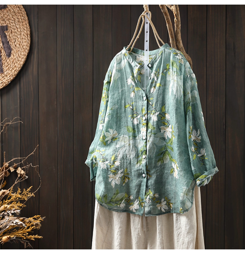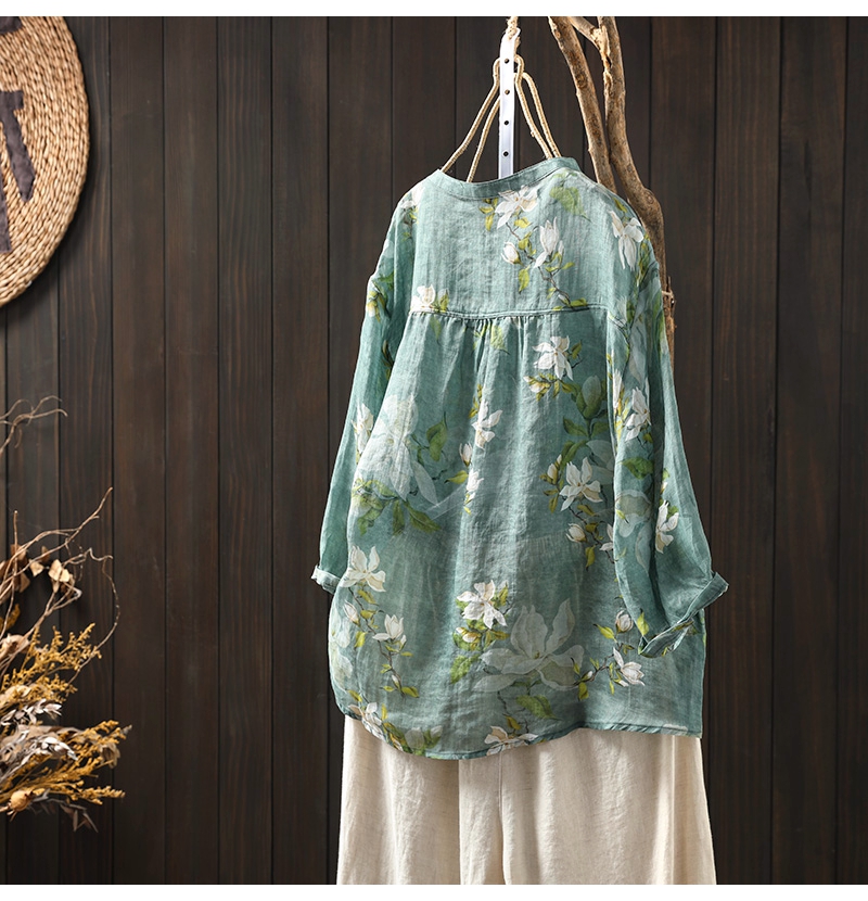 디지털 인쇄 칼라 라미 셔츠 여성의 느슨한 7 점 소매 여름 새로운 예술적 캐주얼 우아한 단일 브레스트 셔츠