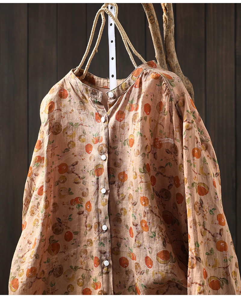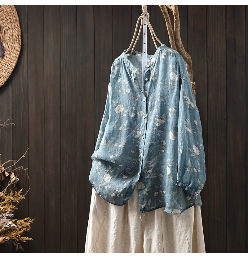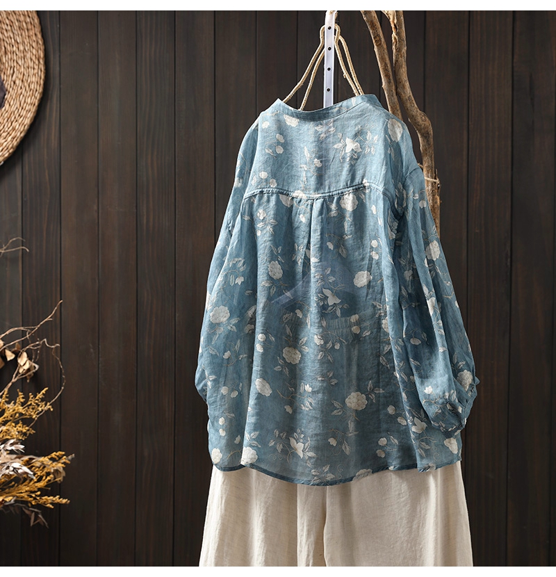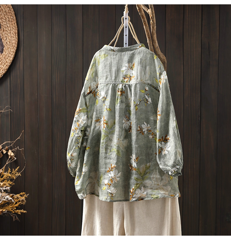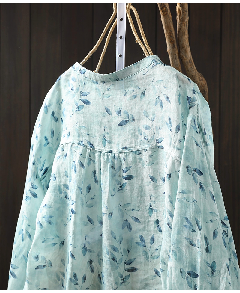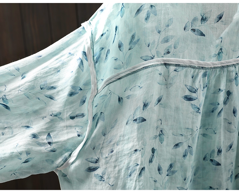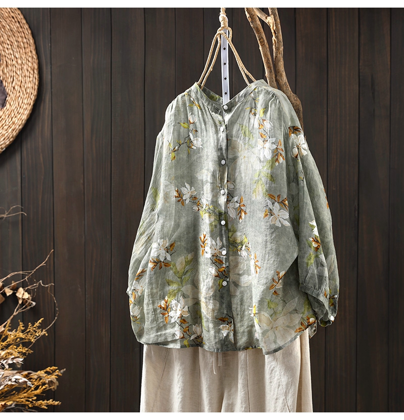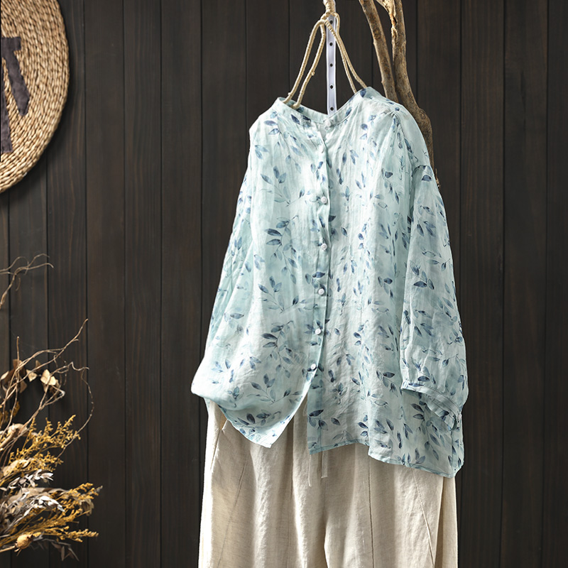 디지털 인쇄 칼라 라미 셔츠 여성의 느슨한 7 점 소매 여름 새로운 예술적 캐주얼 우아한 단일 브레스트 셔츠