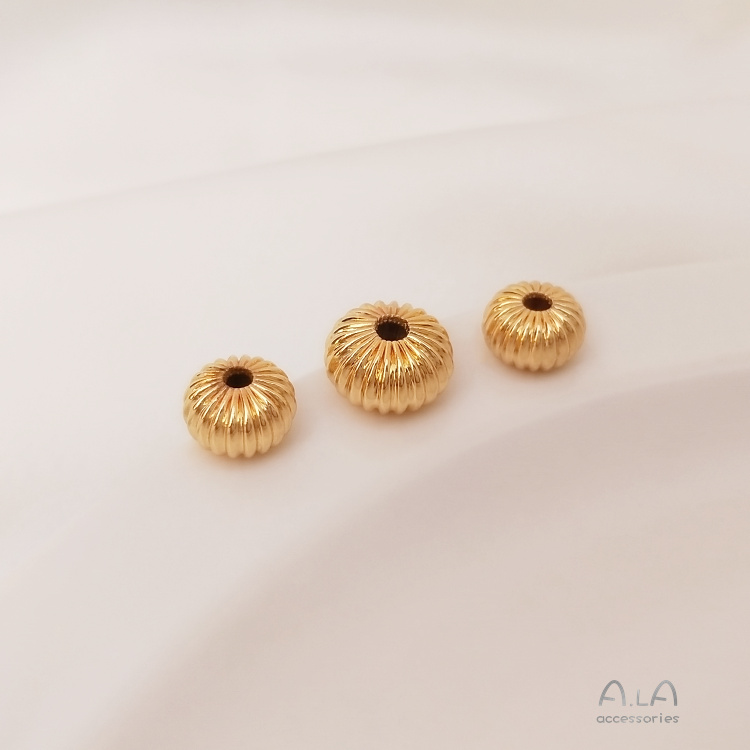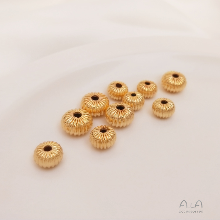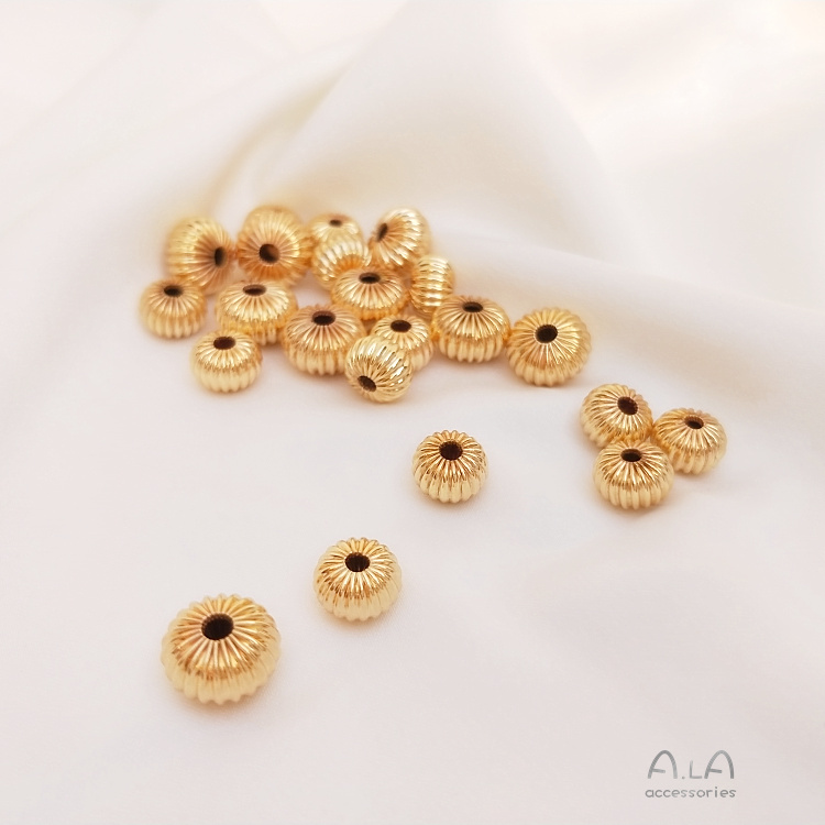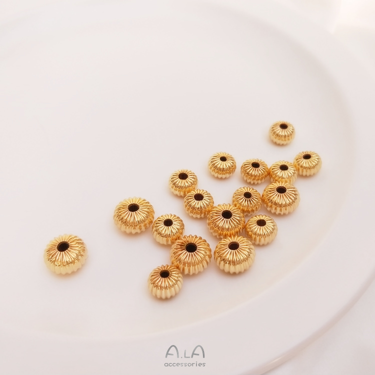 14K 골드 컬러 유지 호박 구슬 줄무늬 플랫 스페이서 구슬 주판 구슬 수제 DIY 쥬얼리 느슨한 구슬 팔찌 보석 액세서리스토어 가기
