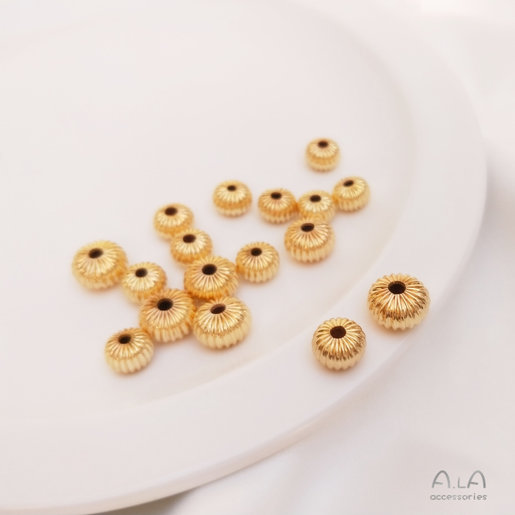 14K 골드 컬러 유지 호박 구슬 줄무늬 플랫 스페이서 구슬 주판 구슬 수제 DIY 쥬얼리 느슨한 구슬 팔찌 보석 액세서리