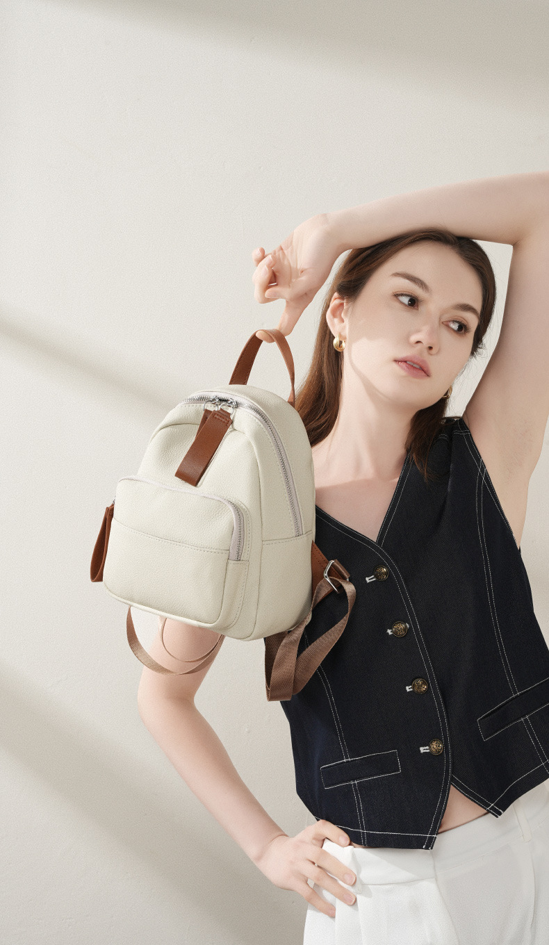 정품 가죽 배낭 여성 대용량 2025 새로운 도착 유행 올매치 탑 레이어 Cowhide 캐주얼 배낭스토어 가기