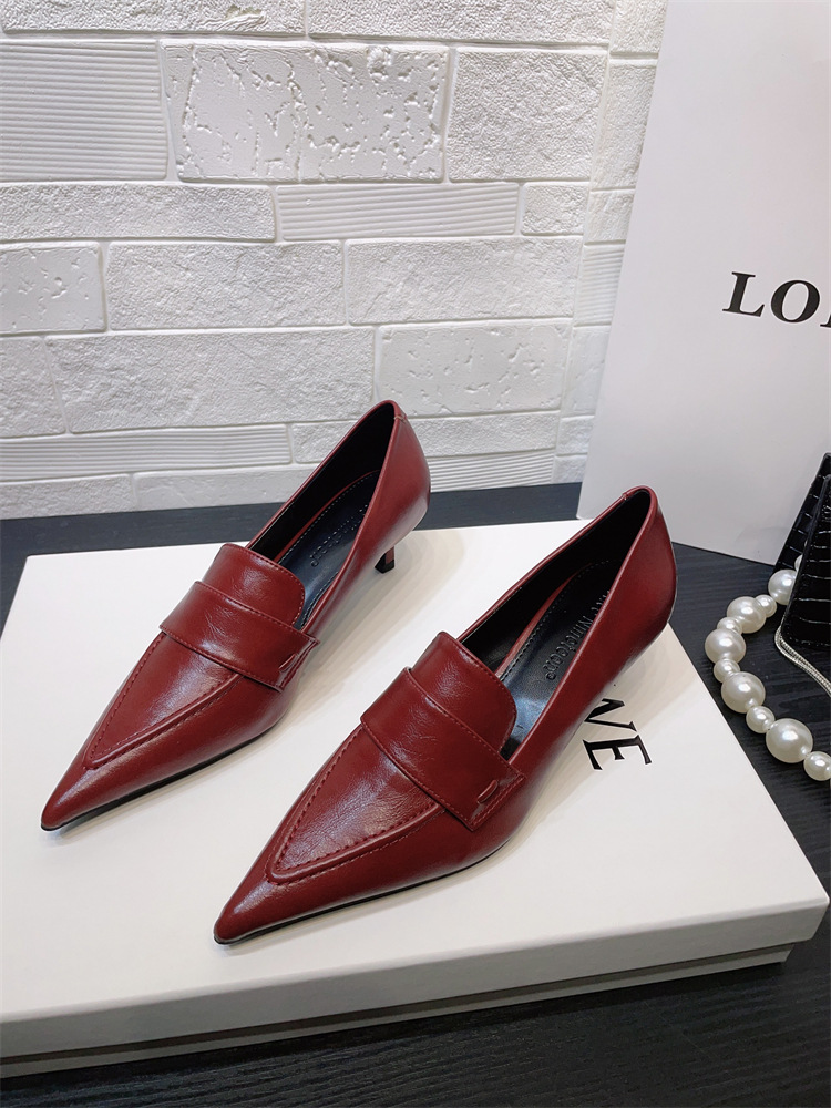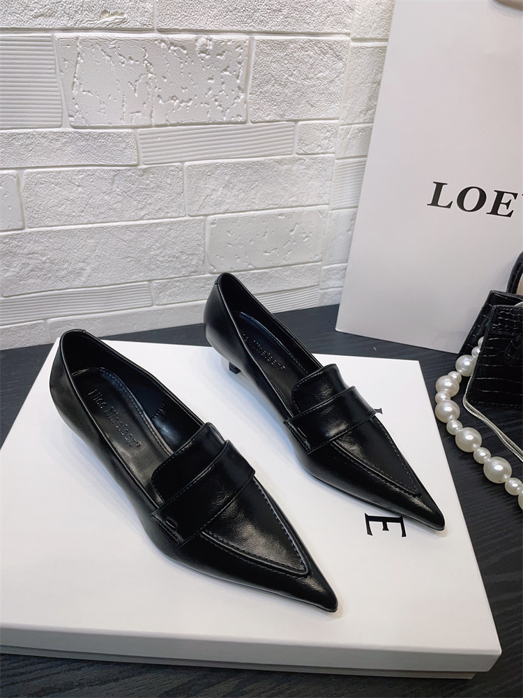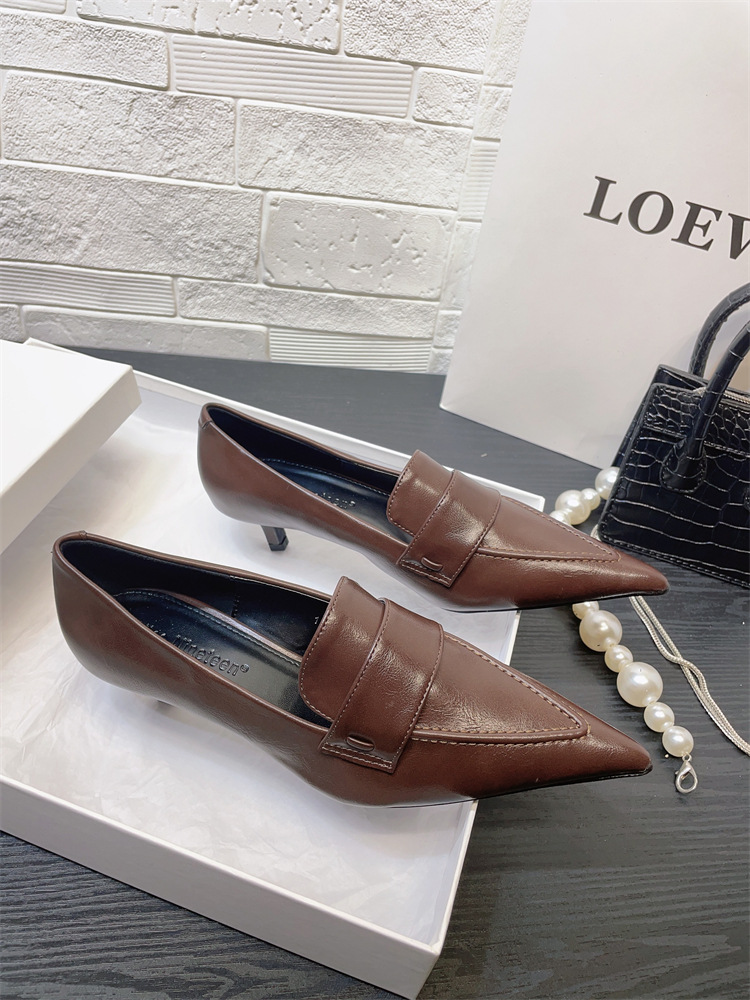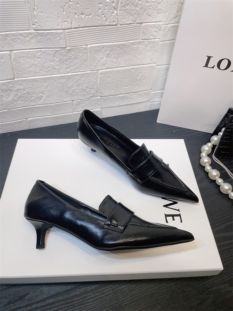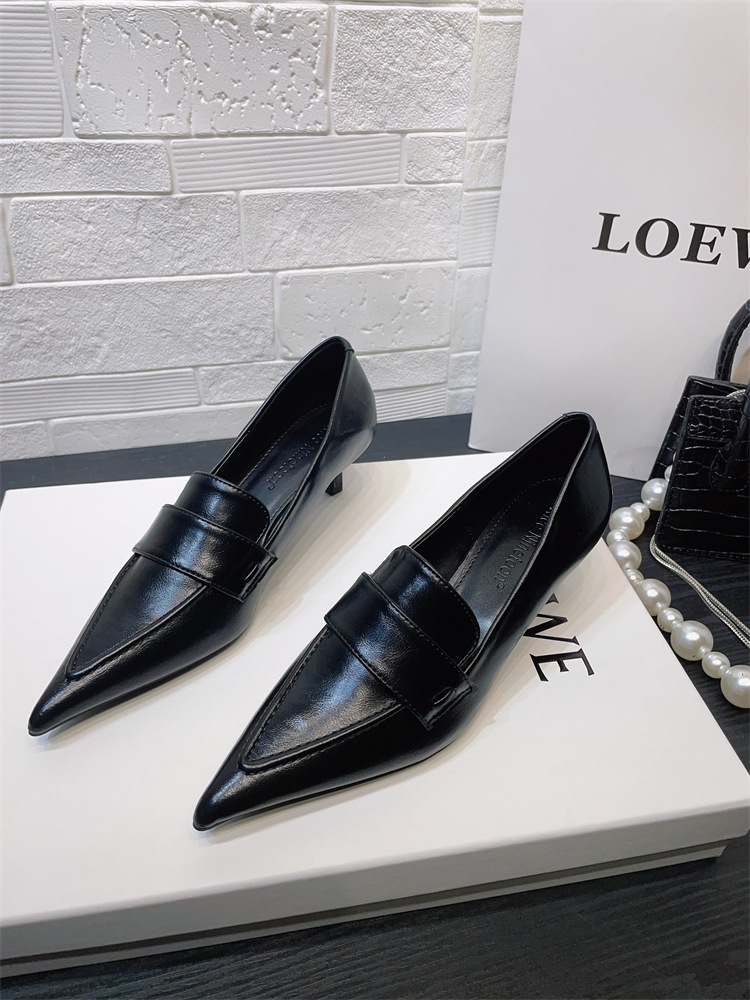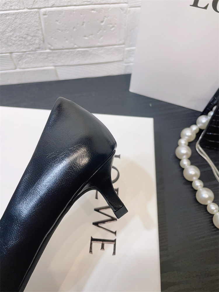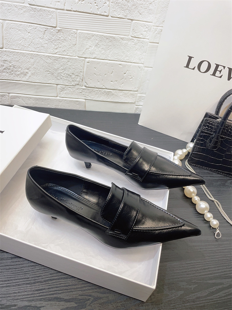유럽과 미국 스타일의 작업장 하이힐 2024 봄과 가을 스틸레토 힐 딥 입 포인팅 싱글 신발 기질 미드 힐 통근 전문 여성 신발스토어 가기