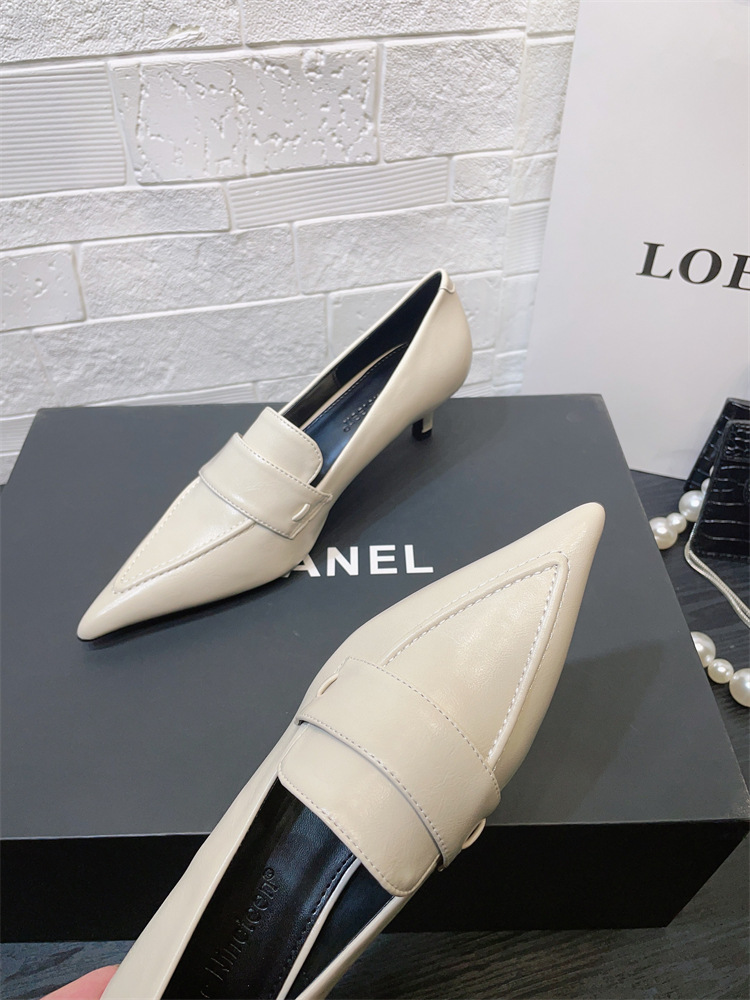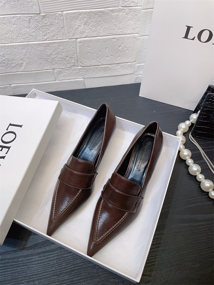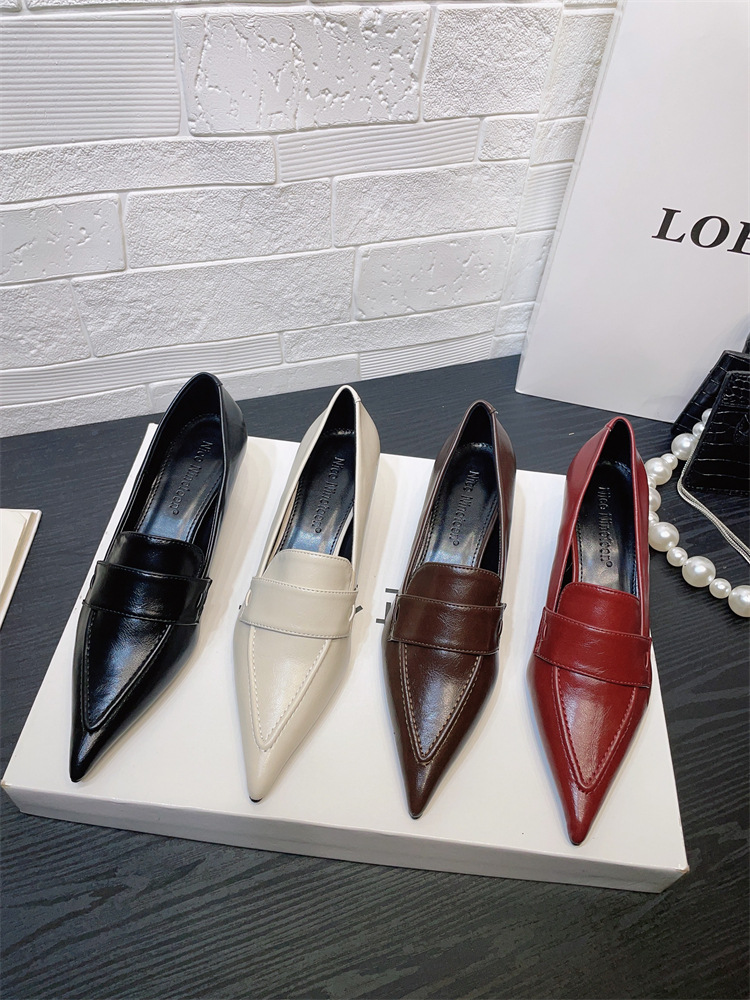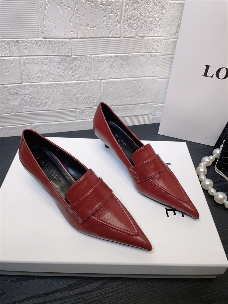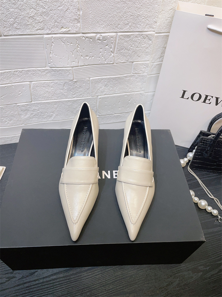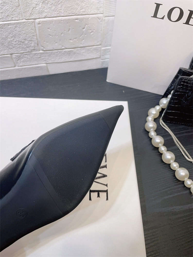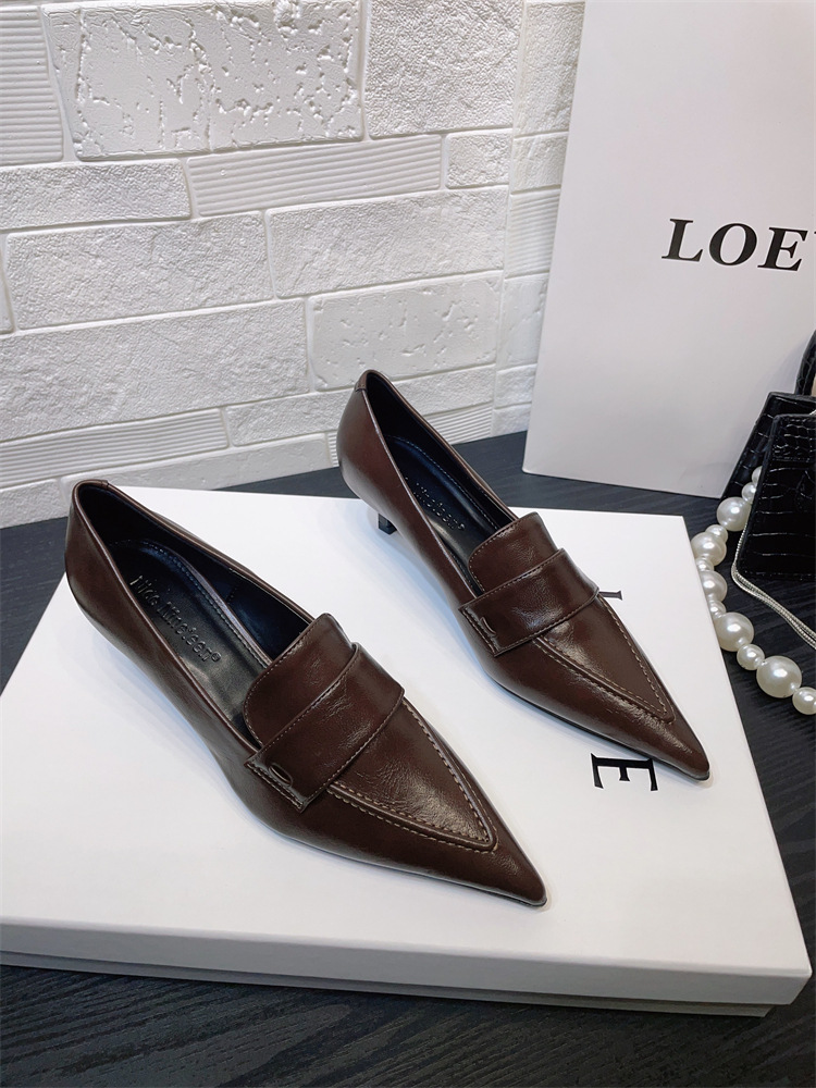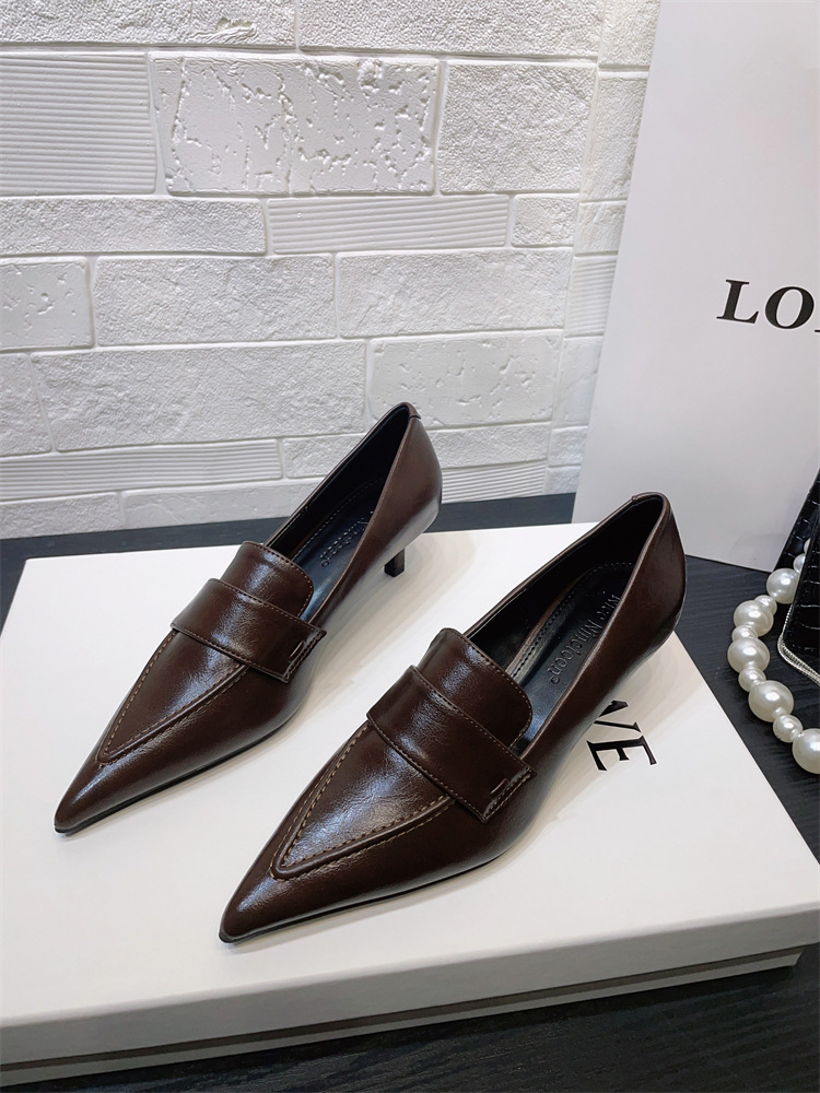유럽과 미국 스타일의 작업장 하이힐 2024 봄과 가을 스틸레토 힐 딥 입 포인팅 싱글 신발 기질 미드 힐 통근 전문 여성 신발스토어 가기