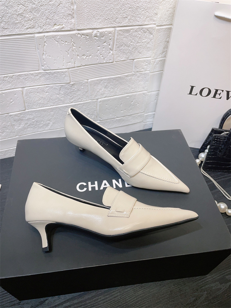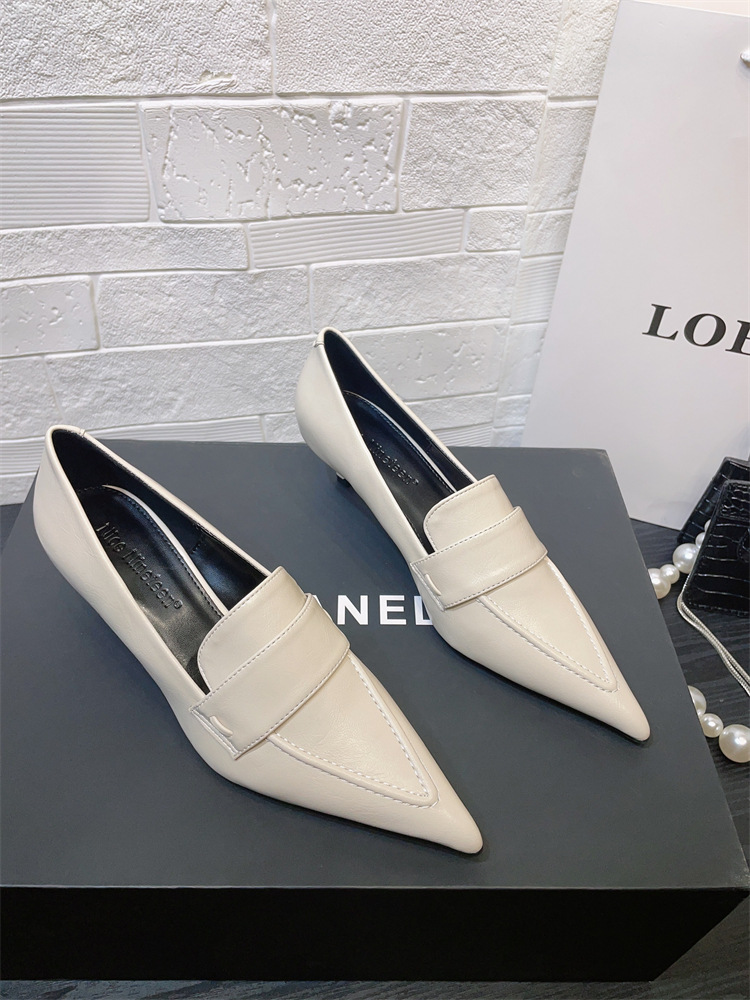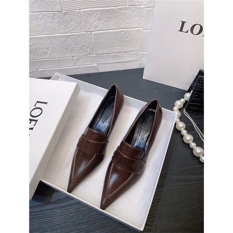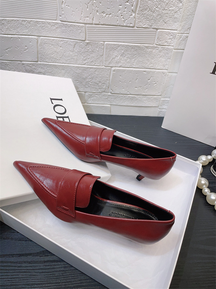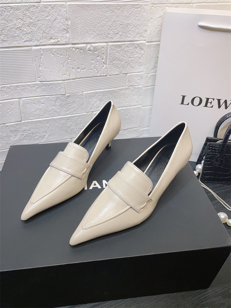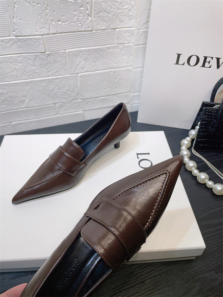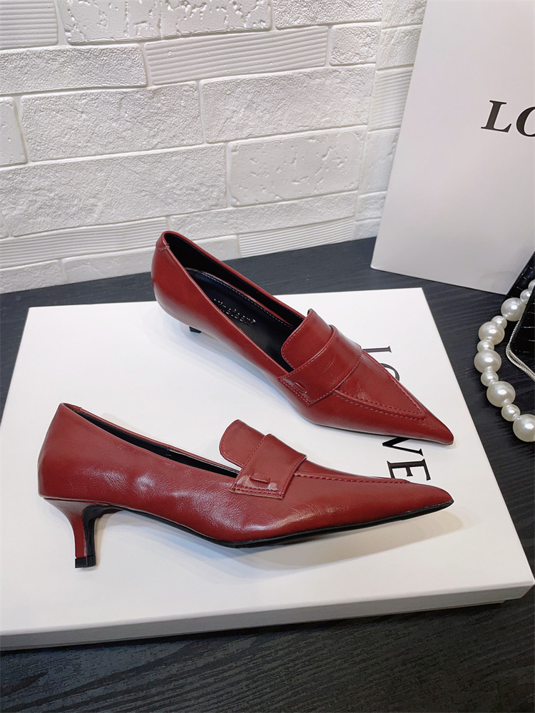 유럽과 미국 스타일의 작업장 하이힐 2024 봄과 가을 스틸레토 힐 딥 입 포인팅 싱글 신발 기질 미드 힐 통근 전문 여성 신발스토어 가기