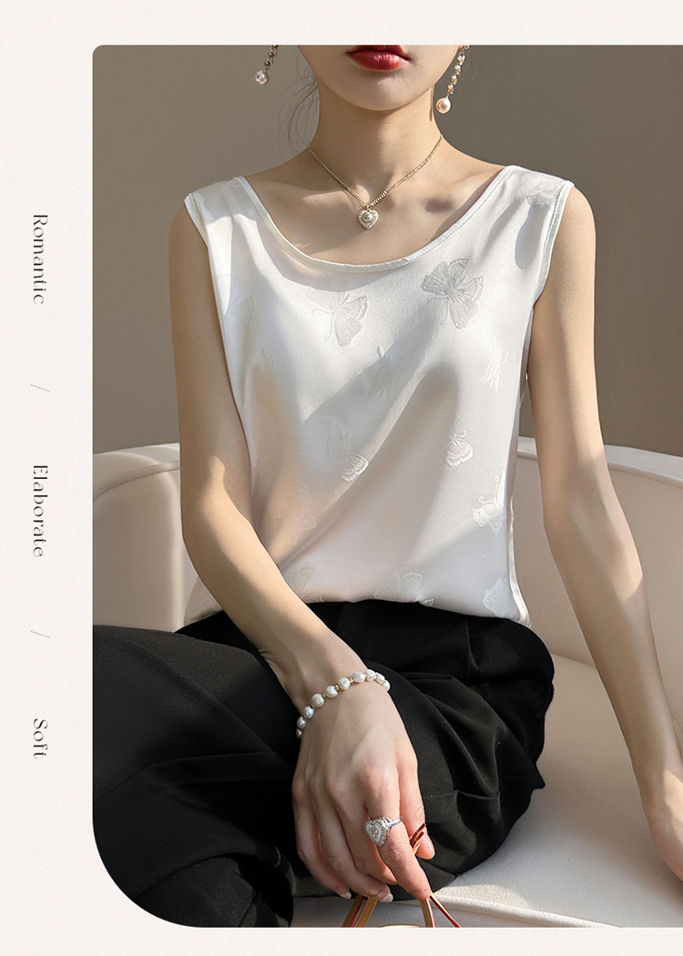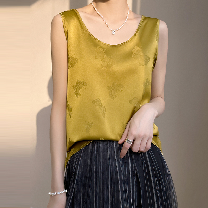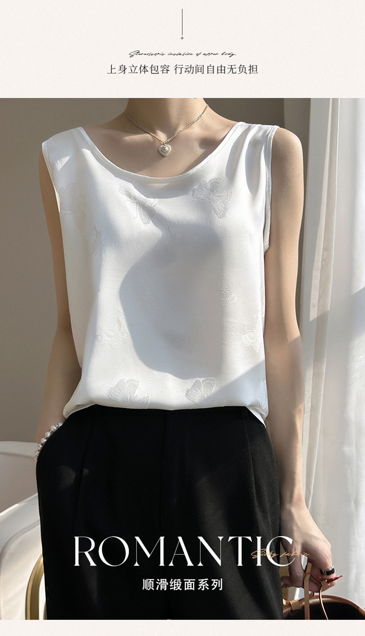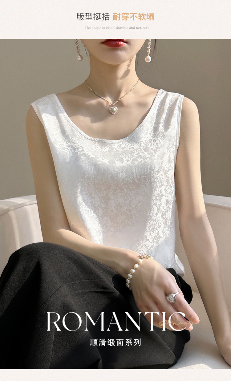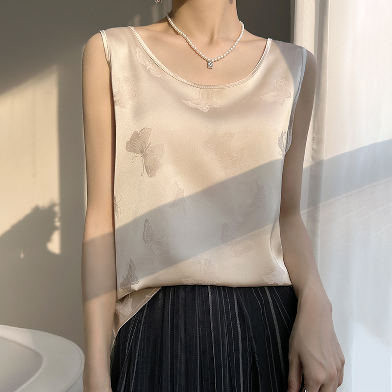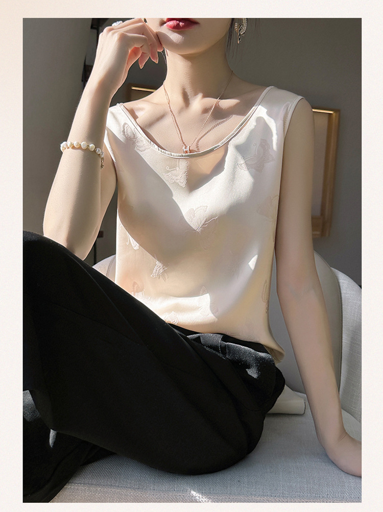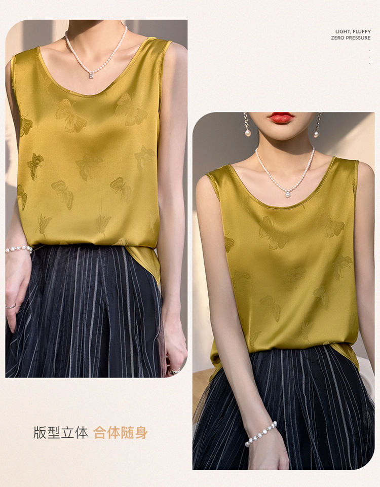 2025 고급 센스 품질 실크 카미 솔 여성 세트 내부 세트 기지 새틴 아세트산 민소매 티셔츠