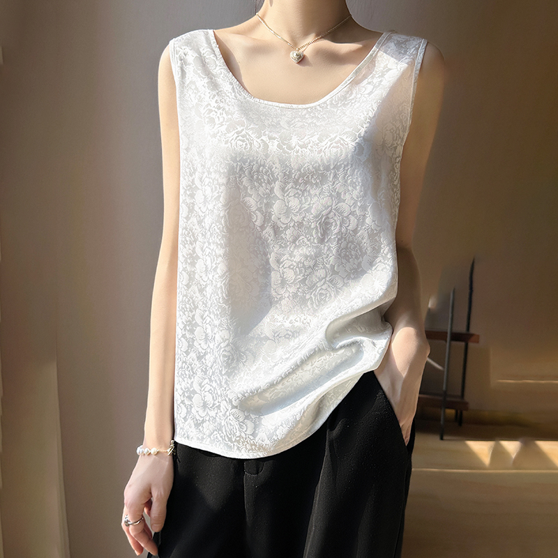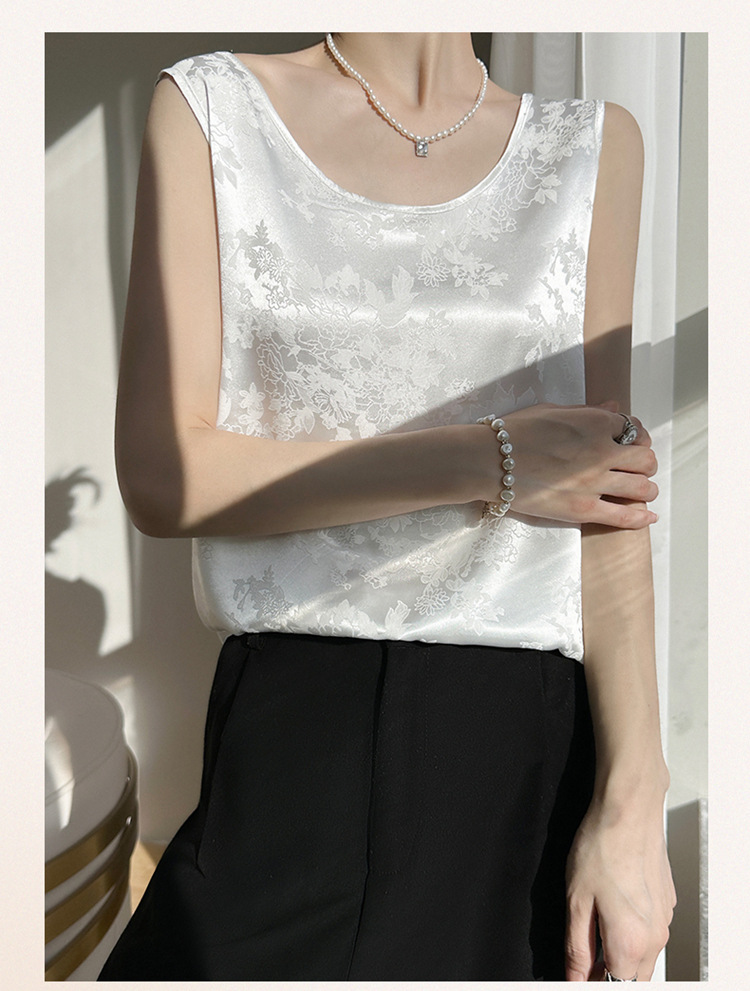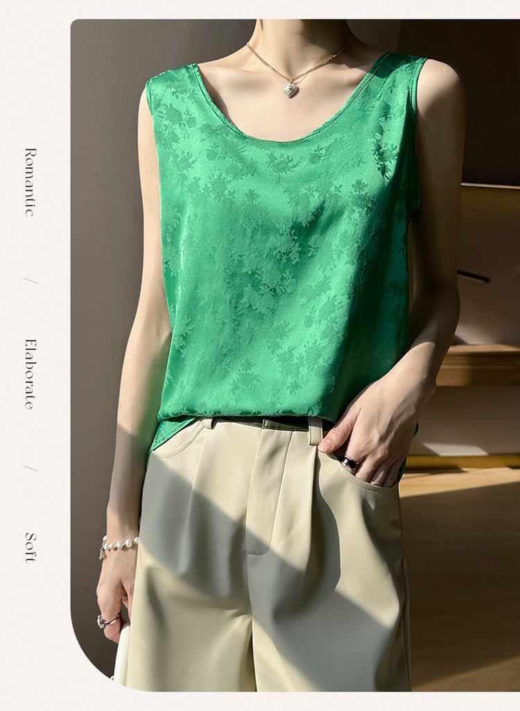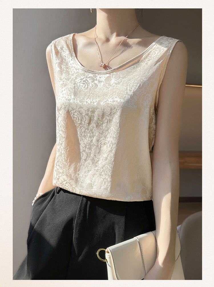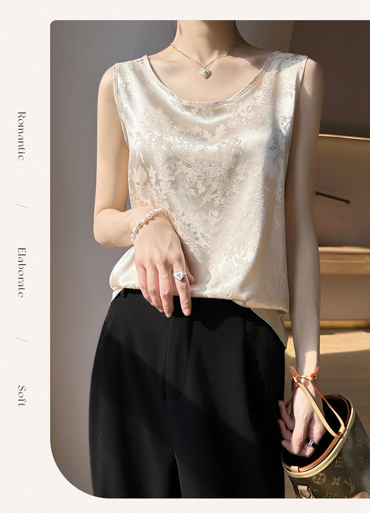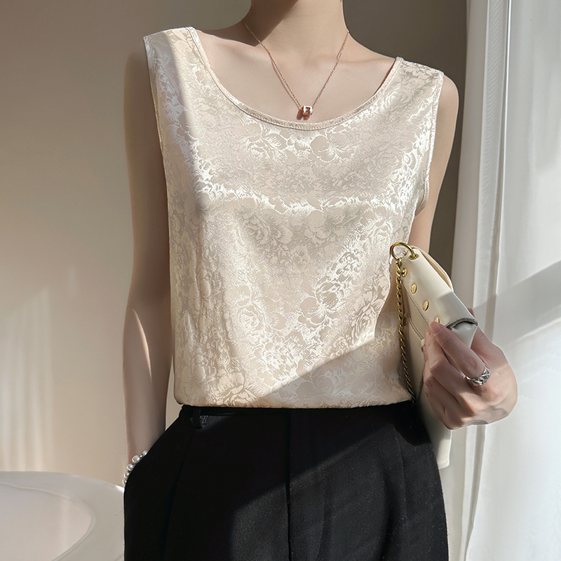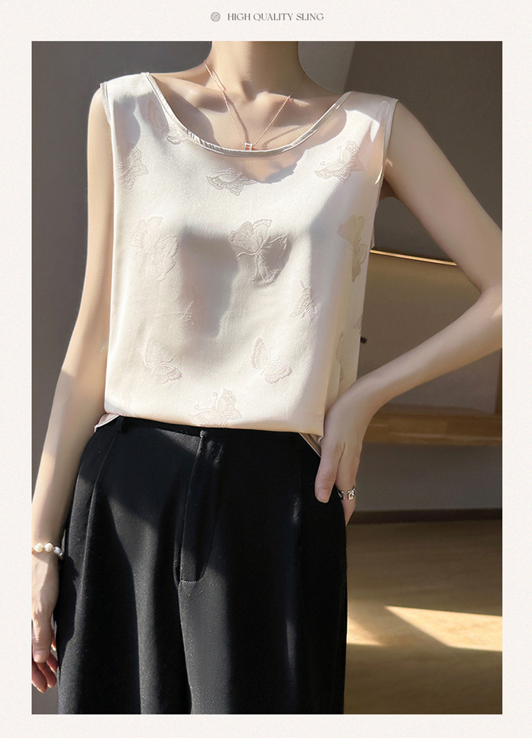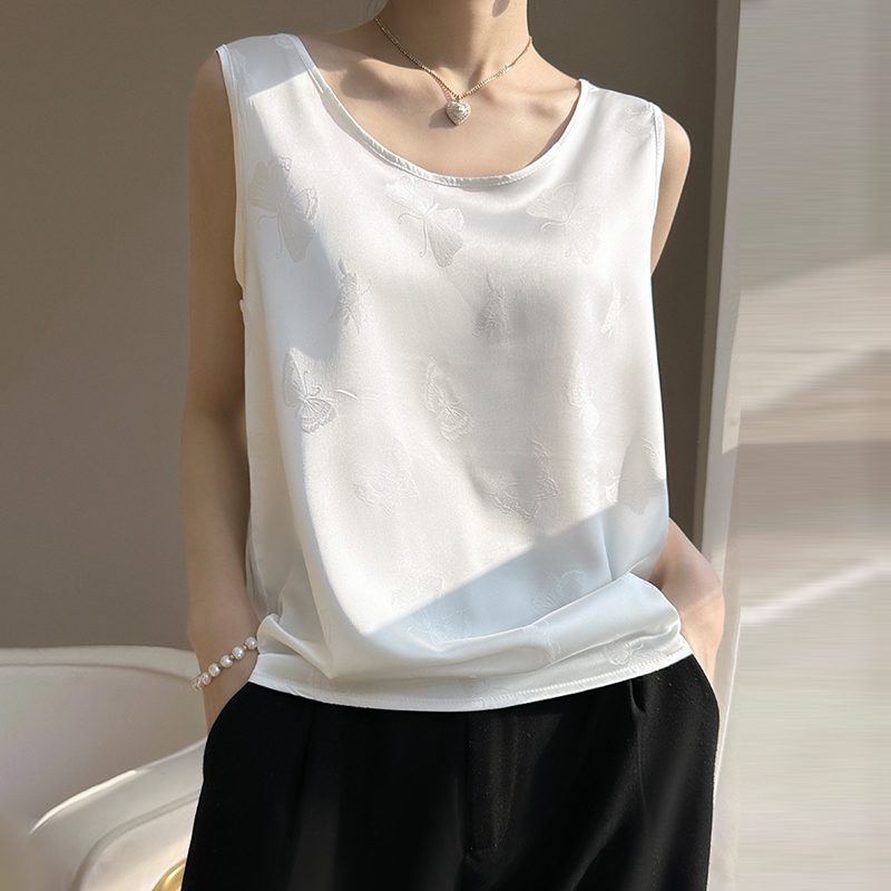 2025 고급 센스 품질 실크 카미 솔 여성 세트 내부 세트 기지 새틴 아세트산 민소매 티셔츠