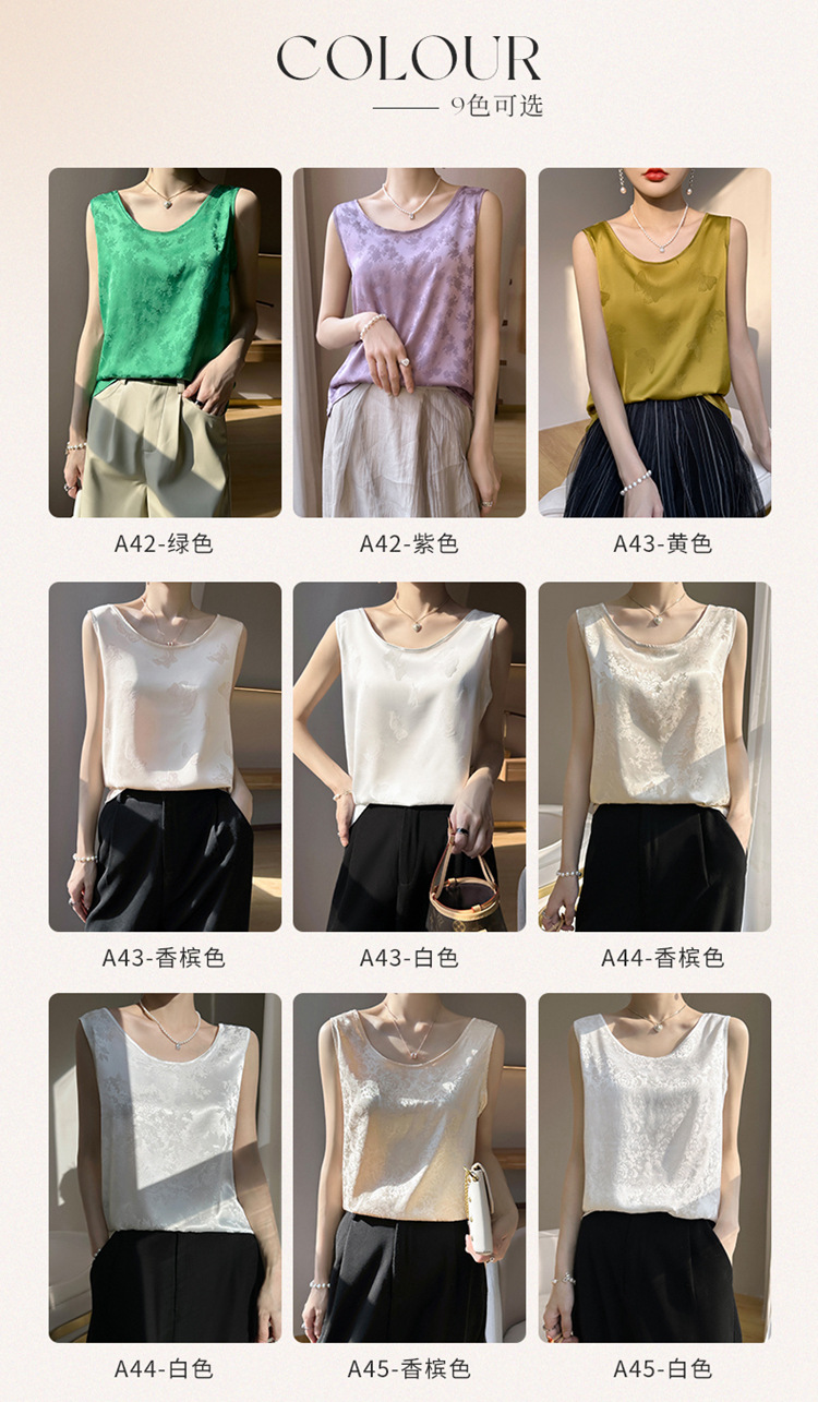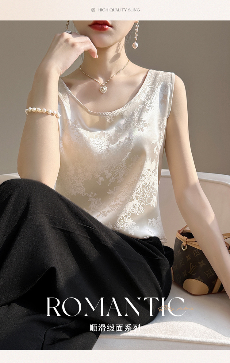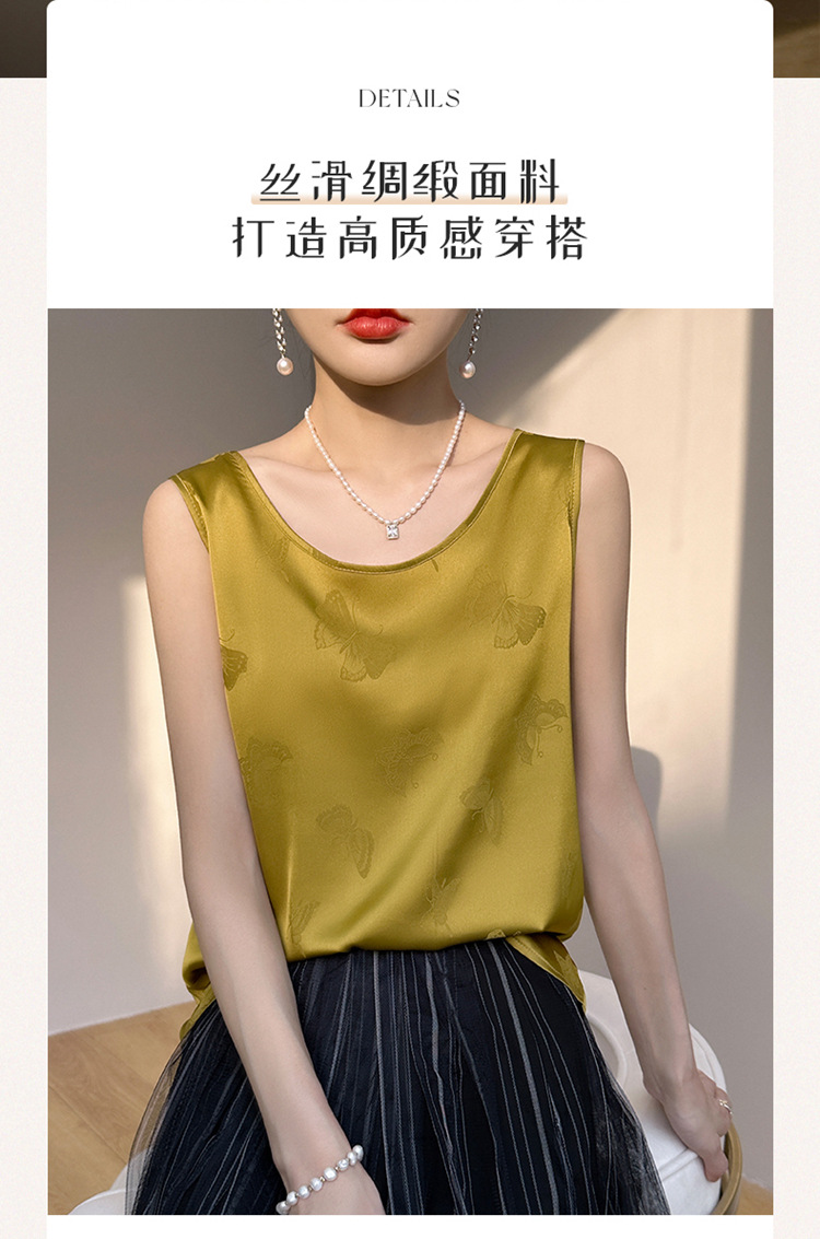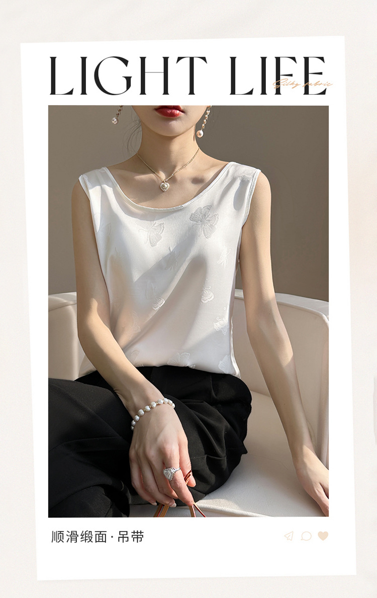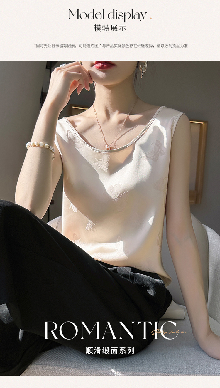 2025 고급 센스 품질 실크 카미 솔 여성 세트 내부 세트 기지 새틴 아세트산 민소매 티셔츠스토어 가기