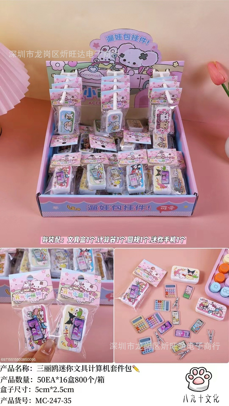 어린이 미니 문구 상자 카드 시뮬레이션 컴퓨터 만화 산리오 소녀 장난감 책가방 미니어처 작은 나라