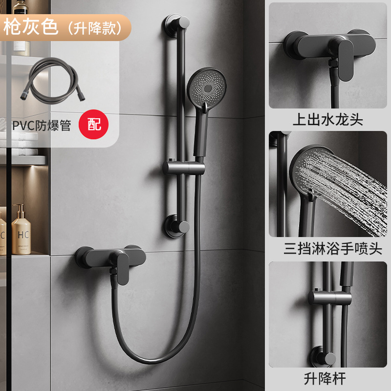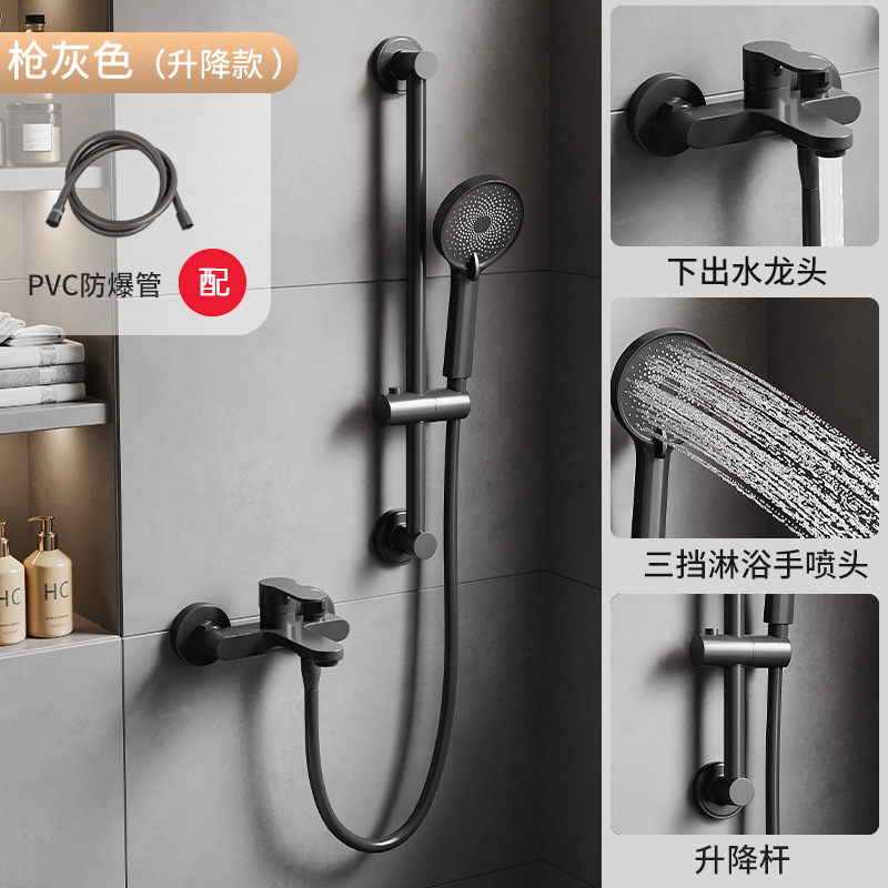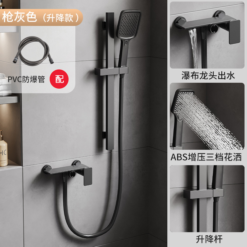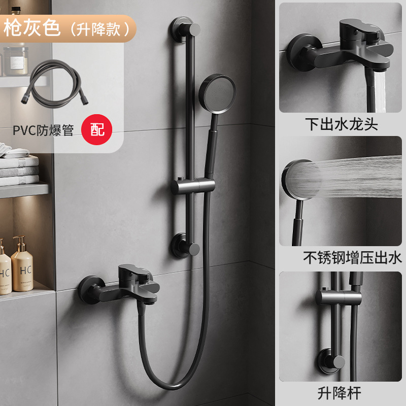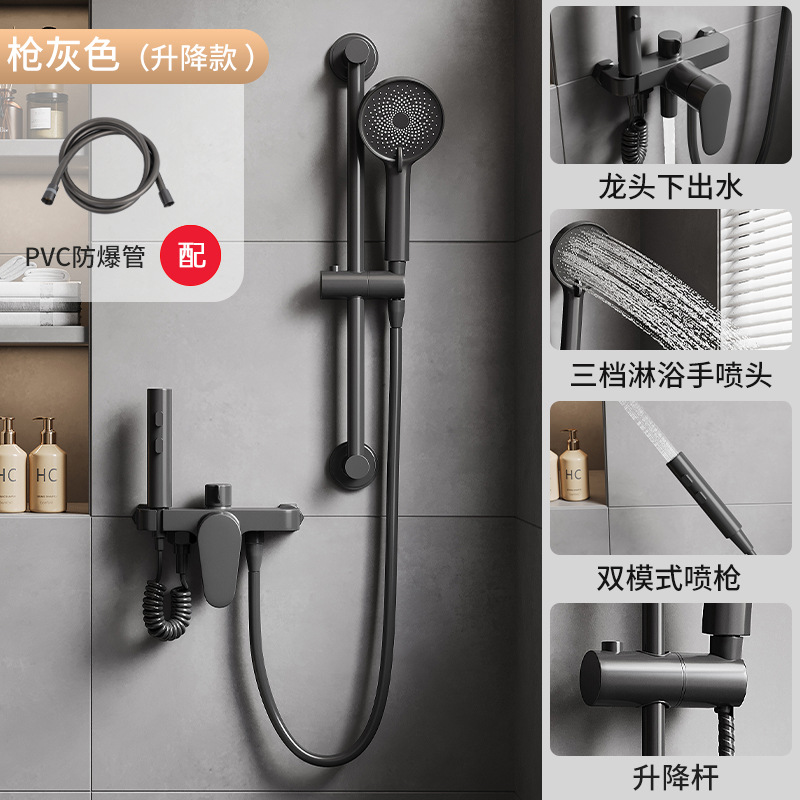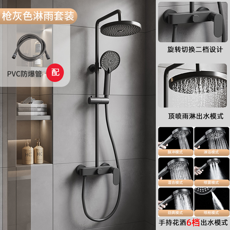 총 회색 샤워 수도꼭지 샤워 헤드 세트 샤워 헤드 욕실 욕조 뜨겁고 차가운 혼합 밸브 간단한 욕조 수도꼭지스토어 가기