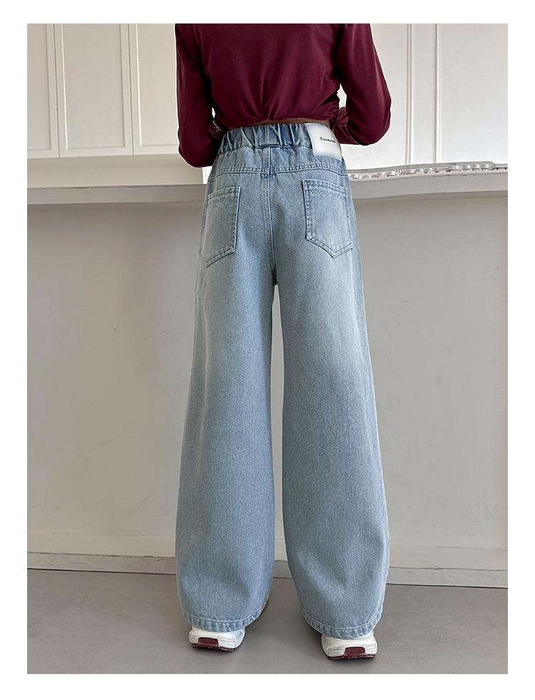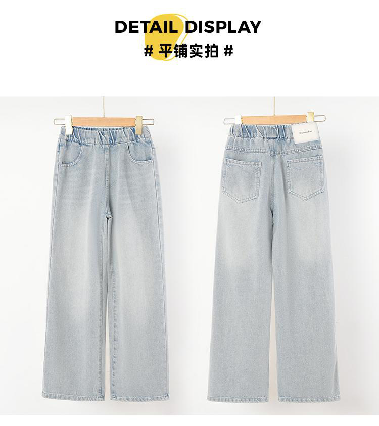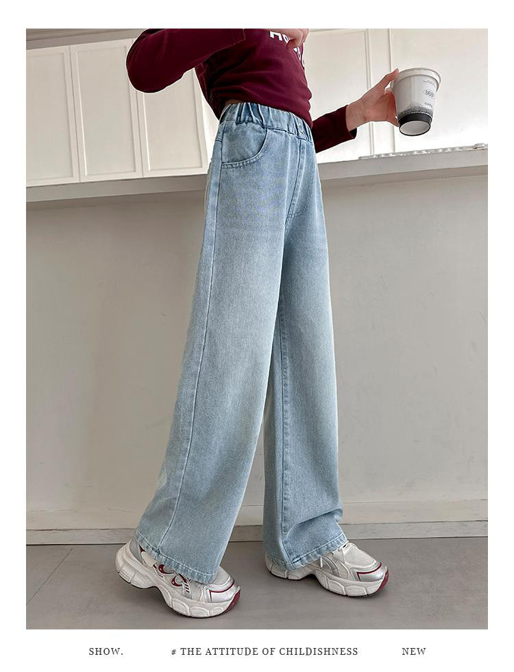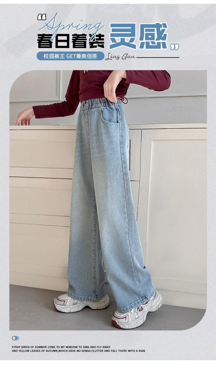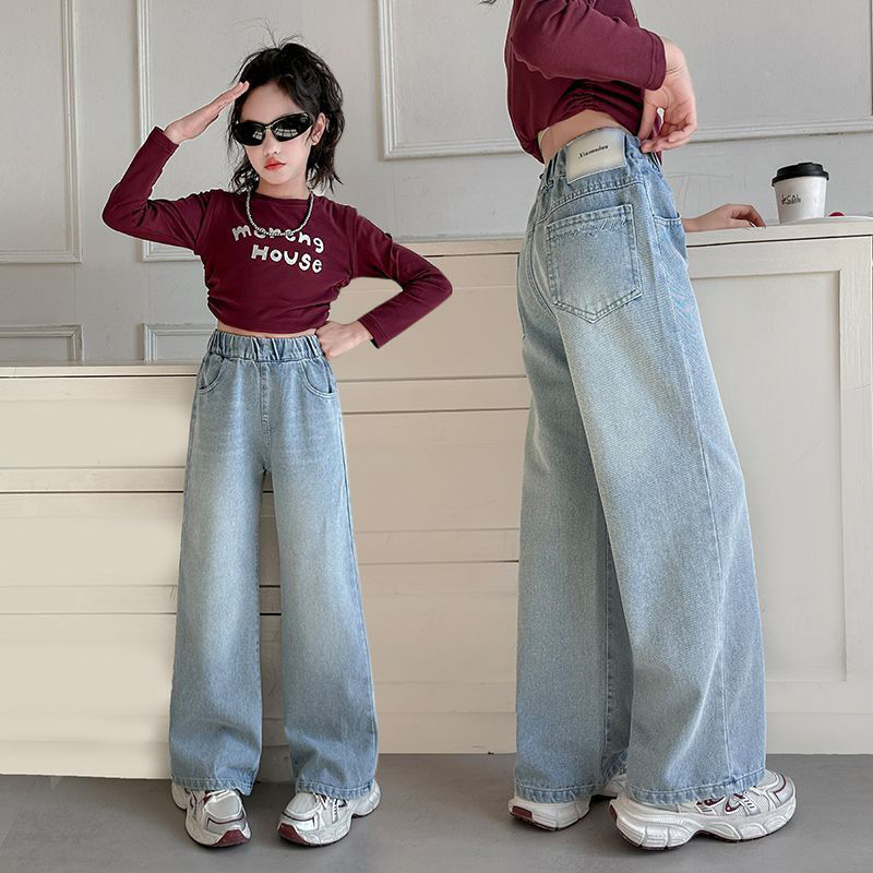 소녀 바지 봄과 가을 넓은 다리 바지 2025 새로운 중대형 어린이 한국 봄 바지 어린이 데님 스트레이트 다리 바지스토어 가기