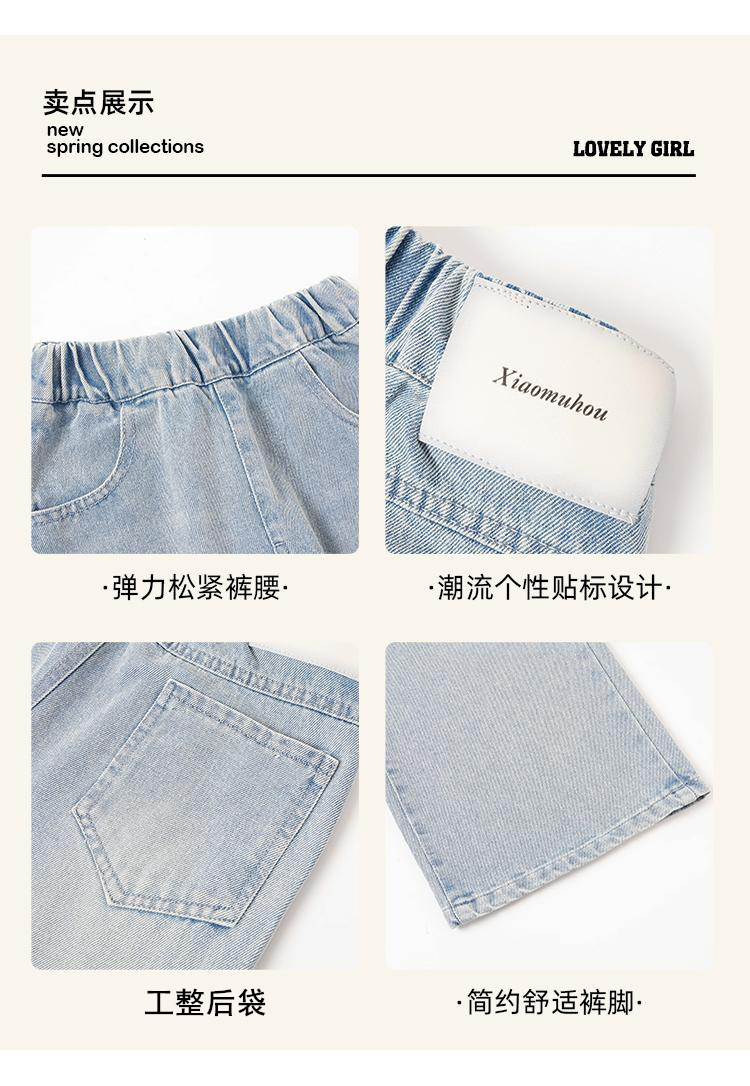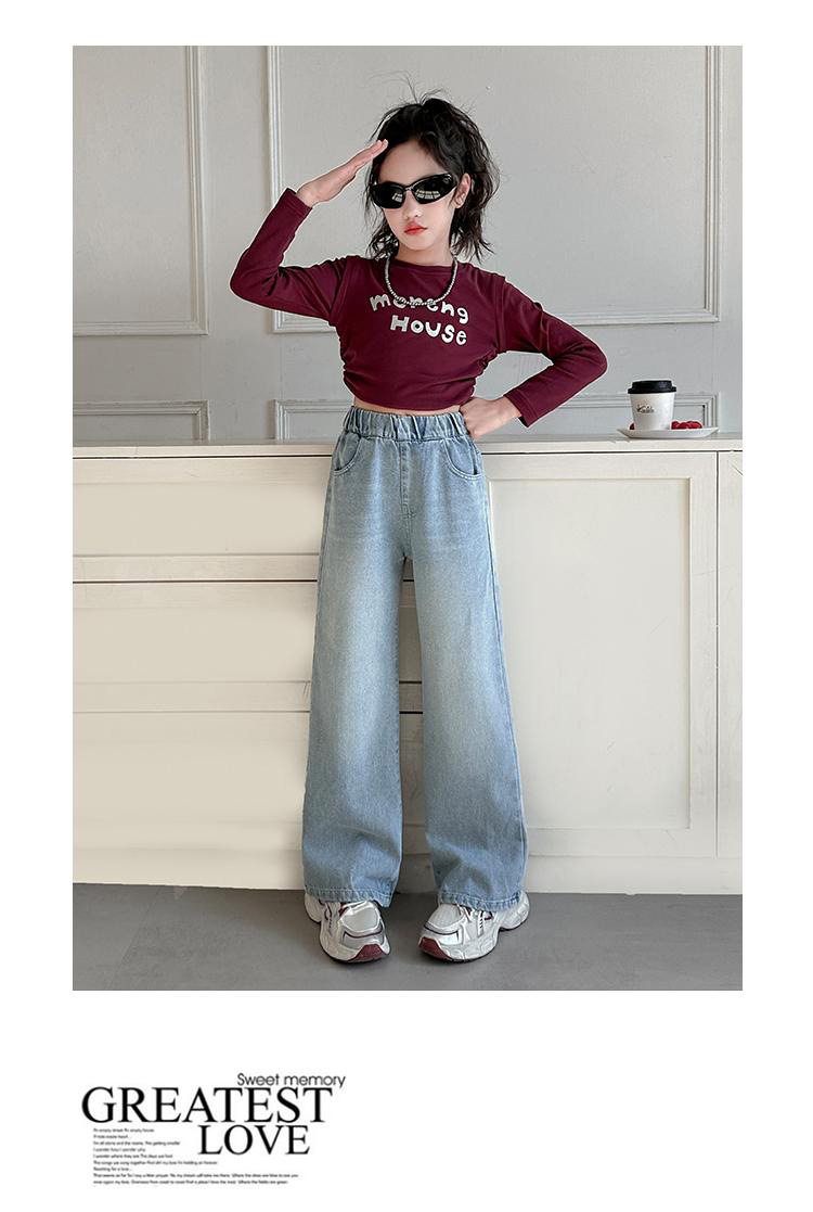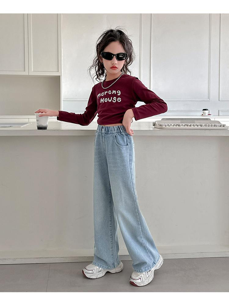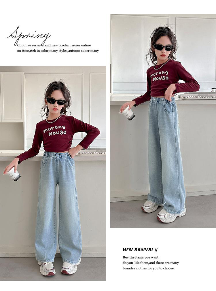 소녀 바지 봄과 가을 넓은 다리 바지 2025 새로운 중대형 어린이 한국 봄 바지 어린이 데님 스트레이트 다리 바지스토어 가기