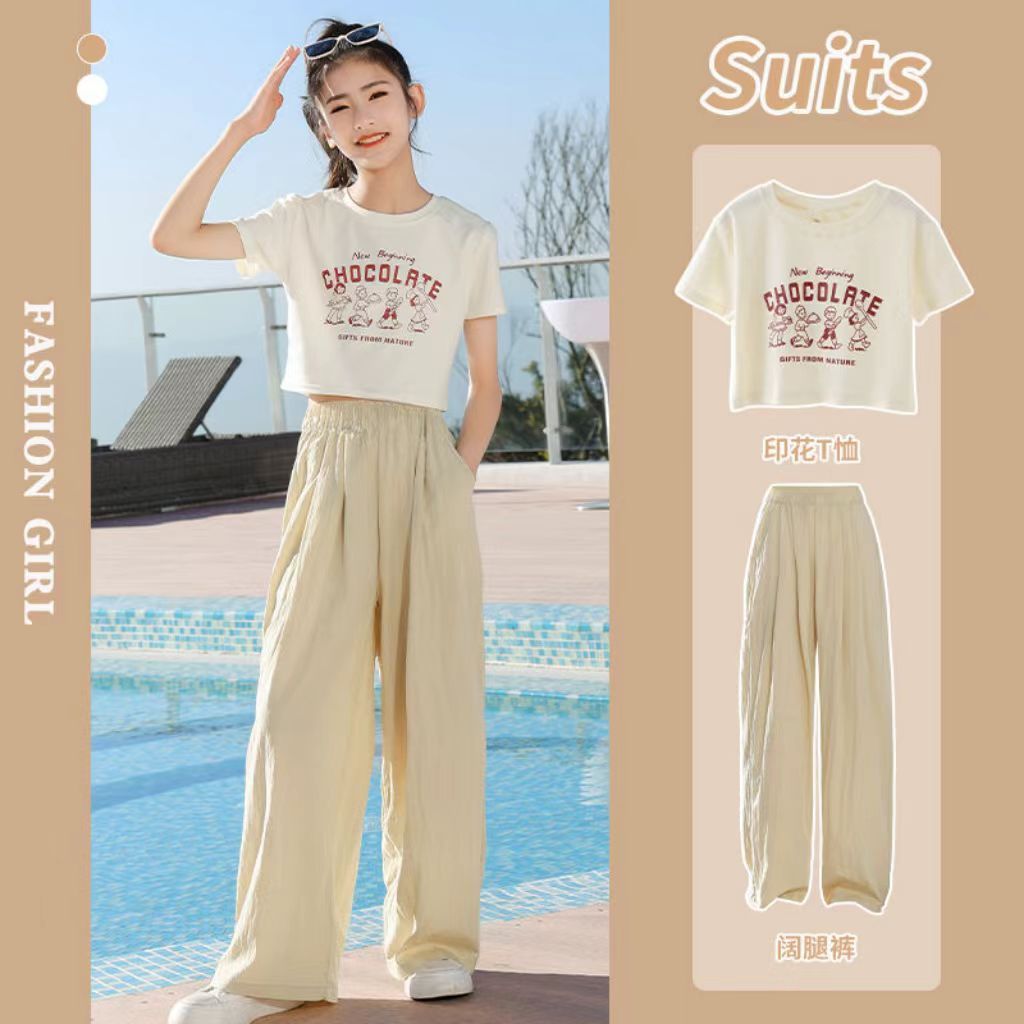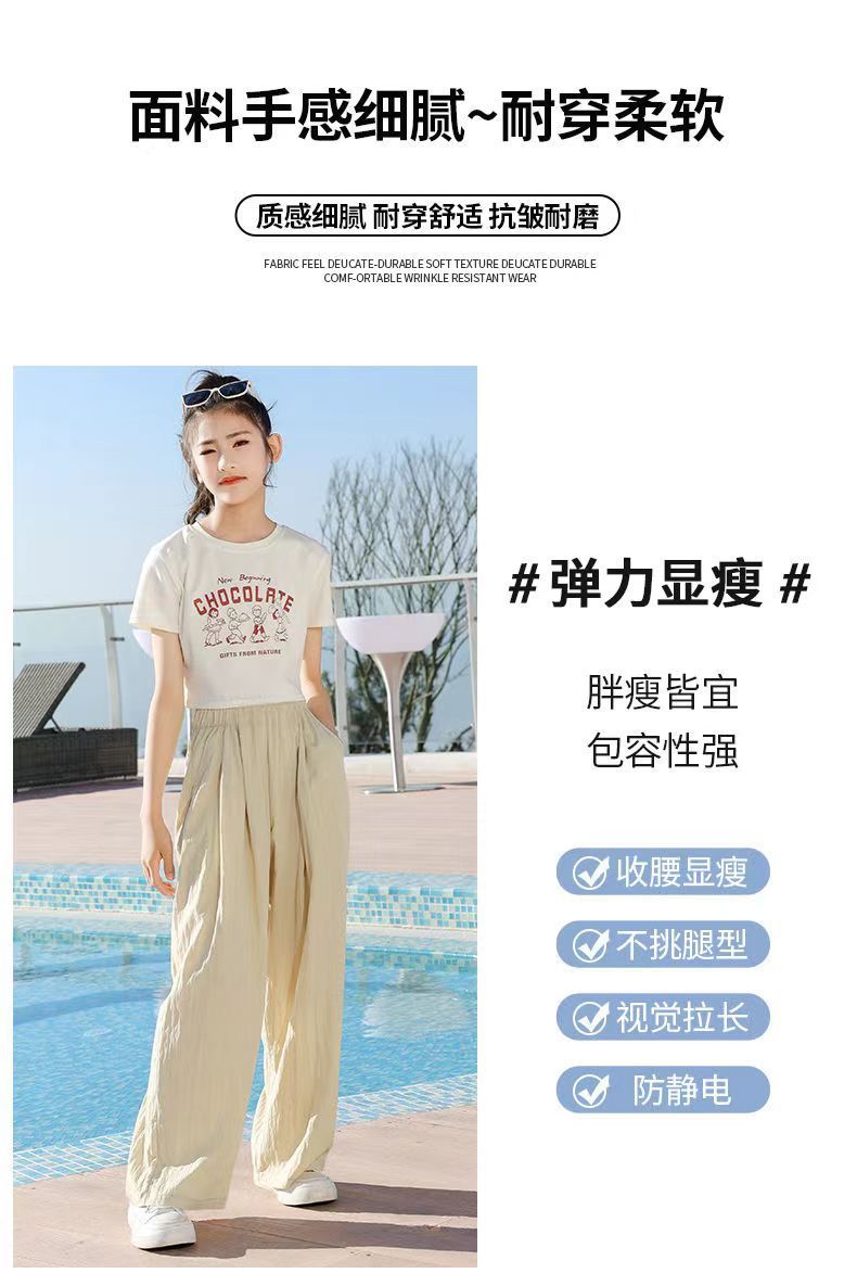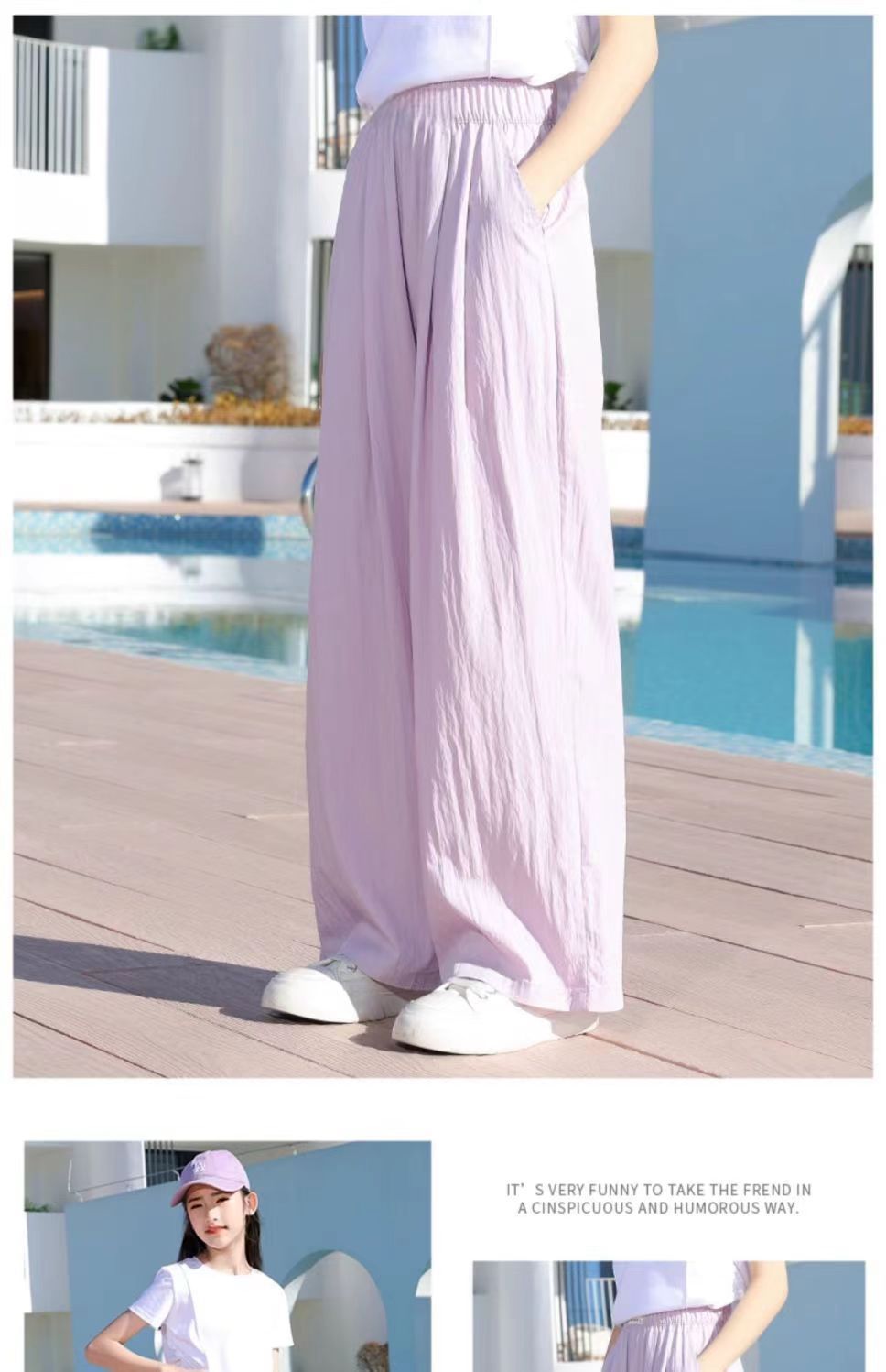 여자 새 2025 세트 어린이 야마모토 바지 여름 중대형 어린이 얇은 얼음 실크 바지 캐주얼 와이드 다리 바지