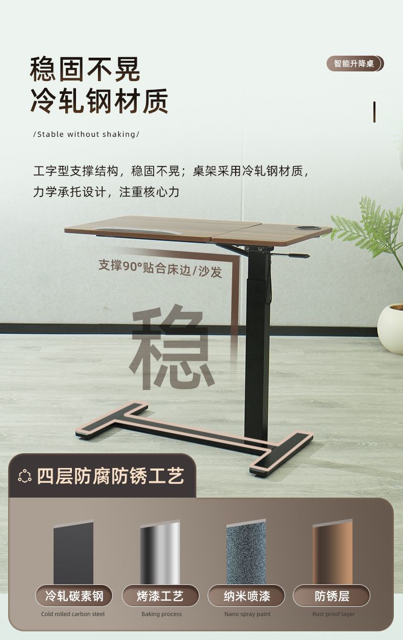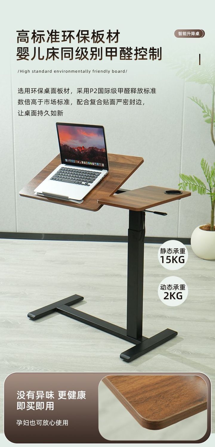 공압 리프팅 침대 옆 테이블 이동식 접이식 단단한 나무 책상 침대 컴퓨터 책상 스탠딩 사무실 작업대