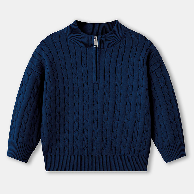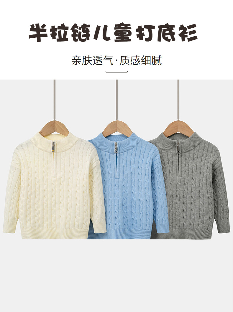 어린이 하프 터틀넥 지퍼 스웨터 2025 새로운 가을, 겨울 소년과 소녀 순수 코튼 니트 따뜻한 내부 레이어링 셔츠스토어 가기