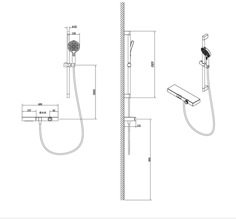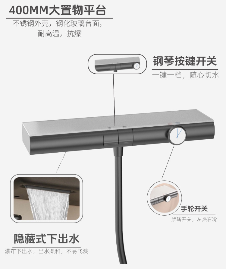 Kaiping Shuikou 간단한 고급 구리 2 기능 벽 붙여 넣기 디지털 디스플레이 피아노 저장 대형 플랫폼 샤워 세트 호텔 홈스테이