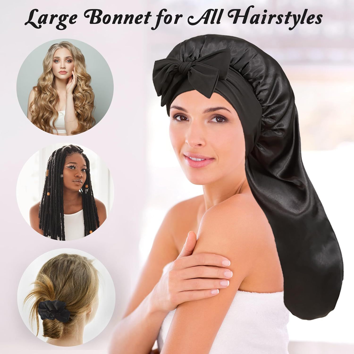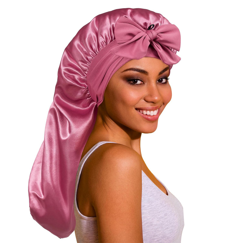 Amazon 국경 간 베스트셀러 긴 탄성 헤어 밴드 모자 챙이 넓은 새틴 잠옷 긴 머리 헤어 케어 모자