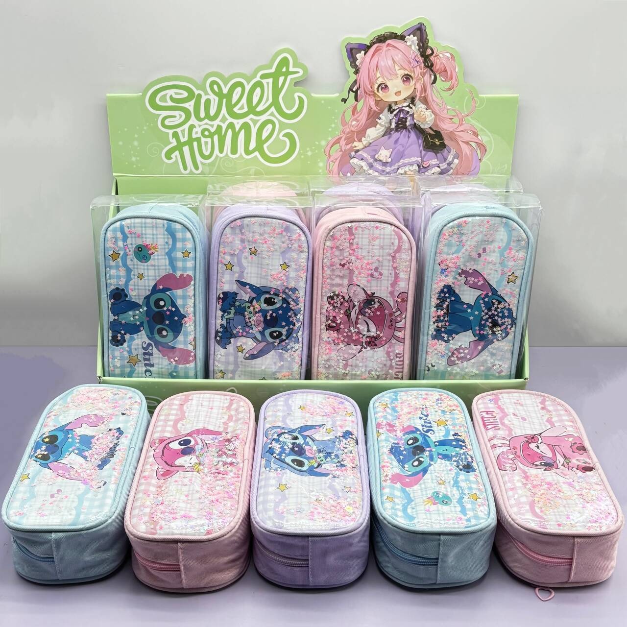 귀여운 만화 더블 레이어 지퍼 연필 가방 초등학생 재미 대용량 연필 가방 소녀의 심장 문구 가방 상 배치스토어 가기