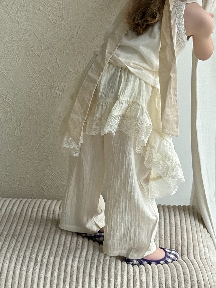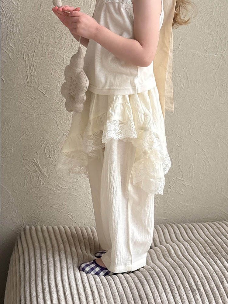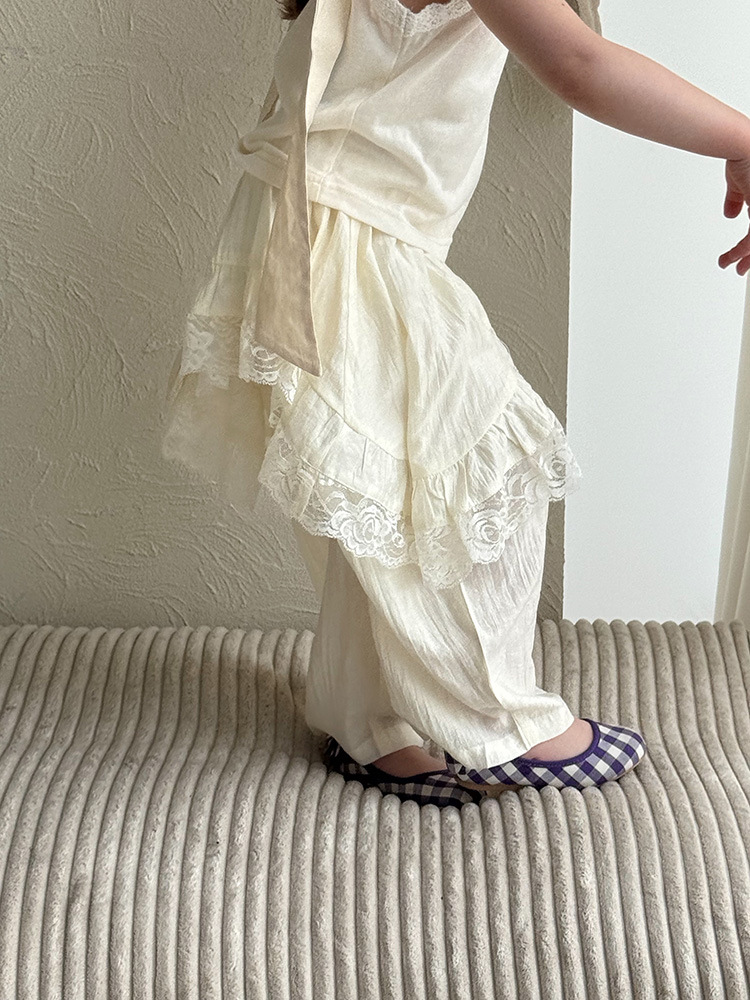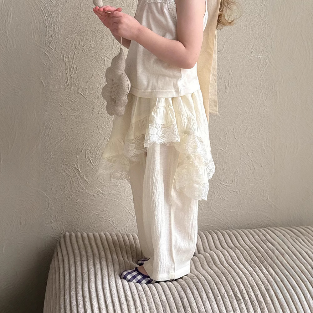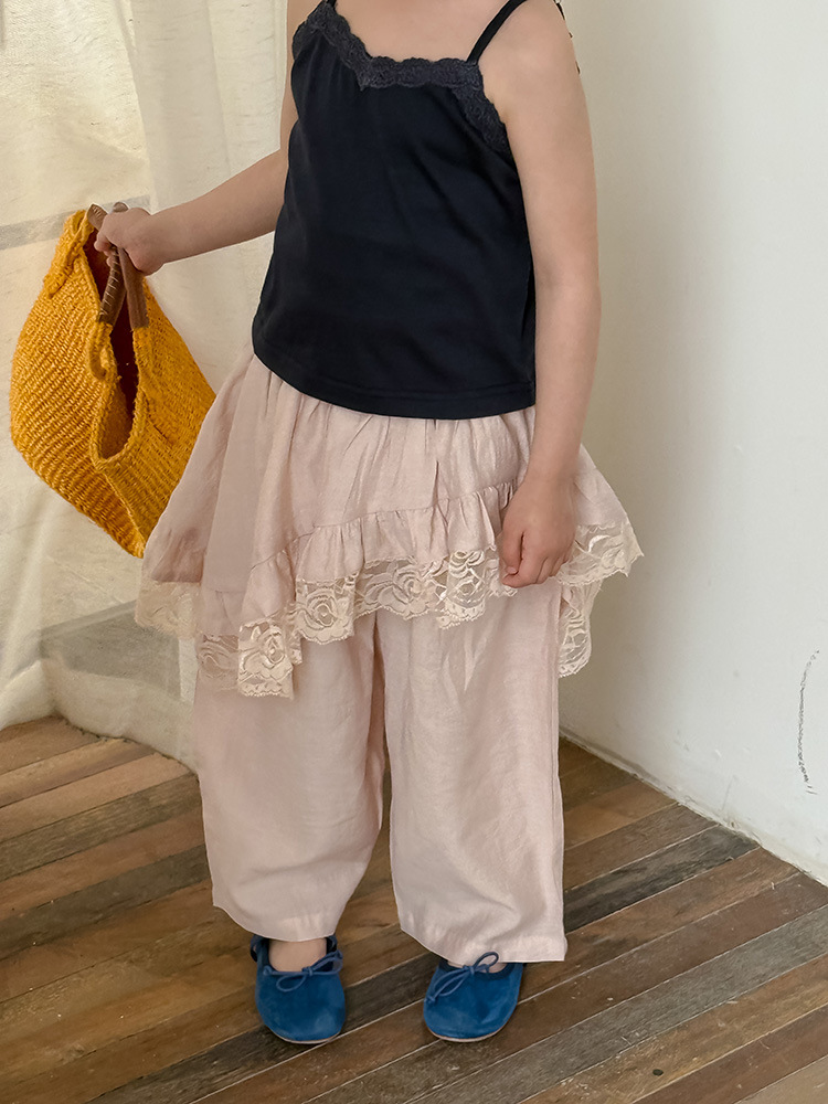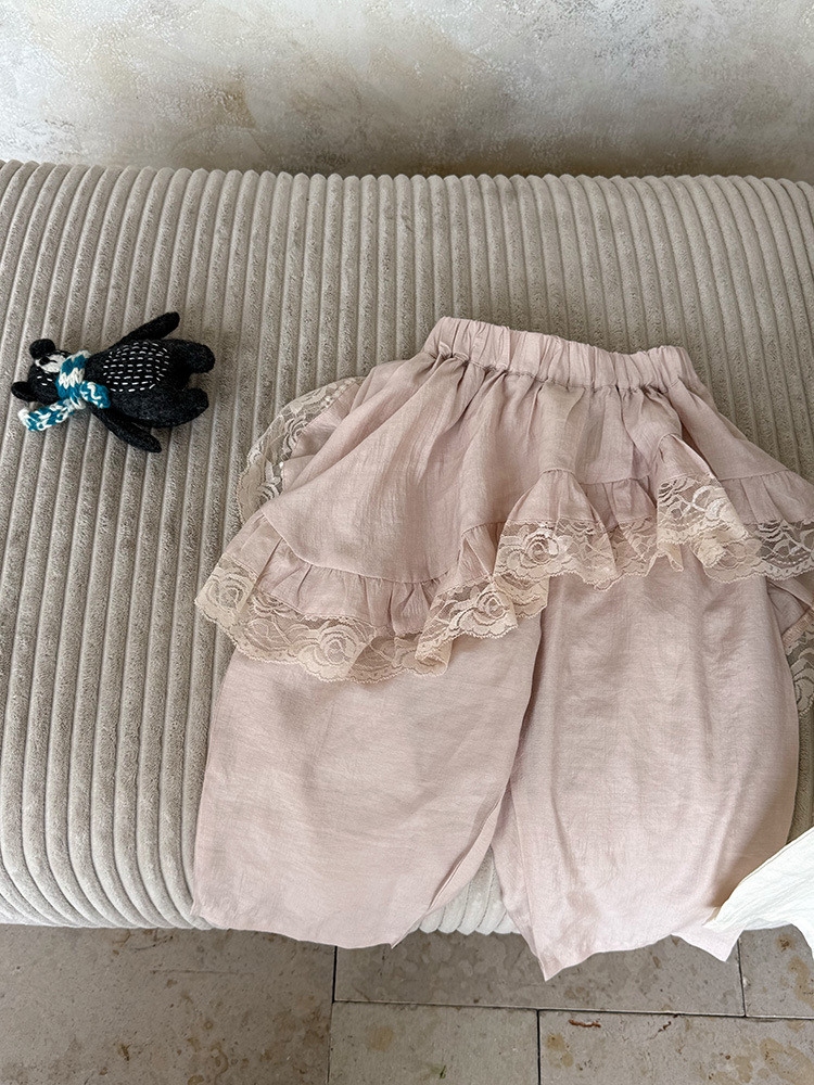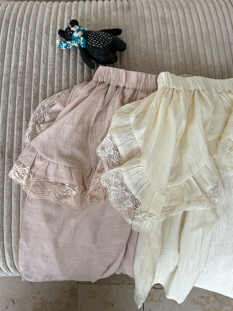 어린이 레이스 컬롯 2025 여름 새 한국 스타일 소녀의 절묘한 레이스 트림 불규칙한 컬로 트 바지스토어 가기