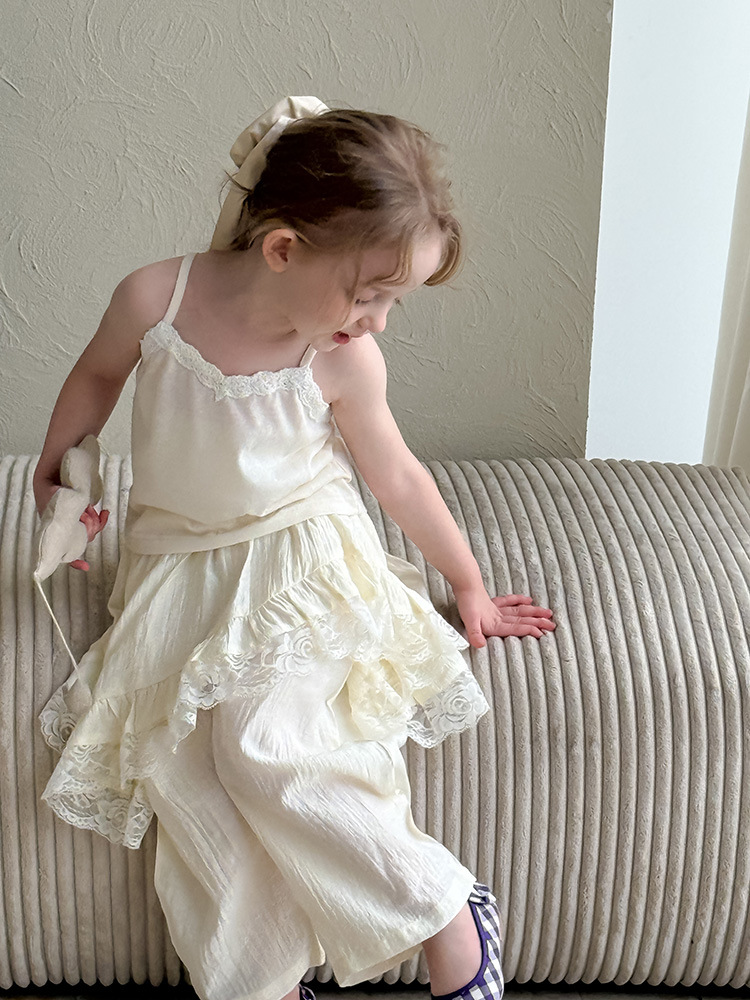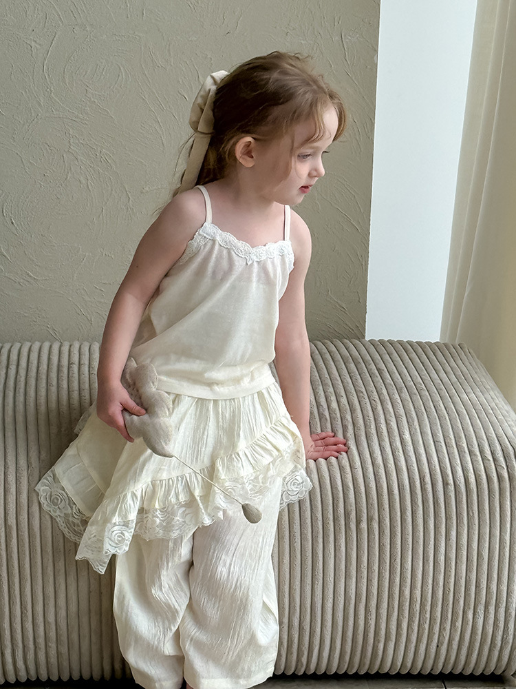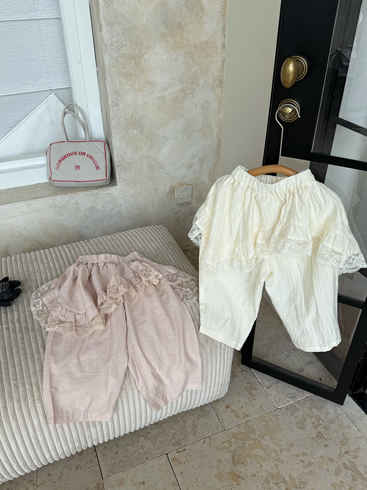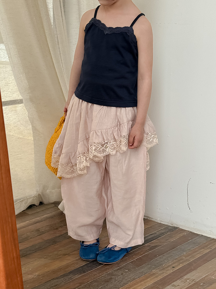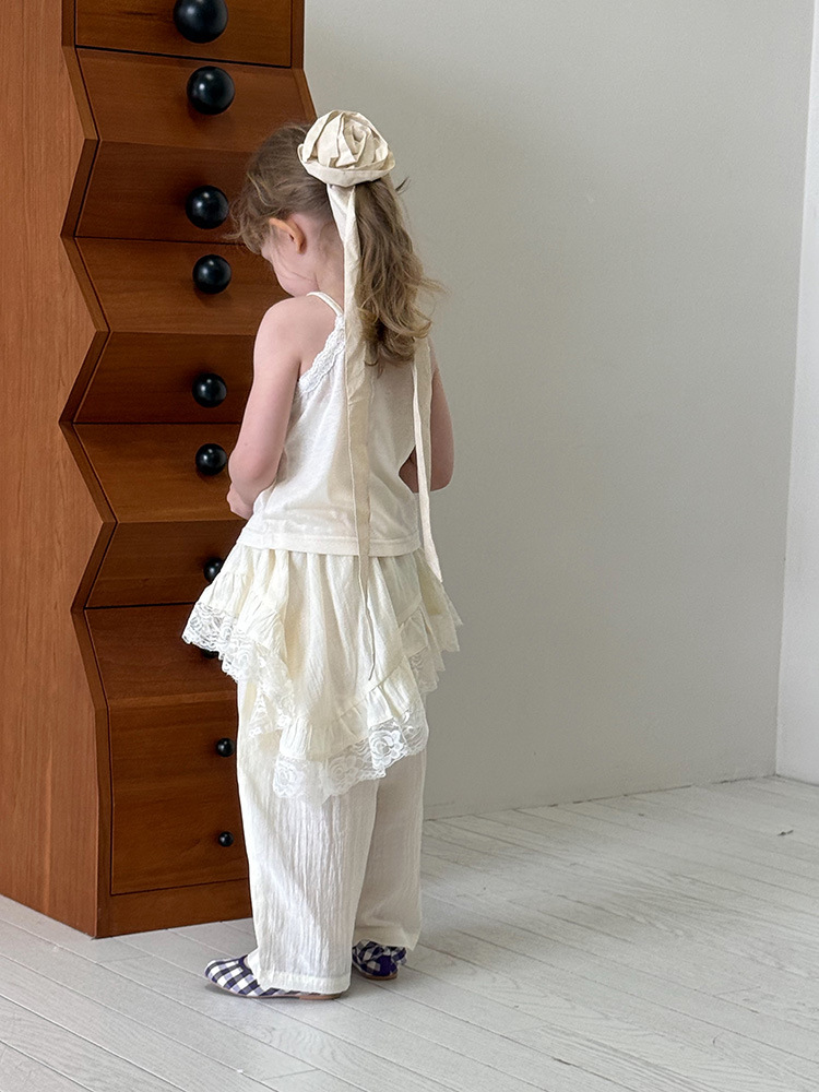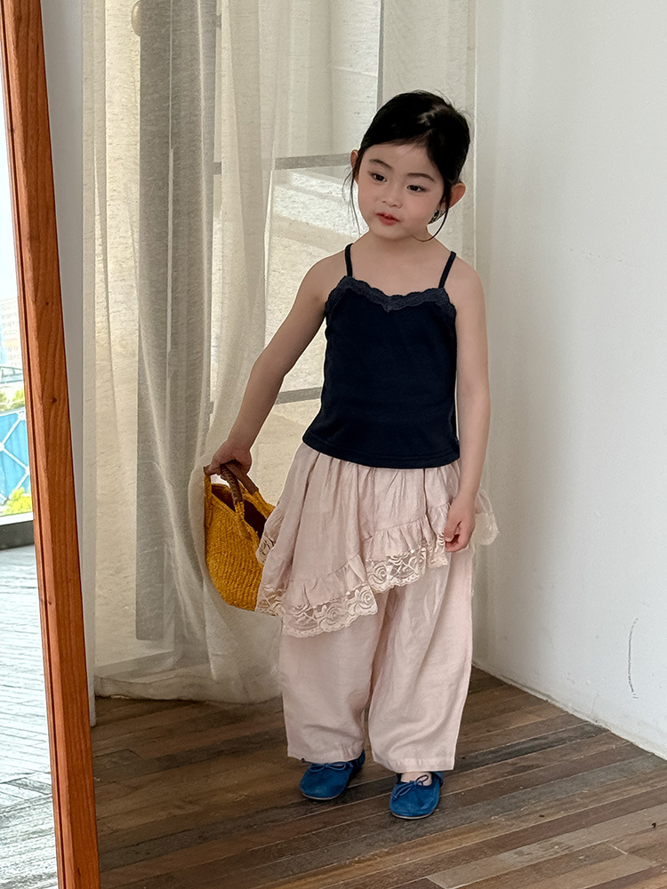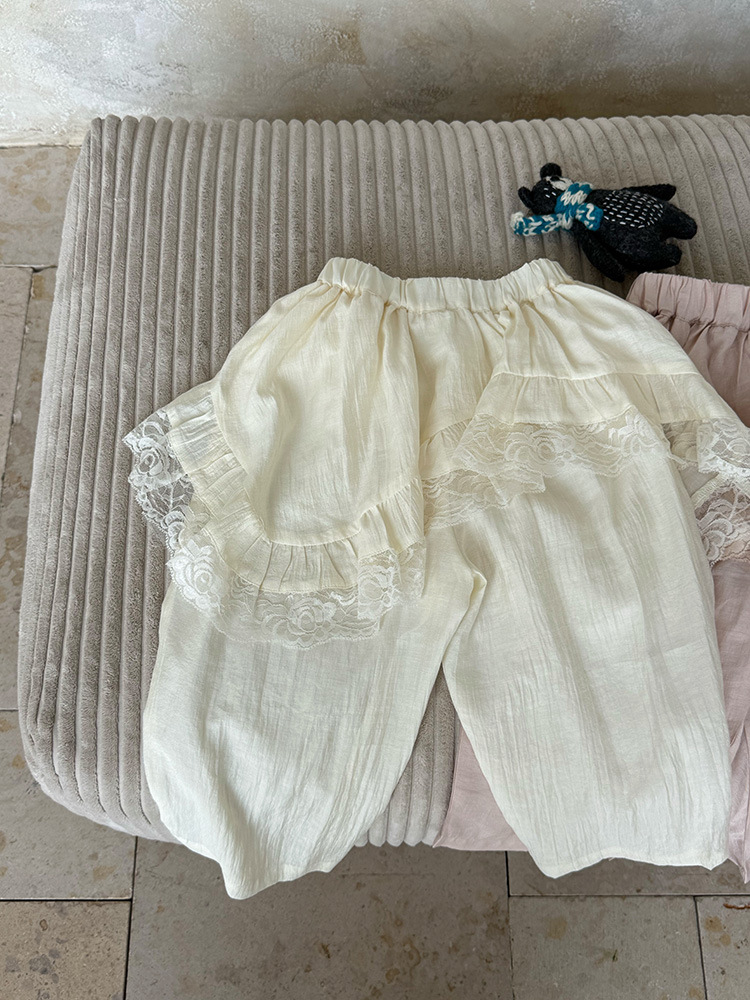 어린이 레이스 컬롯 2025 여름 새 한국 스타일 소녀의 절묘한 레이스 트림 불규칙한 컬로 트 바지스토어 가기
