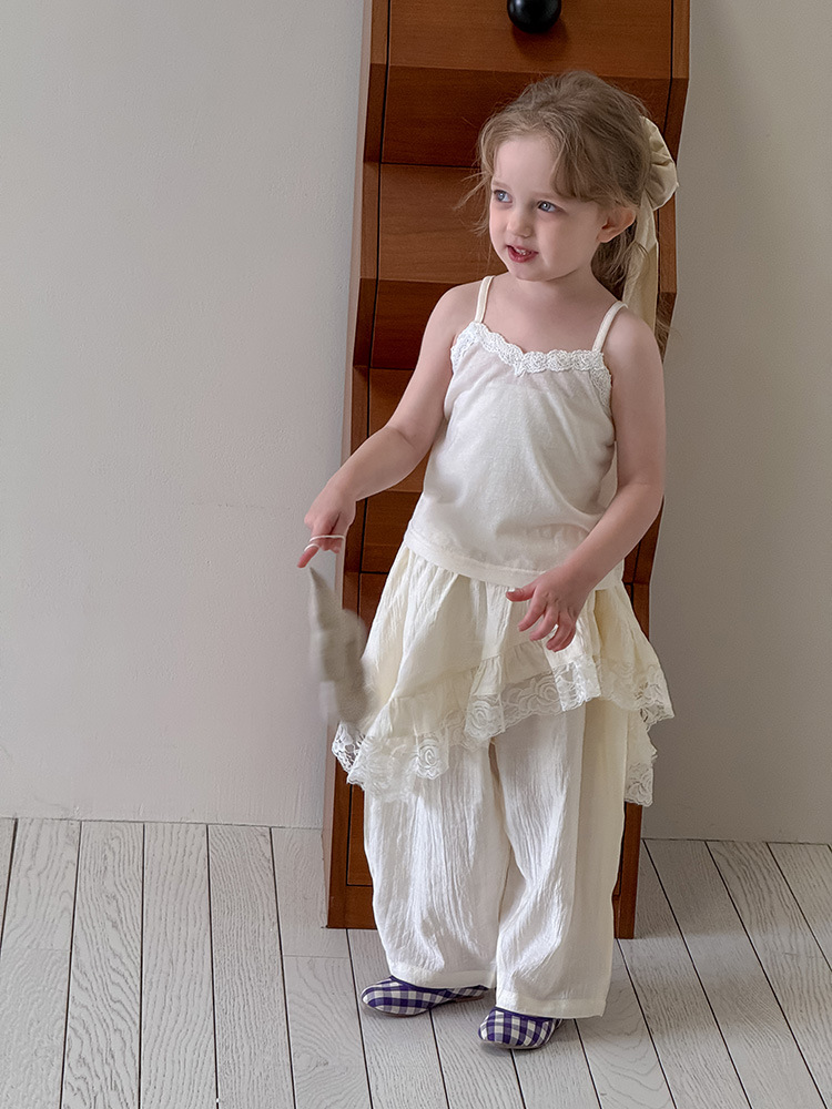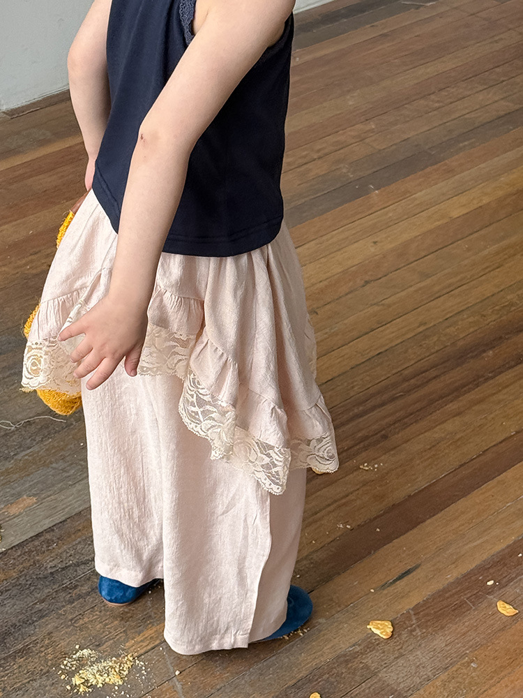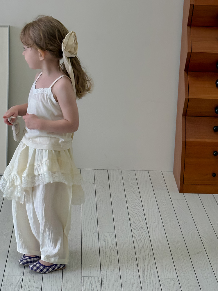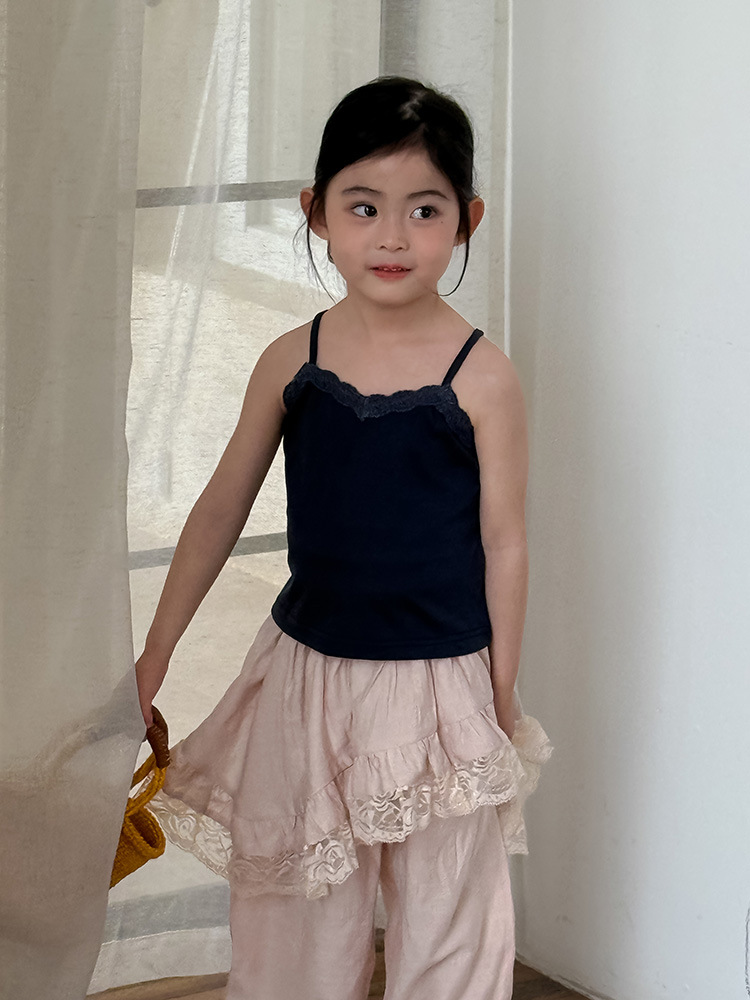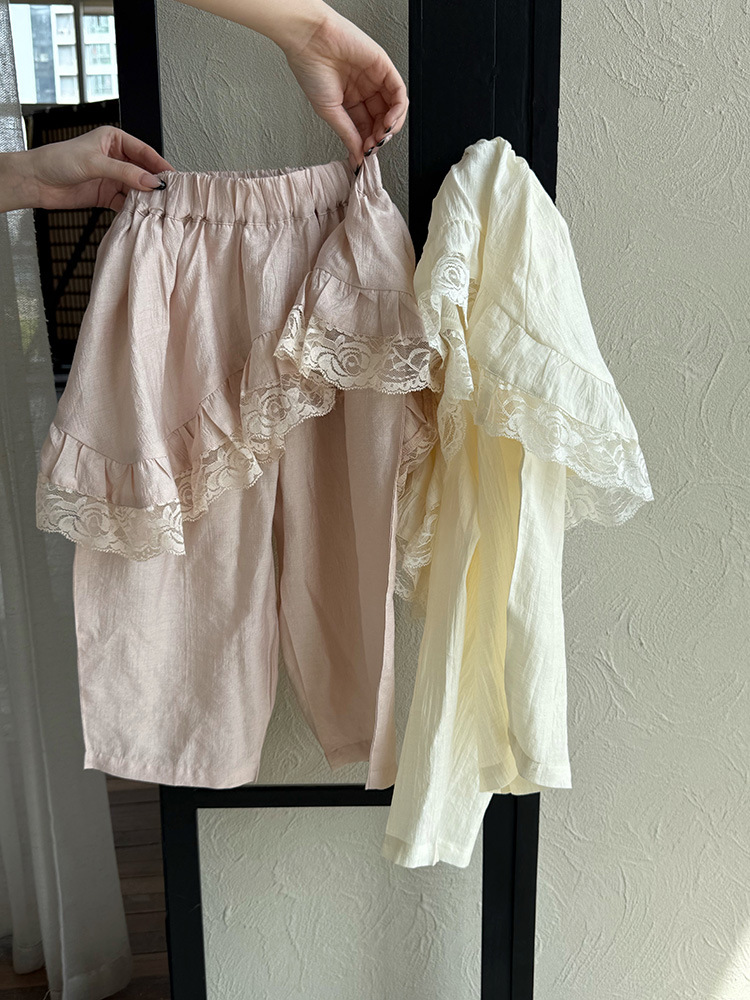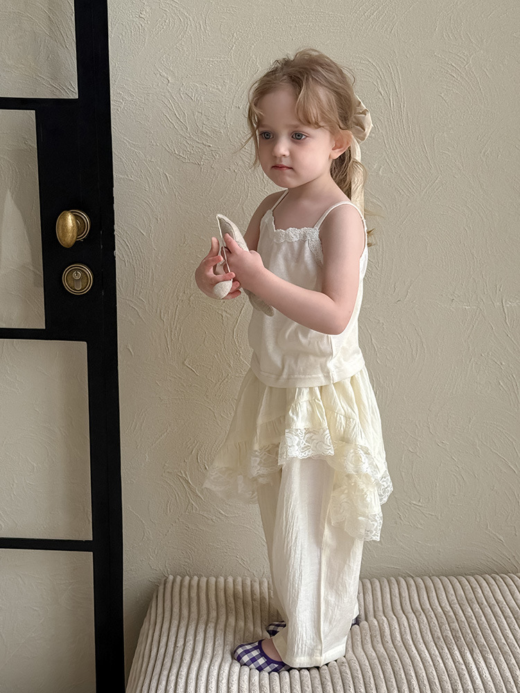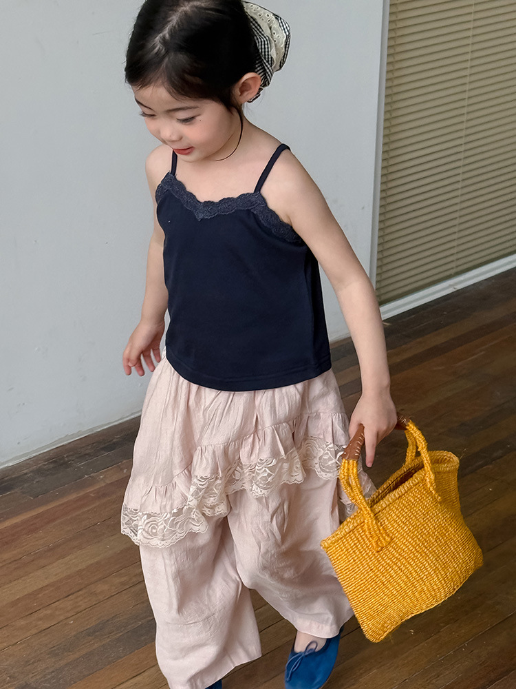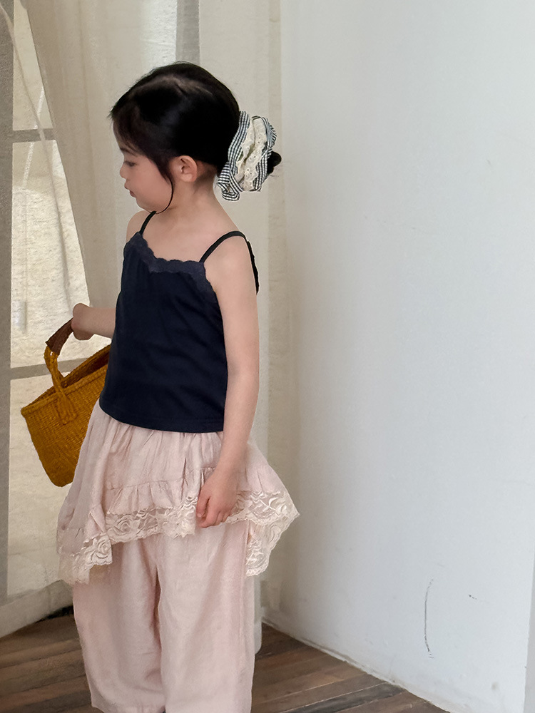 어린이 레이스 컬롯 2025 여름 새 한국 스타일 소녀의 절묘한 레이스 트림 불규칙한 컬로 트 바지스토어 가기