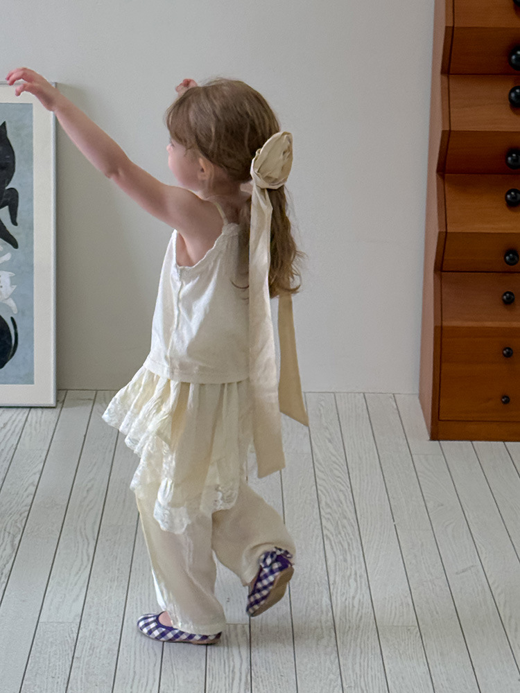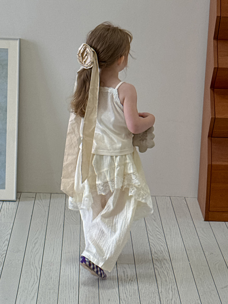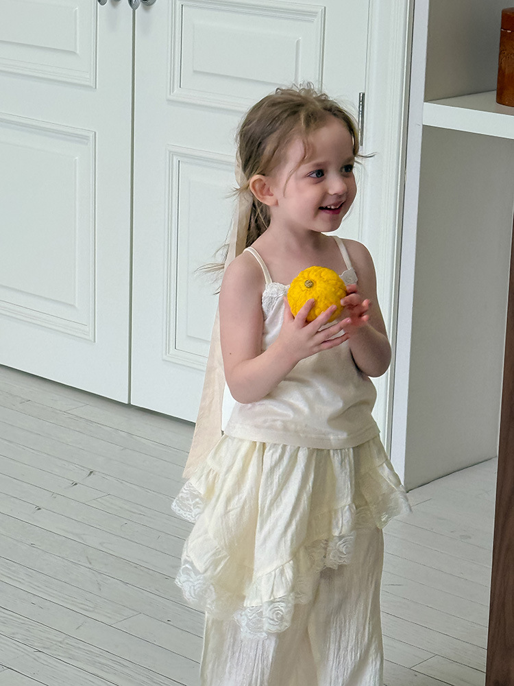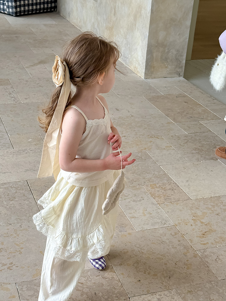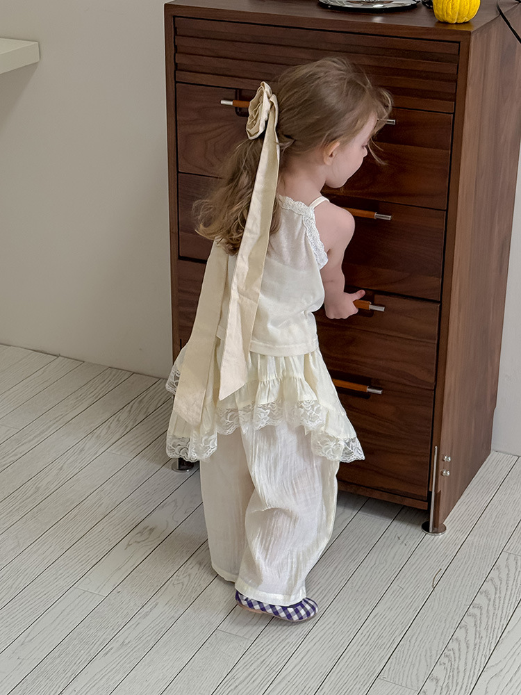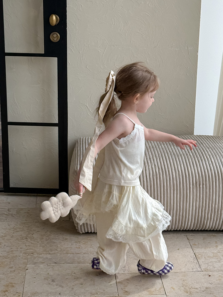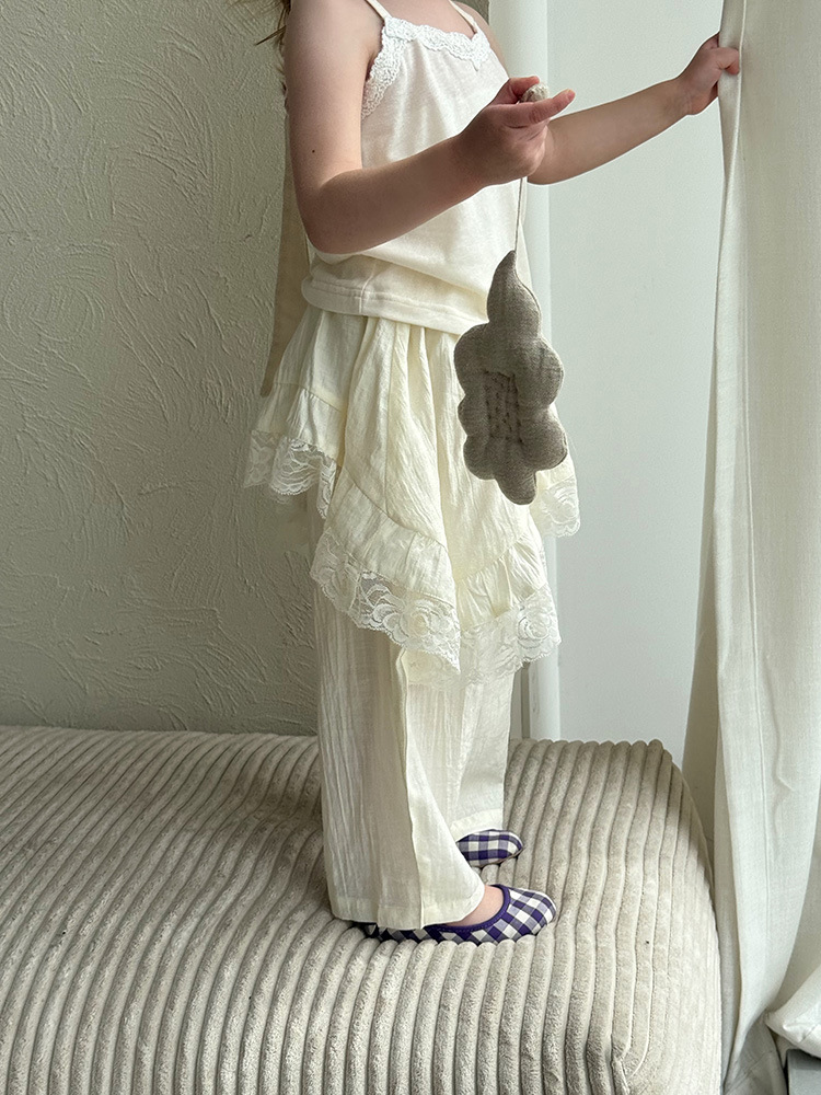 어린이 레이스 컬롯 2025 여름 새 한국 스타일 소녀의 절묘한 레이스 트림 불규칙한 컬로 트 바지스토어 가기