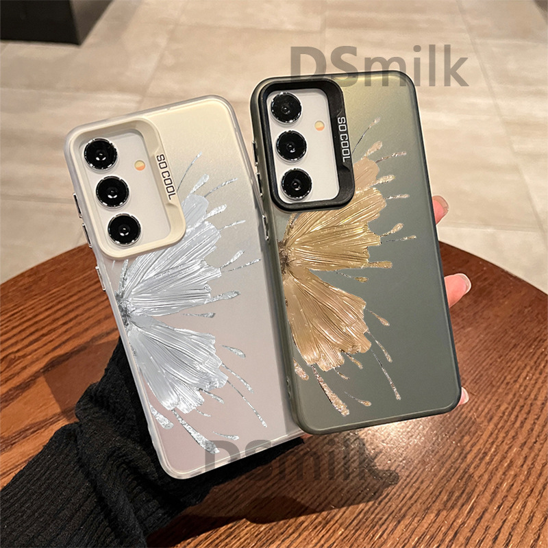 금색과 은색 나비는 삼성 A56 컬러 실버 쉘 A54 A55/A36 A35 휴대 전화 케이스 A34 A26/A16에 적합합니다.스토어 가기