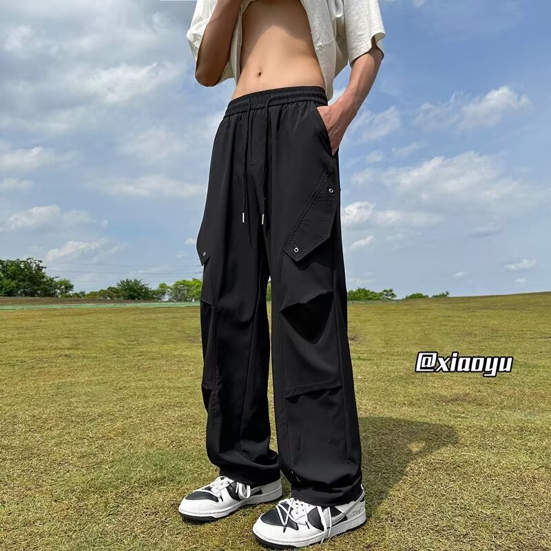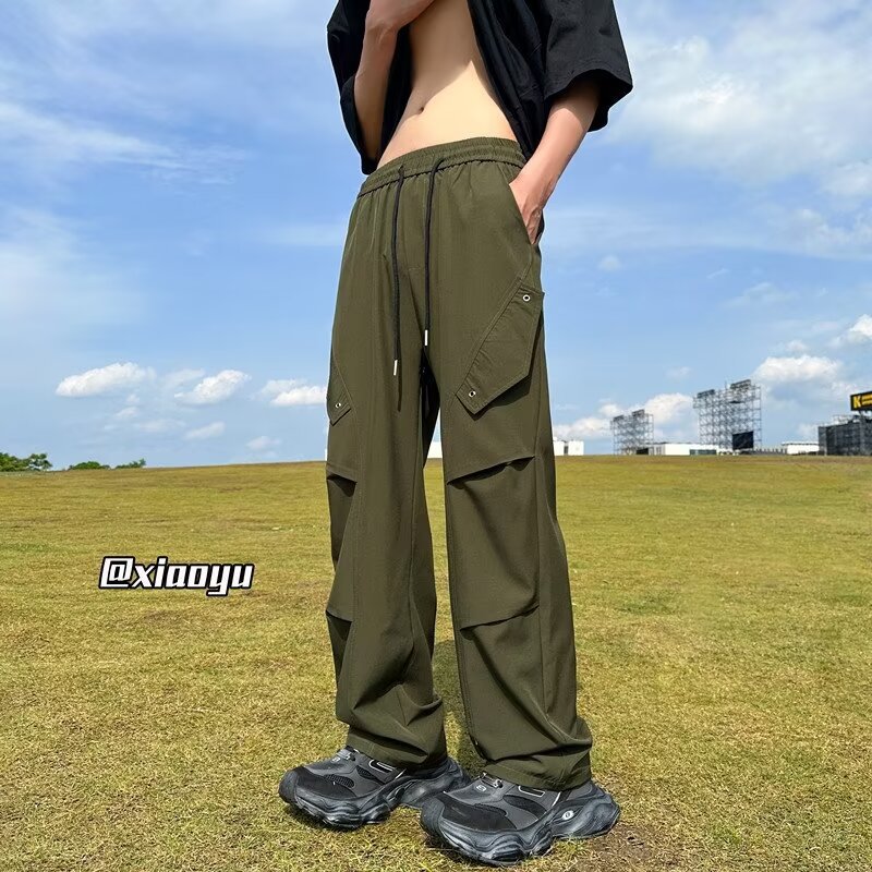 2025 년 봄과 가을 미국의 얇은 작업 바지 느슨한 넓은 다리 낙하산 병 루스 경량 빠른 건조 바지스토어 가기