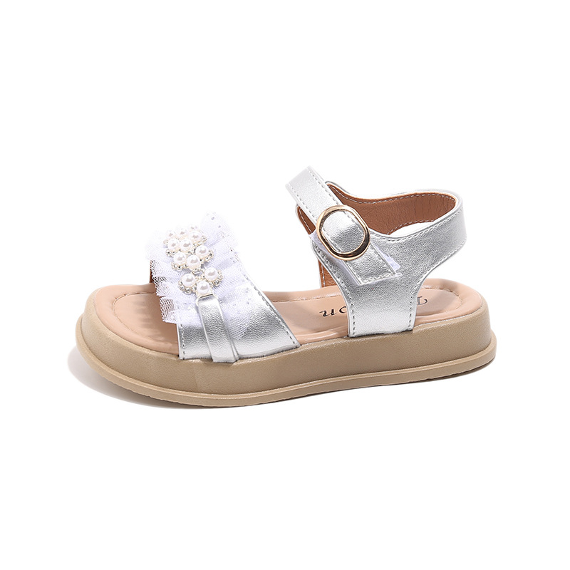 어린이 샌들 여성 여름 패션 진주 라인석 소녀 공주 부드러운 바닥 신발 어린이 아기 귀여운 비치 신발