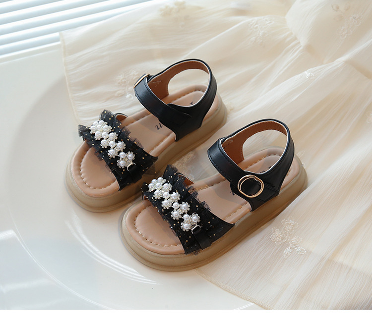 어린이 샌들 여성 여름 패션 진주 라인석 소녀 공주 부드러운 바닥 신발 어린이 아기 귀여운 비치 신발스토어 가기