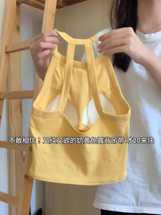 Pure, Backless Halter Camisole 여성용 여름 슬림 핏 짧은 내부 민소매 탑, 가슴 패드 착용스토어 가기