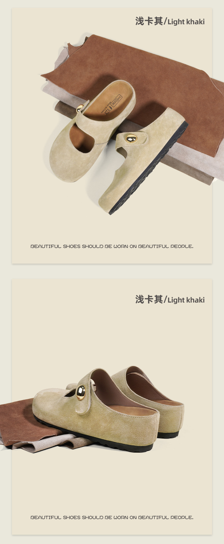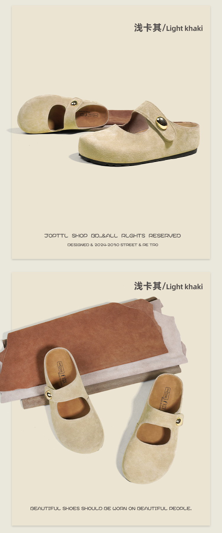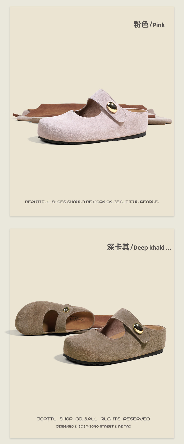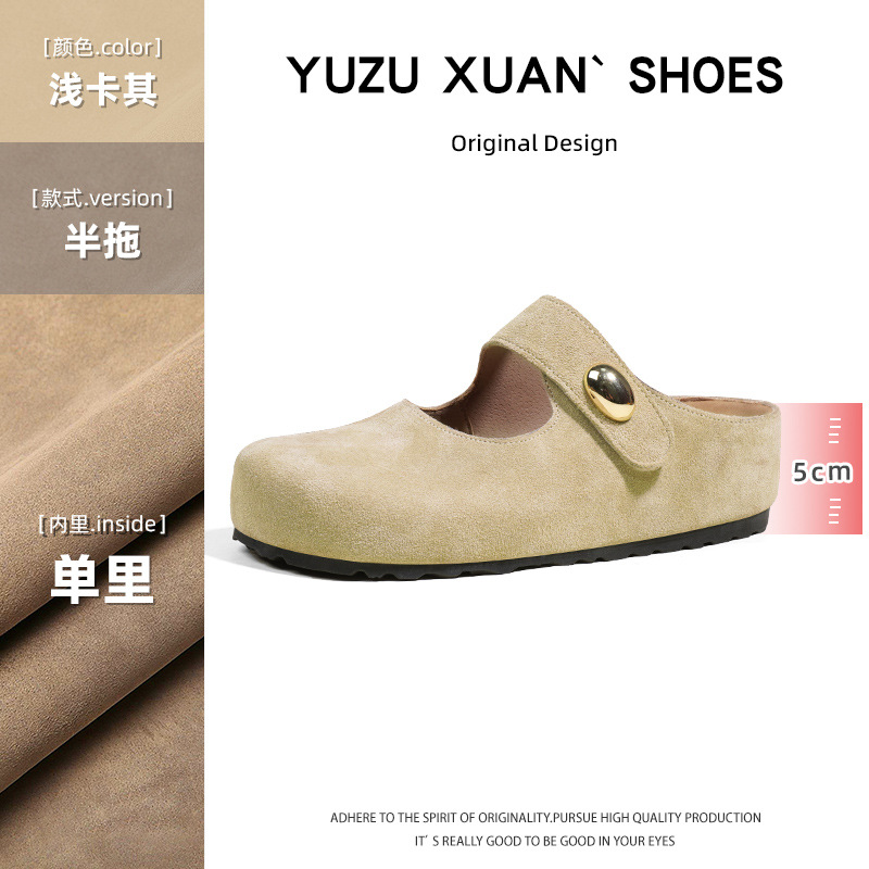 정품 가죽 플랫폼 밑창 높이 증가 버켄 신발 빈티지 바오터우 반토우 여성용 2025 가을 새 편안한 게으른 신발스토어 가기