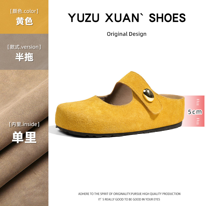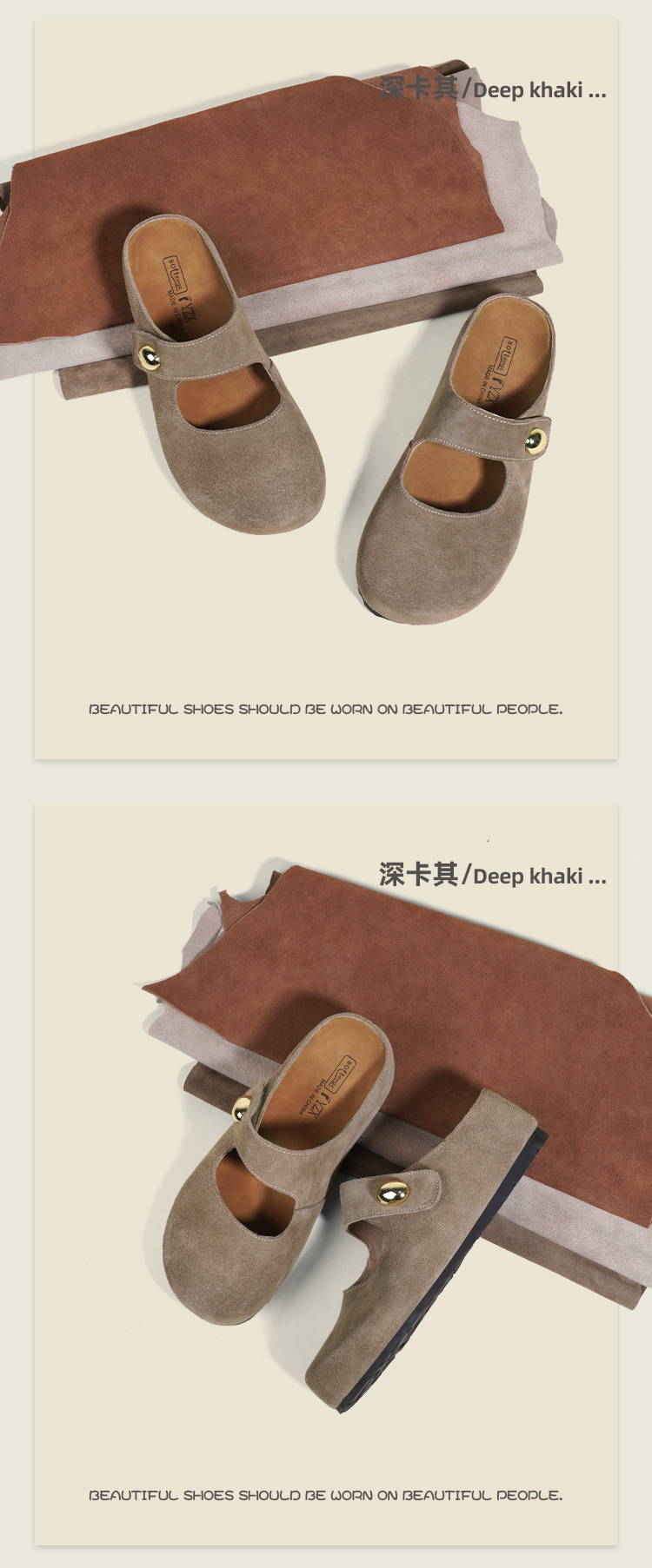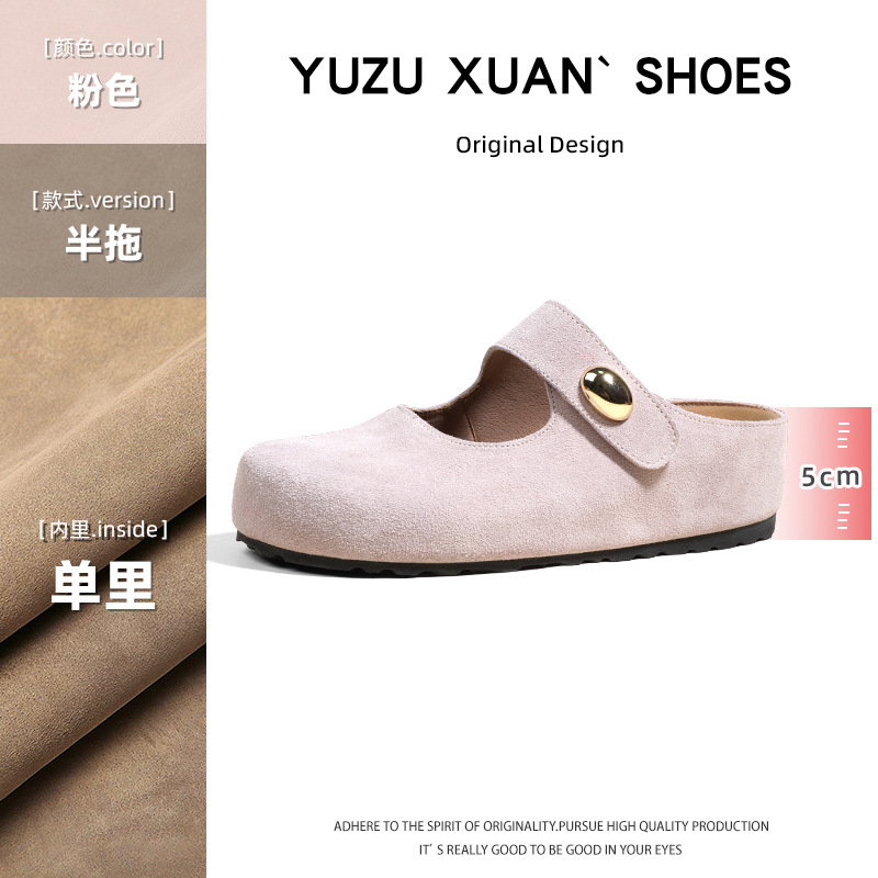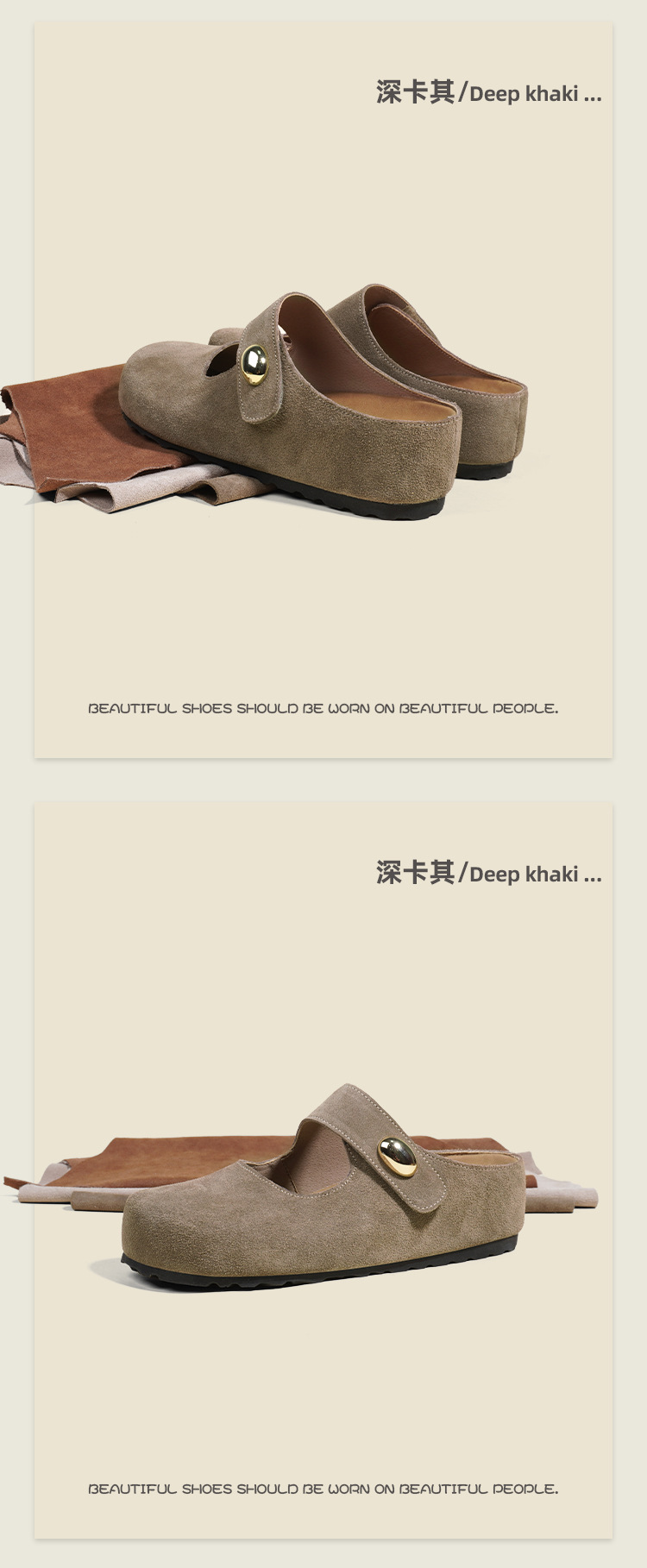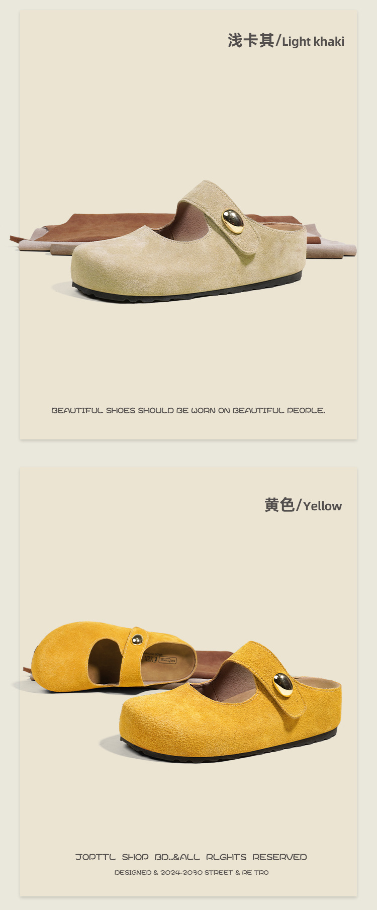 정품 가죽 플랫폼 밑창 높이 증가 버켄 신발 빈티지 바오터우 반토우 여성용 2025 가을 새 편안한 게으른 신발스토어 가기