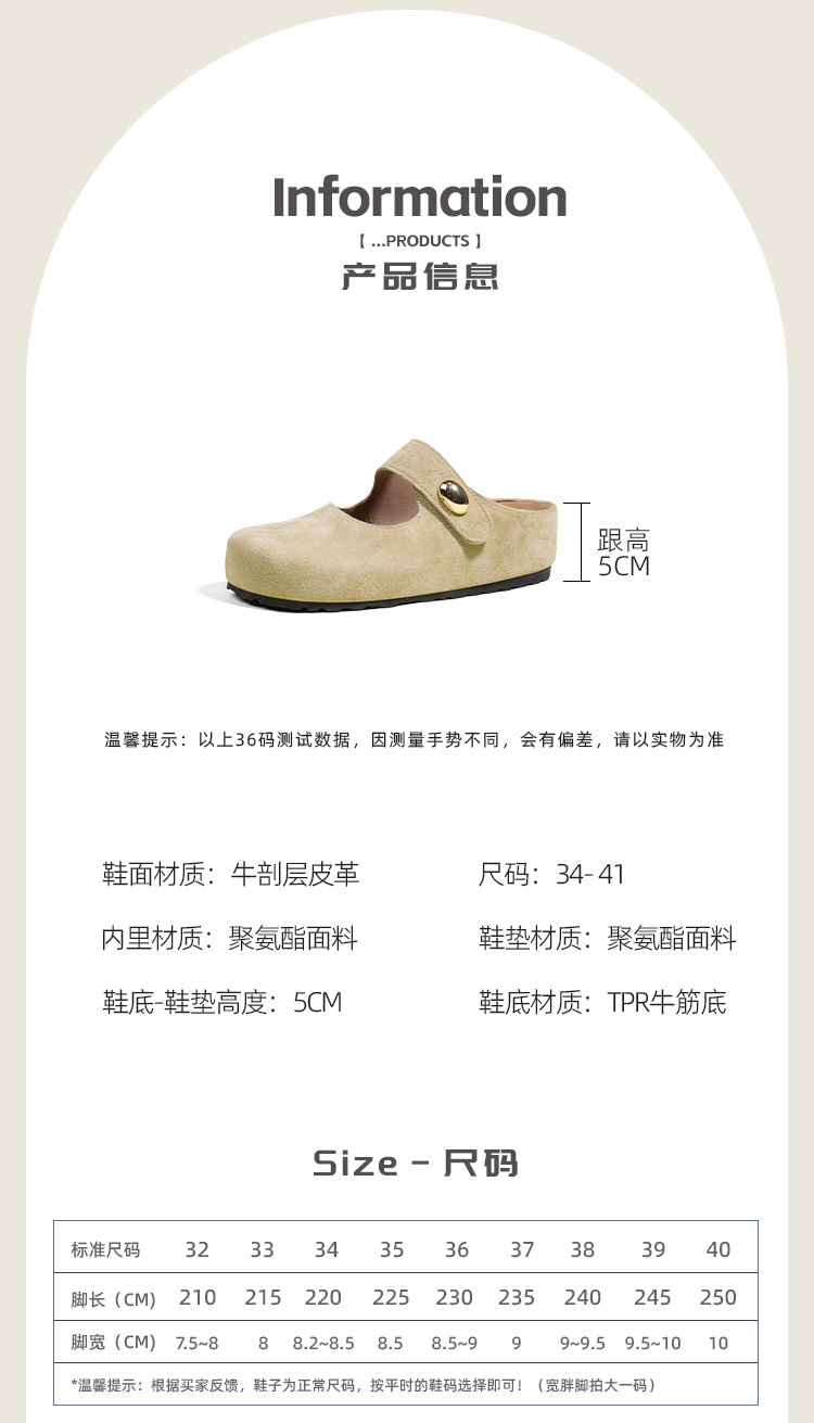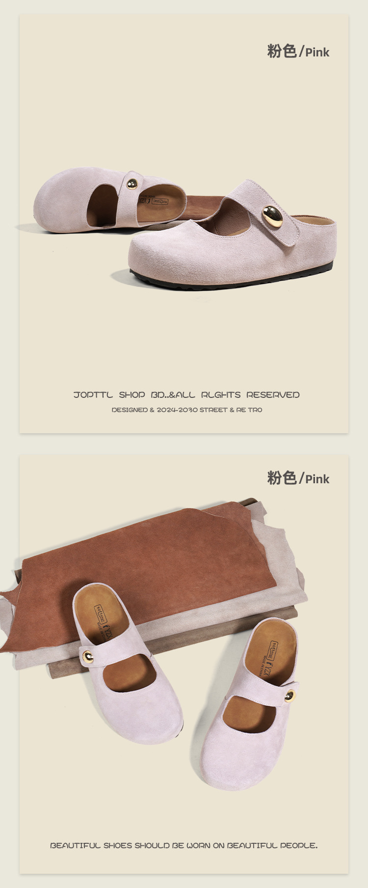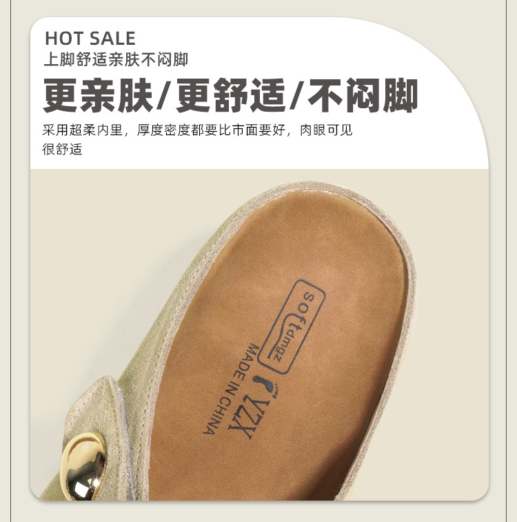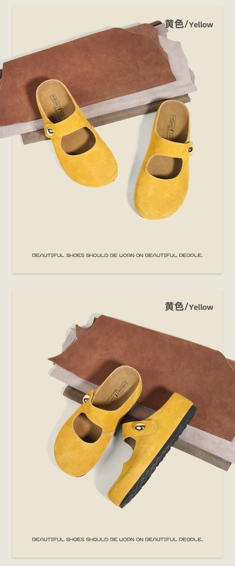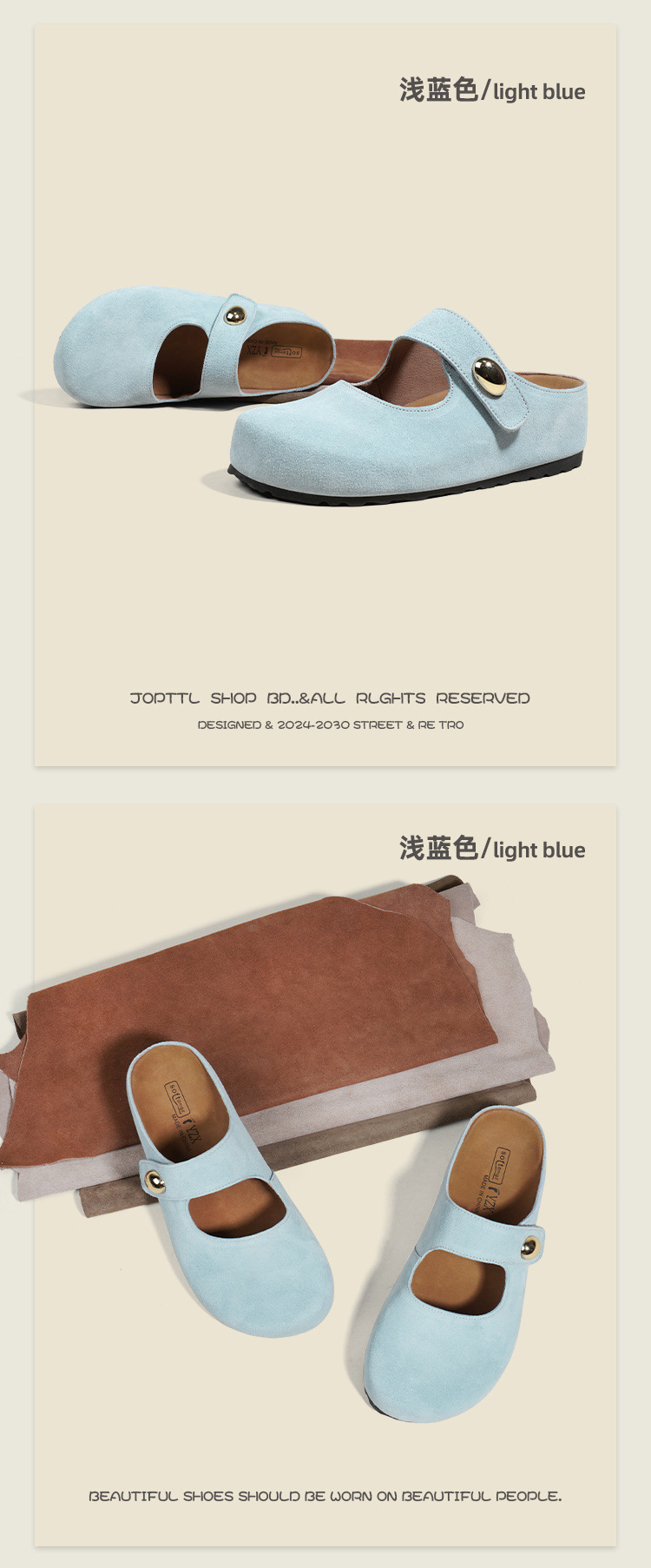정품 가죽 플랫폼 밑창 높이 증가 버켄 신발 빈티지 바오터우 반토우 여성용 2025 가을 새 편안한 게으른 신발스토어 가기