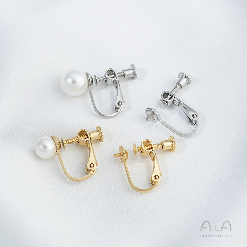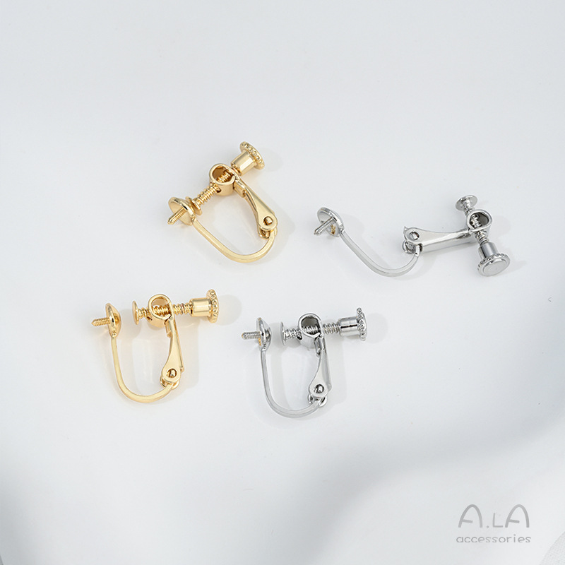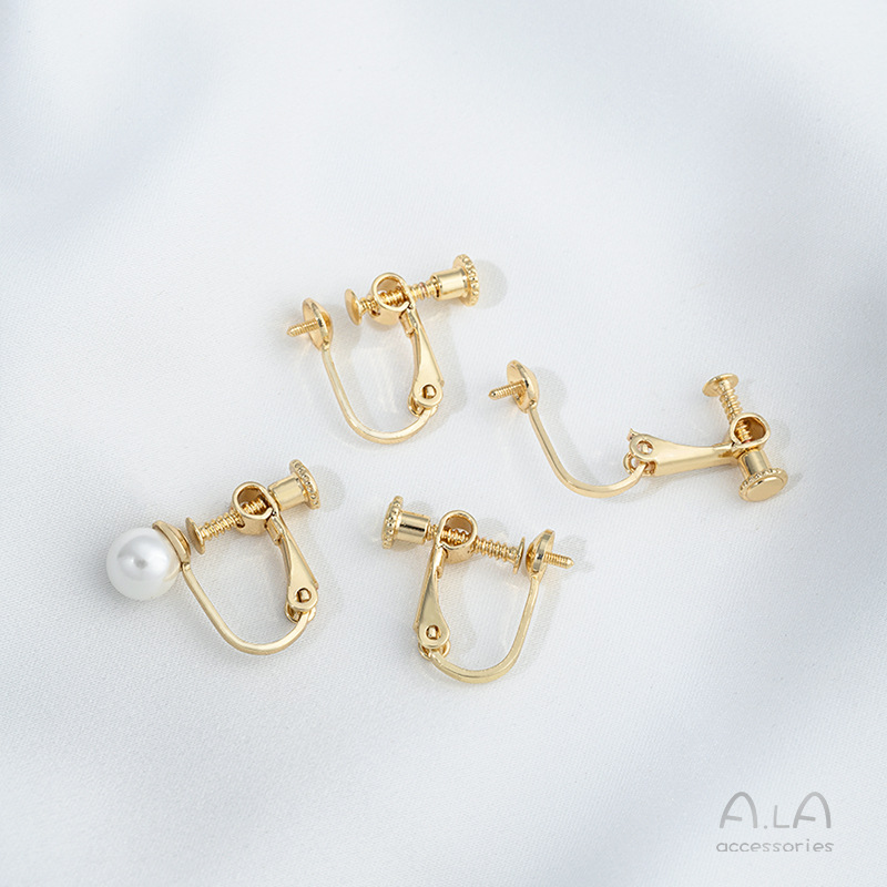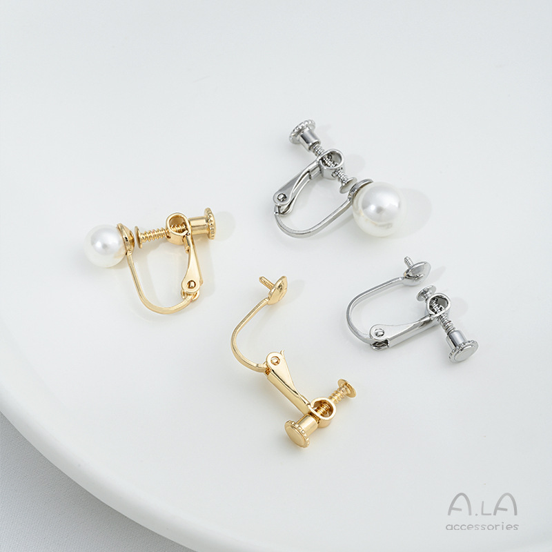 색상 보존 14K 구리로 감싼 진짜 금 반 구멍 비드 홀더 나사 귀 클립 DIY 수제 접착 진주 무통 귀 클립 액세서리