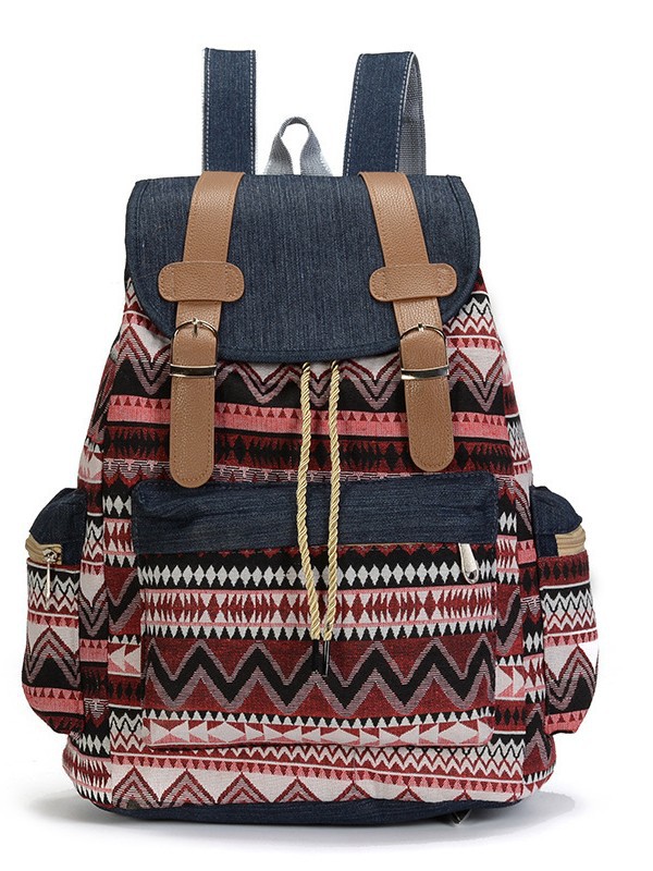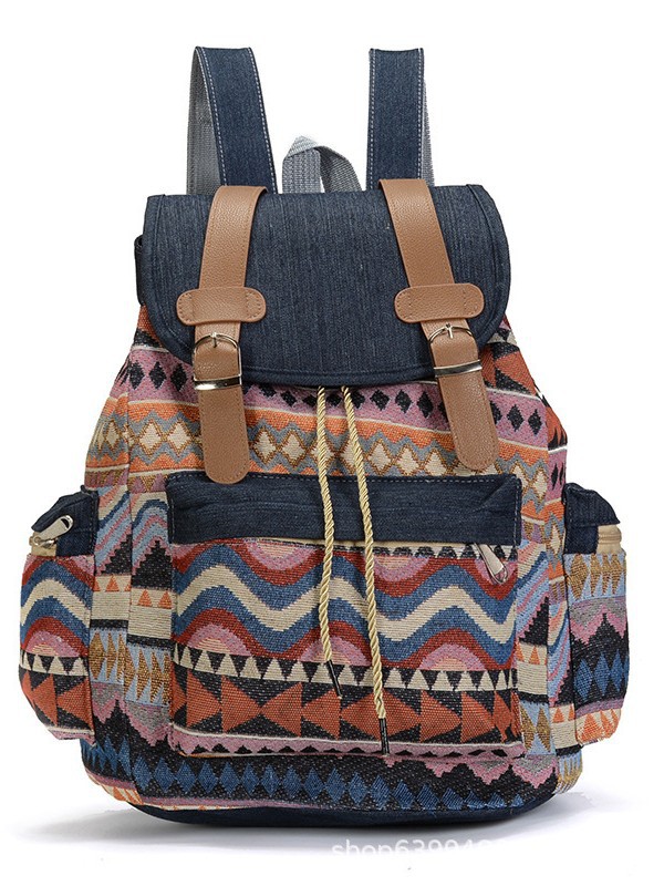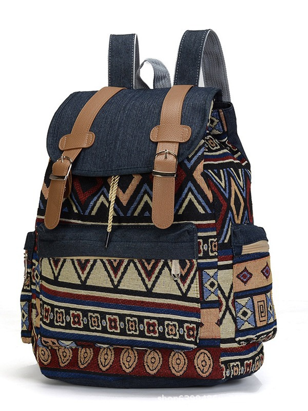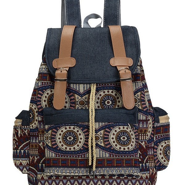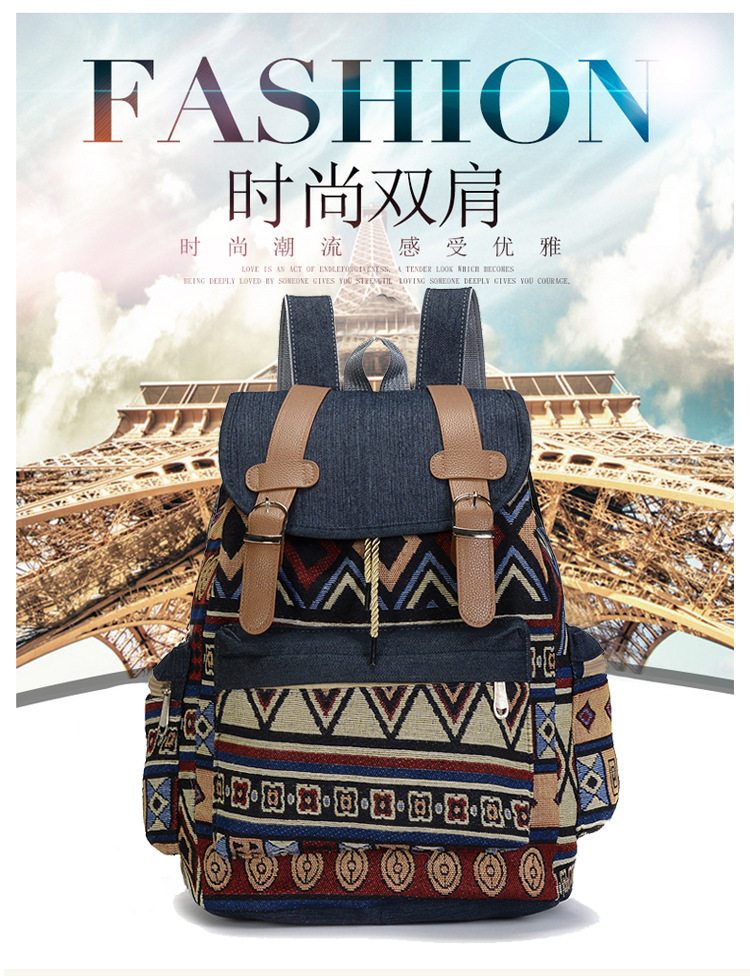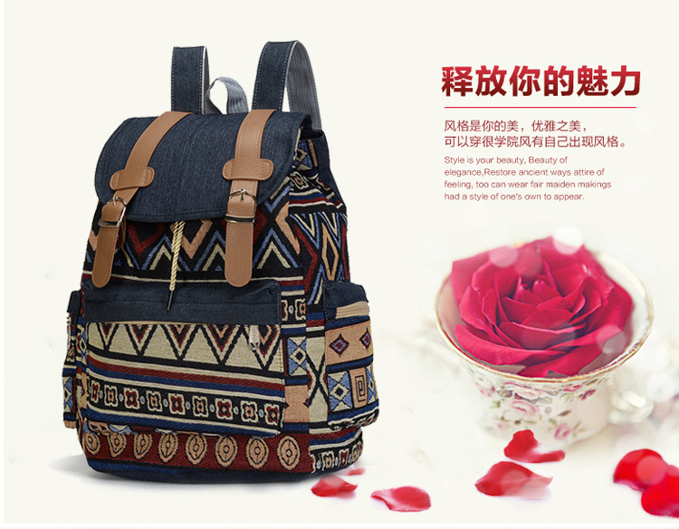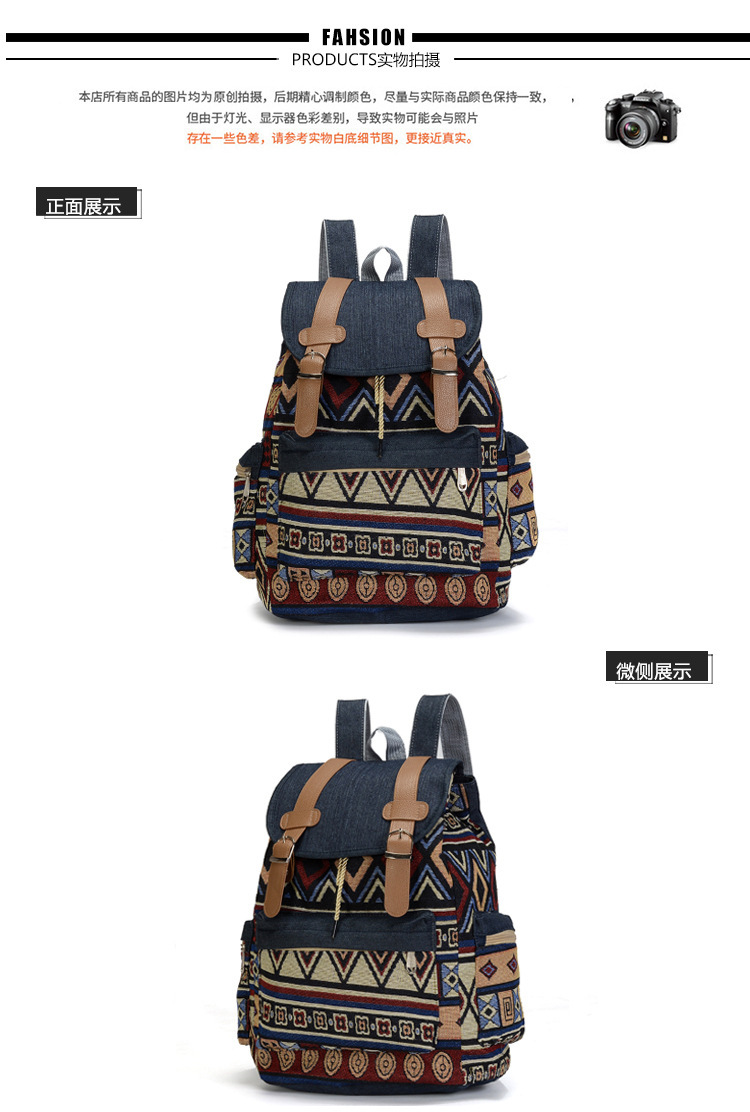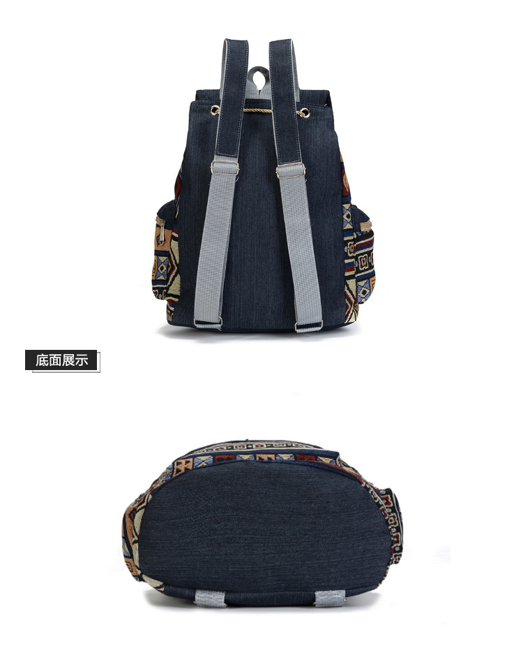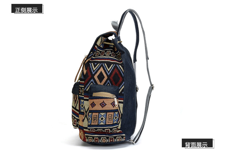 여성의 대용량 배낭을 대조하기 데님 국가 스타일 패턴 레저 가방 세대