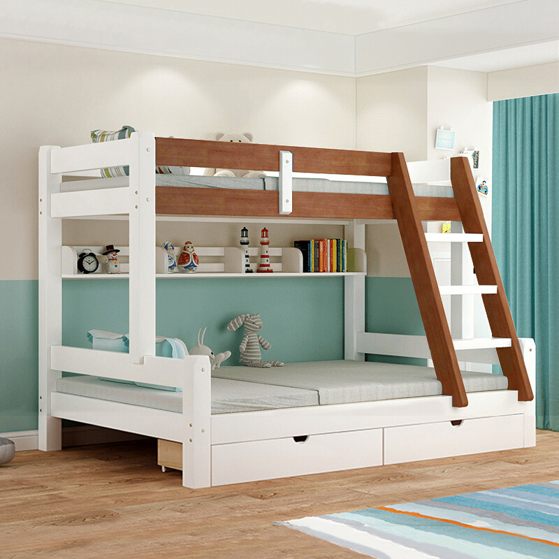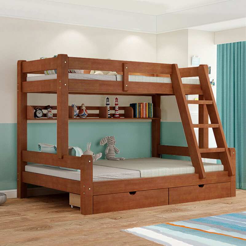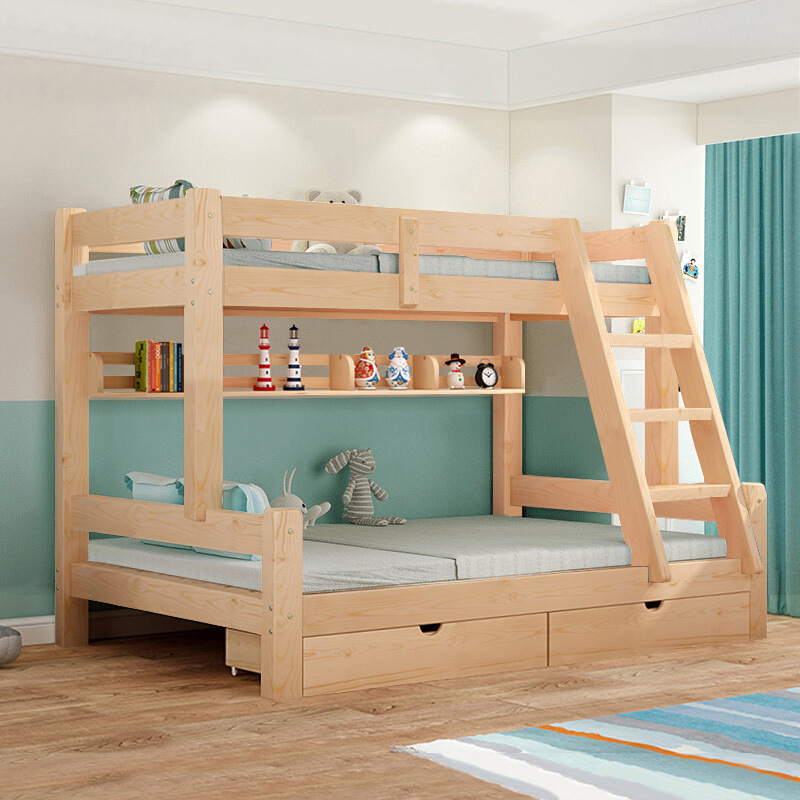 두툼하고 심플한 원목 어린이용 이층침대, 이층침대, 하이베드, 2층 이층 다기능
