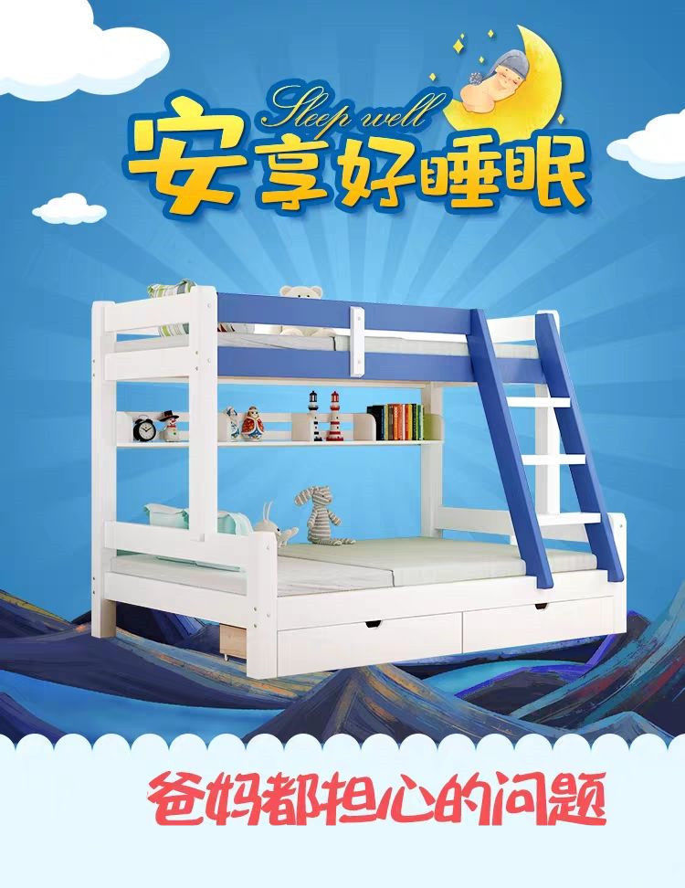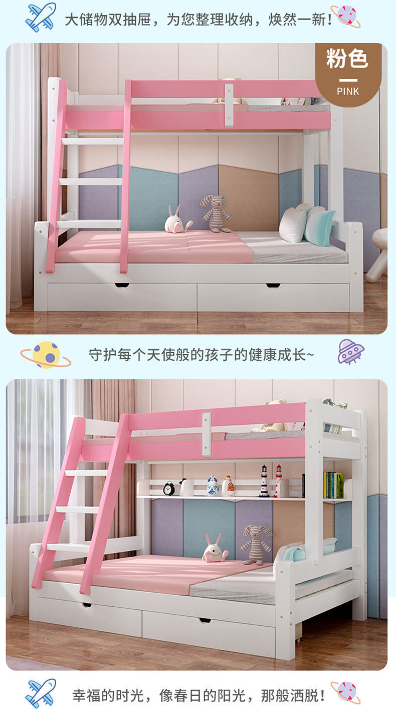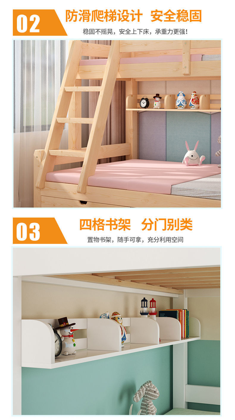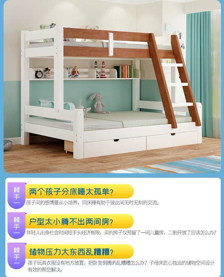 두툼하고 심플한 원목 어린이용 이층침대, 이층침대, 하이베드, 2층 이층 다기능스토어 가기