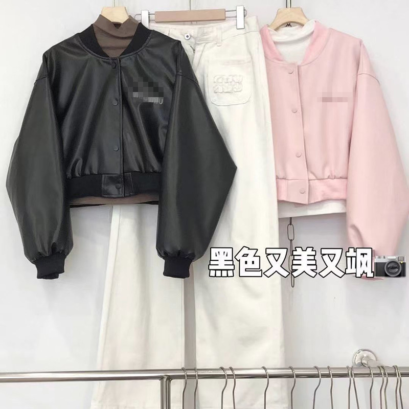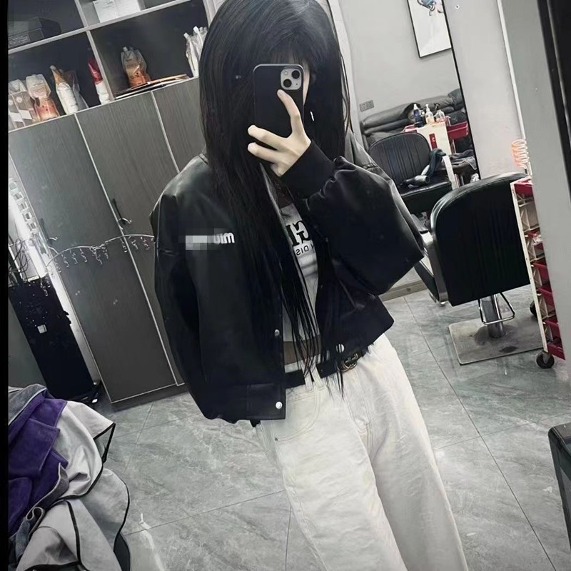 짧은 자수 편지 가죽 자켓 야구 세트 가죽 자켓 코트 올 매치 바이커 코트 여자 탑