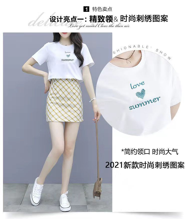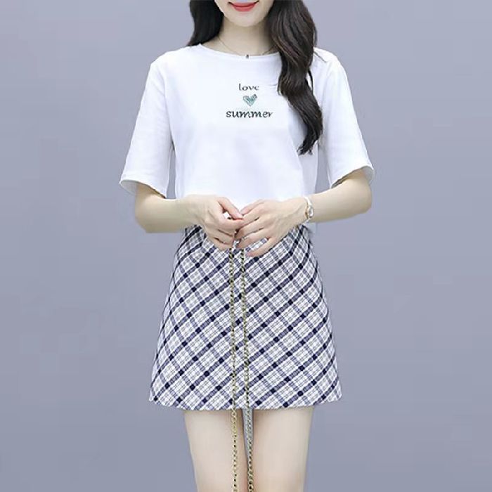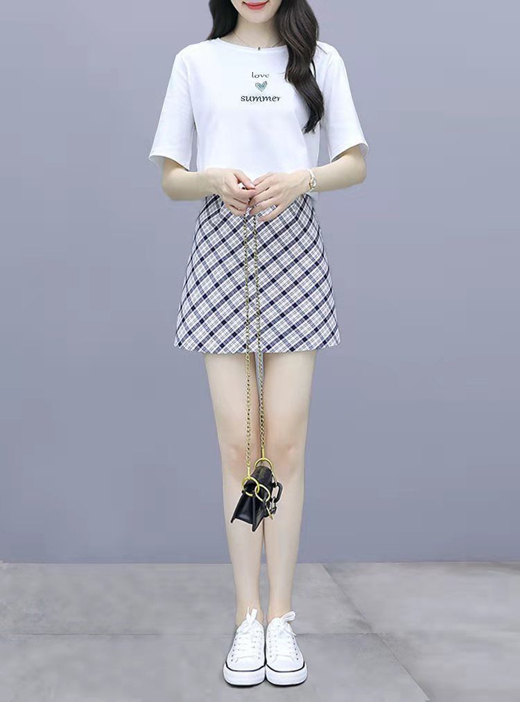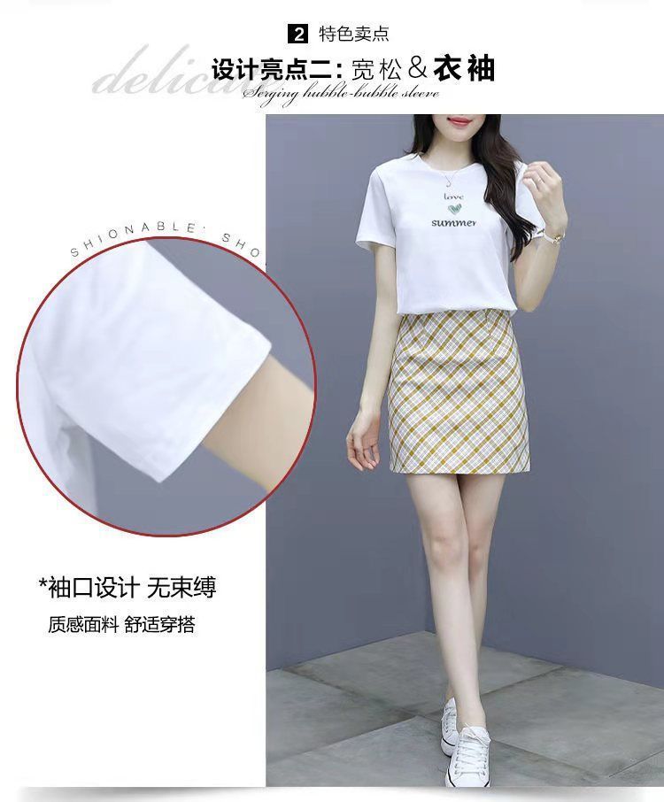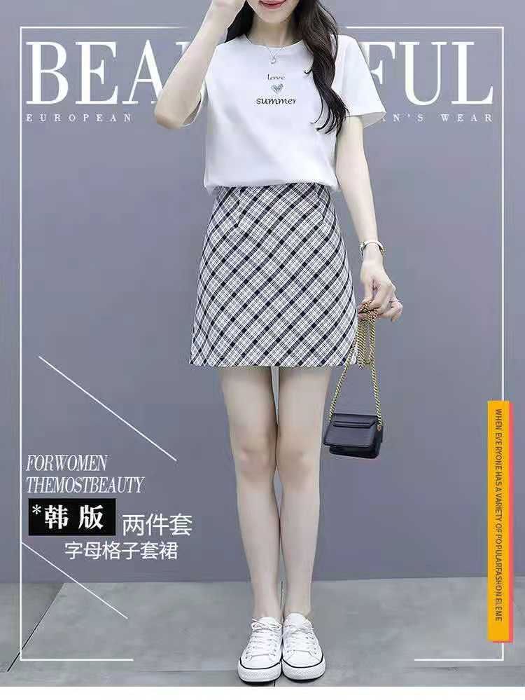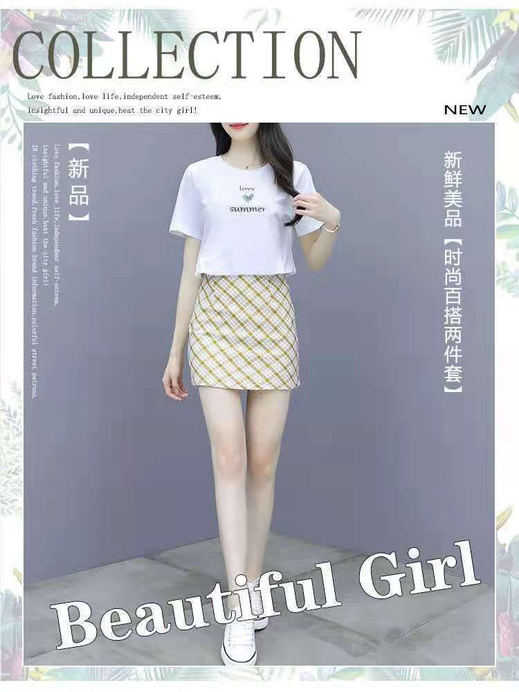 2025 여름 새 스타일 작은 캐주얼 스포츠 세트 여성 반팔 짧은 치마 여자 친구 패션 작은 신선한 투피스 세트스토어 가기