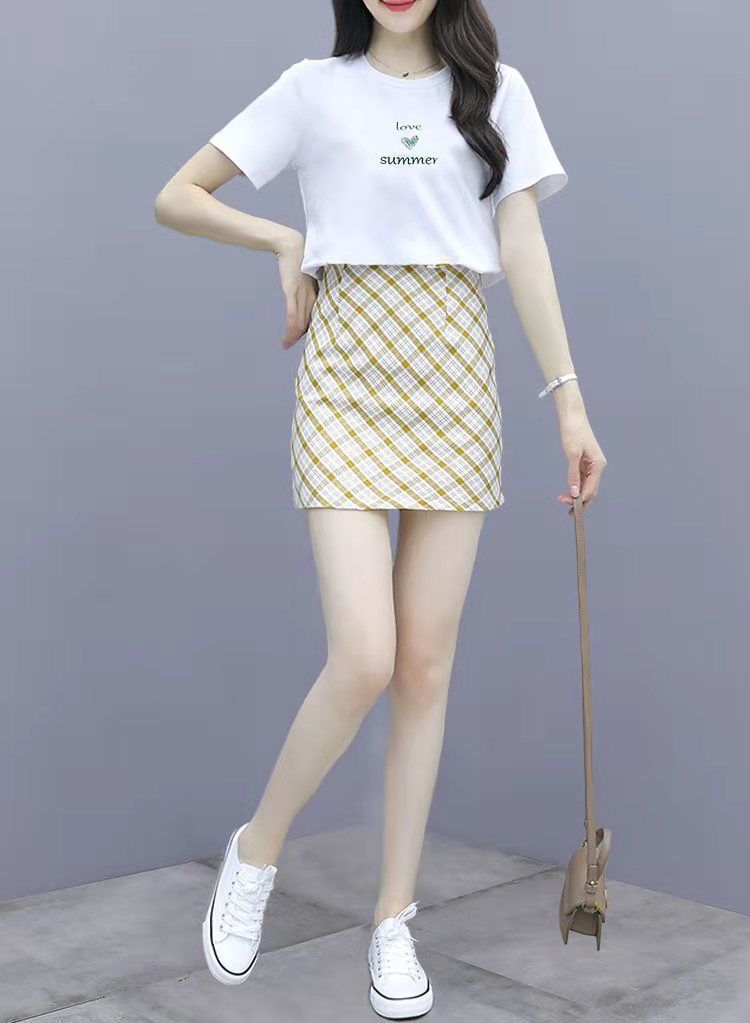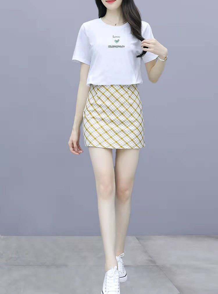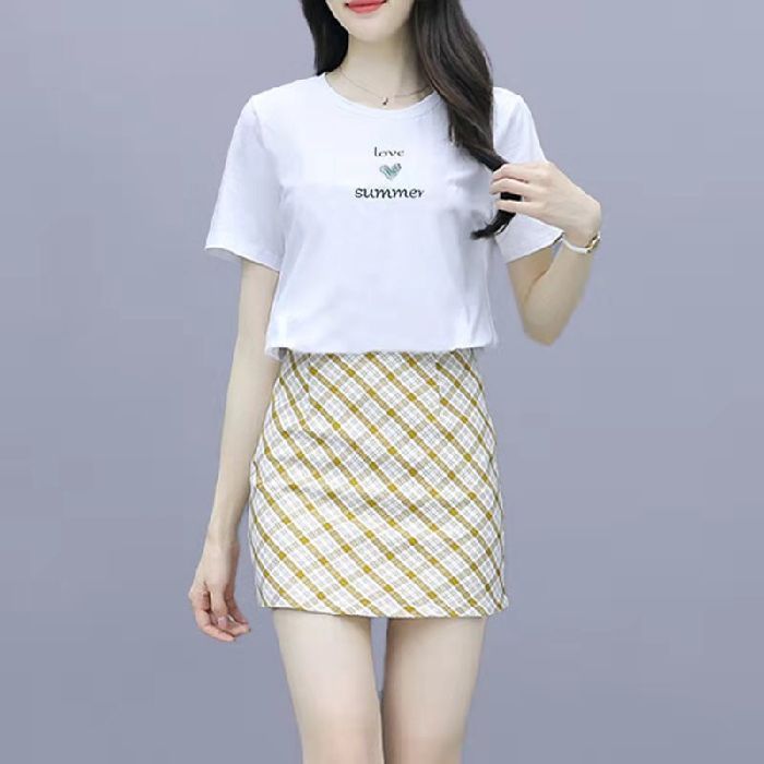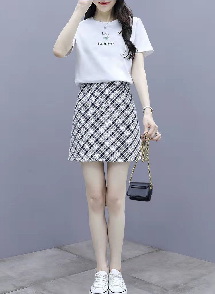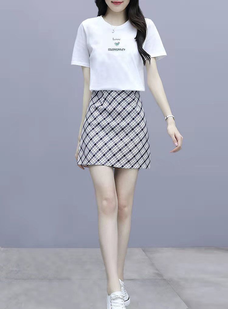 2025 여름 새 스타일 작은 캐주얼 스포츠 세트 여성 반팔 짧은 치마 여자 친구 패션 작은 신선한 투피스 세트스토어 가기