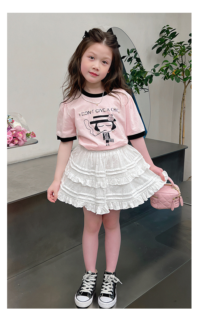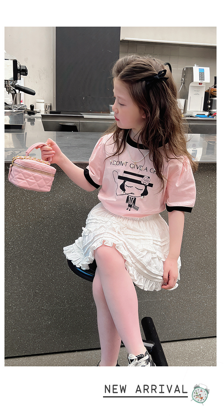 코튼 어린이 세련 된 반팔 티셔츠 걸스 콘트라스트 컬러 탑 빅 아동복 인터넷 인기 어린 소녀의 2025 여름 새로운 스타일