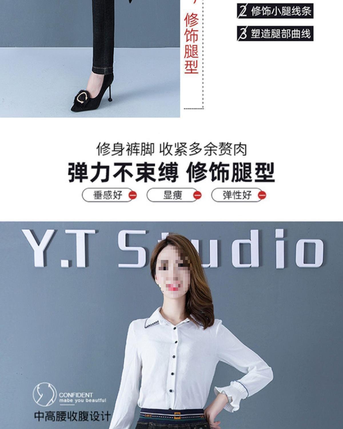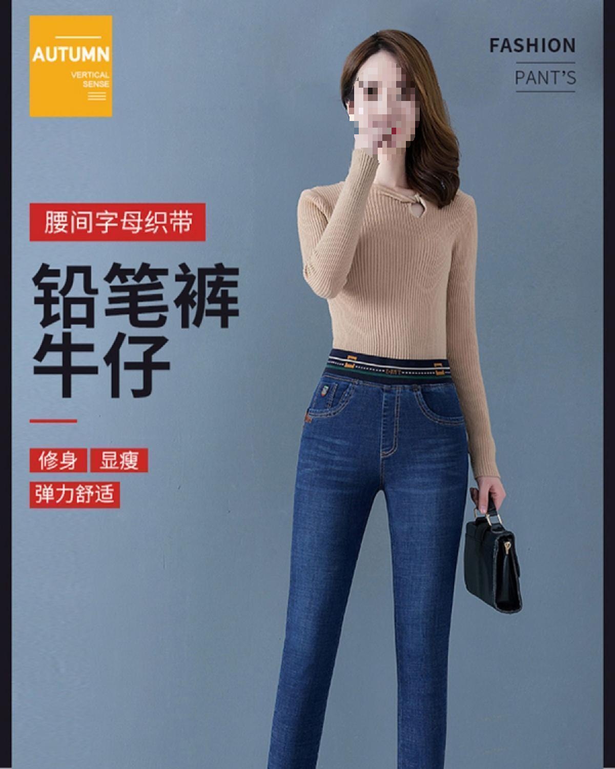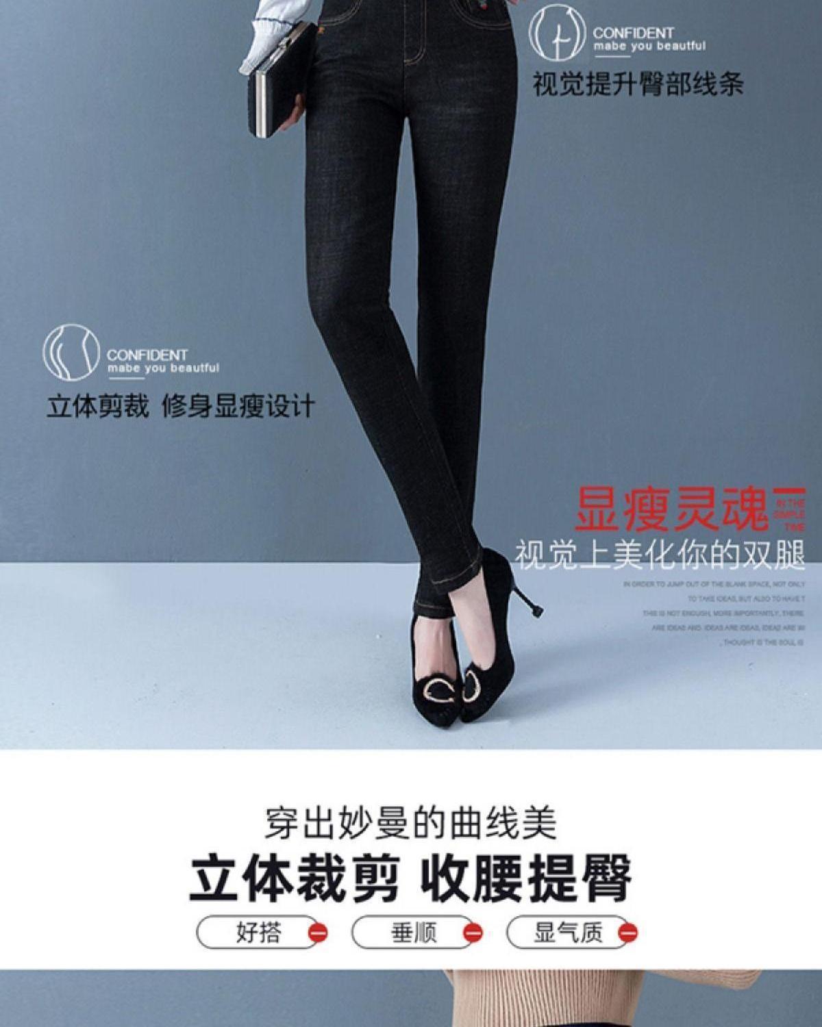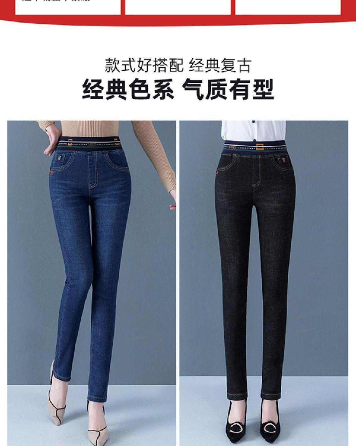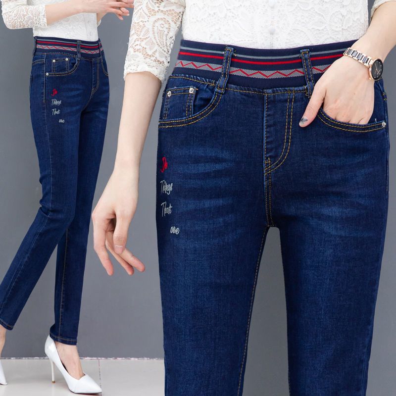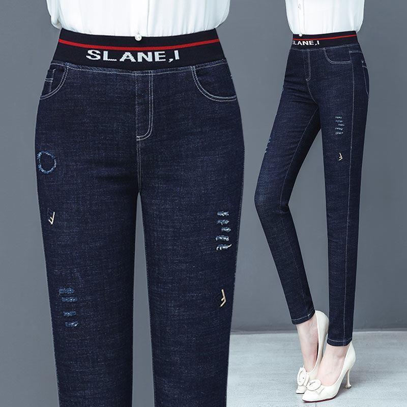 여성용 신축성 있는 허리 청바지 봄 신상 하이웨이스트 중년 엄마 바지 슬림 바지 작은 발 펜슬 팬츠 봄, 가을스토어 가기