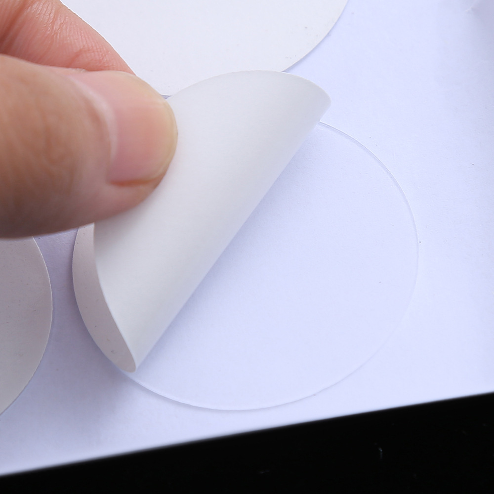 • 투명 0.8mm 두께(흰색 베이스 필름), 원형 직경 20mm*0.8mm 두께(50개/장 가격)