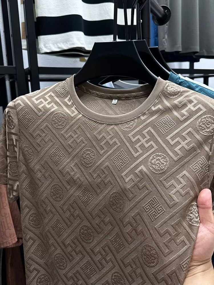 광저우 13 라인 여름 새로운 자카드 반팔 티셔츠 남성용 크루 넥 아이스 실크 얇은 빠른 건조 캐주얼 반소매 남성