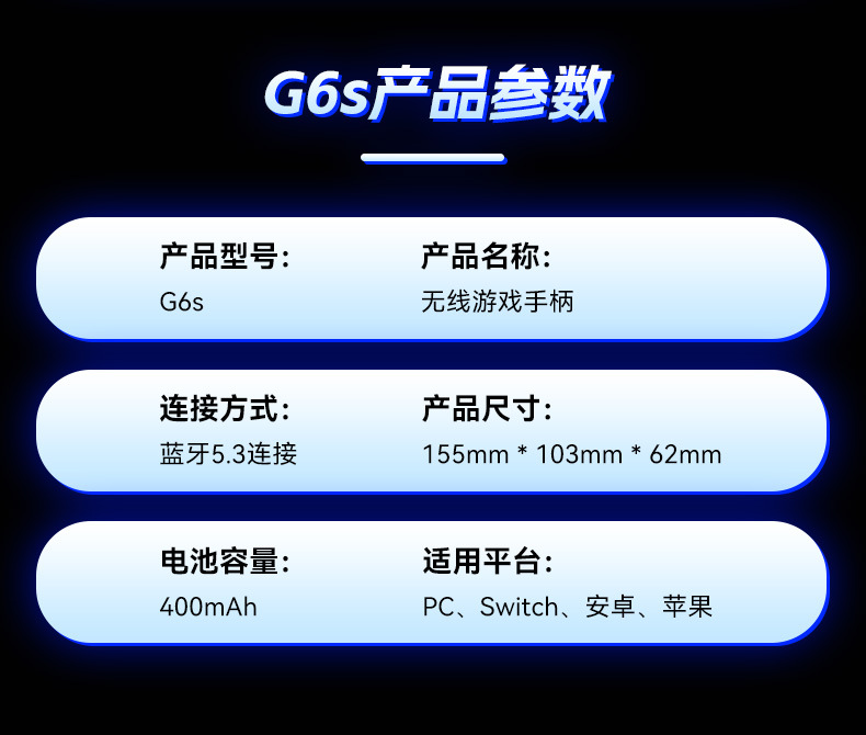 G6s单个包装:16*11*6.5cm,268g(含包装)