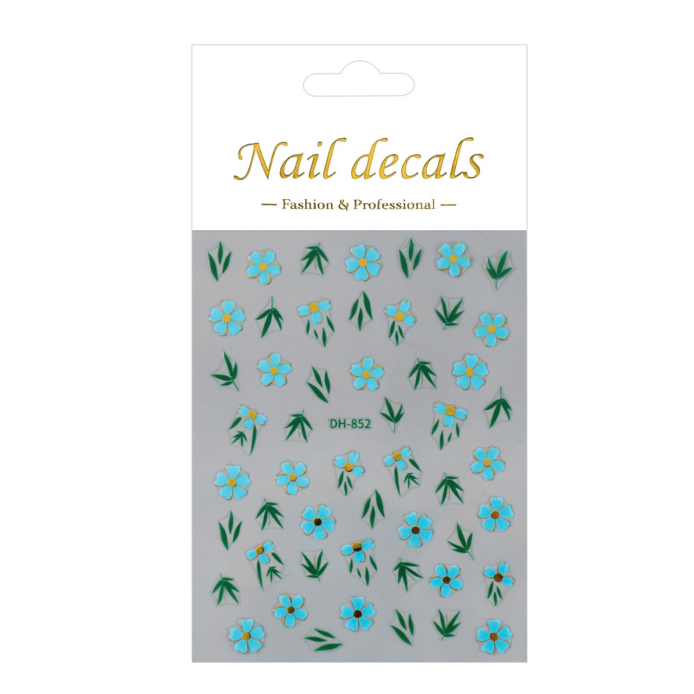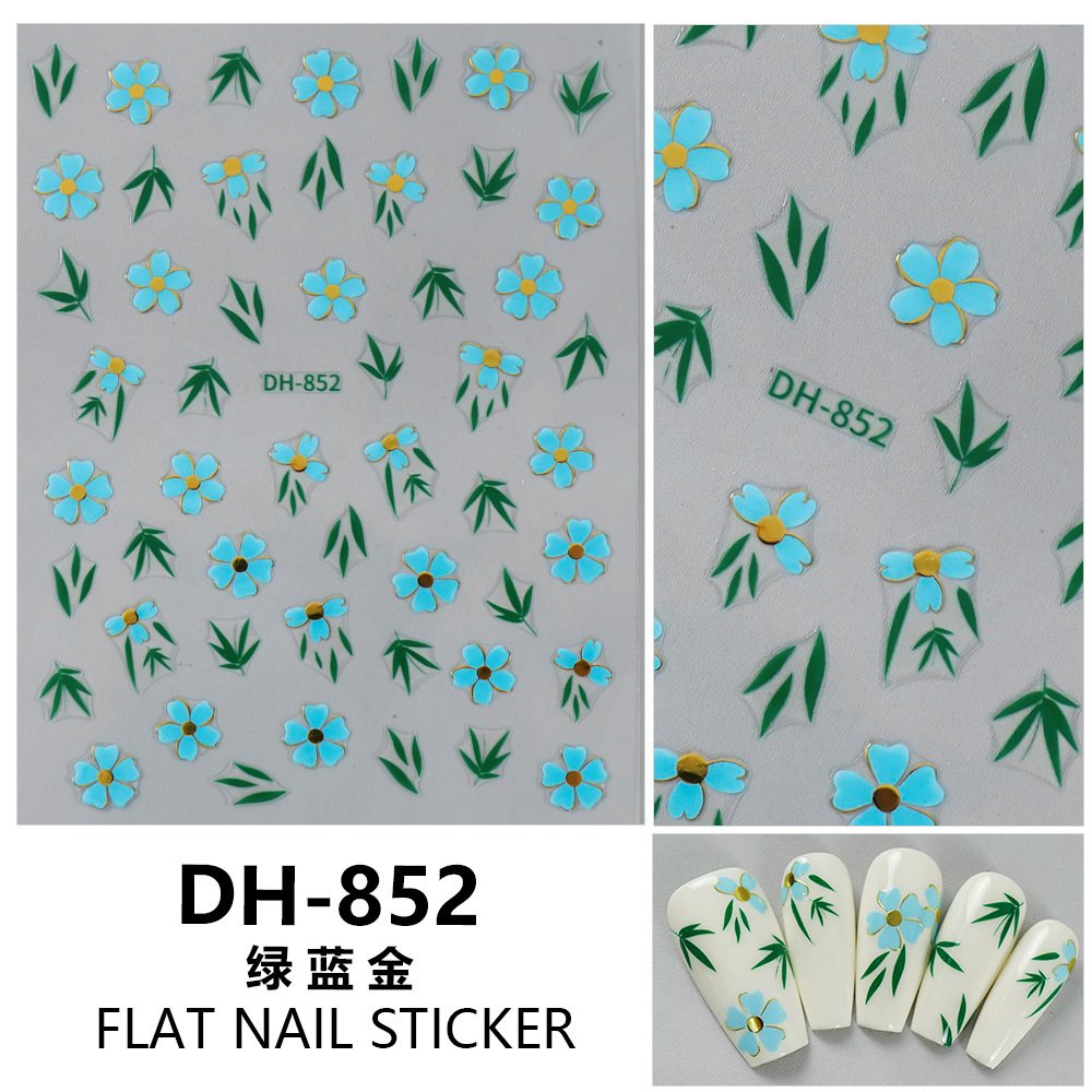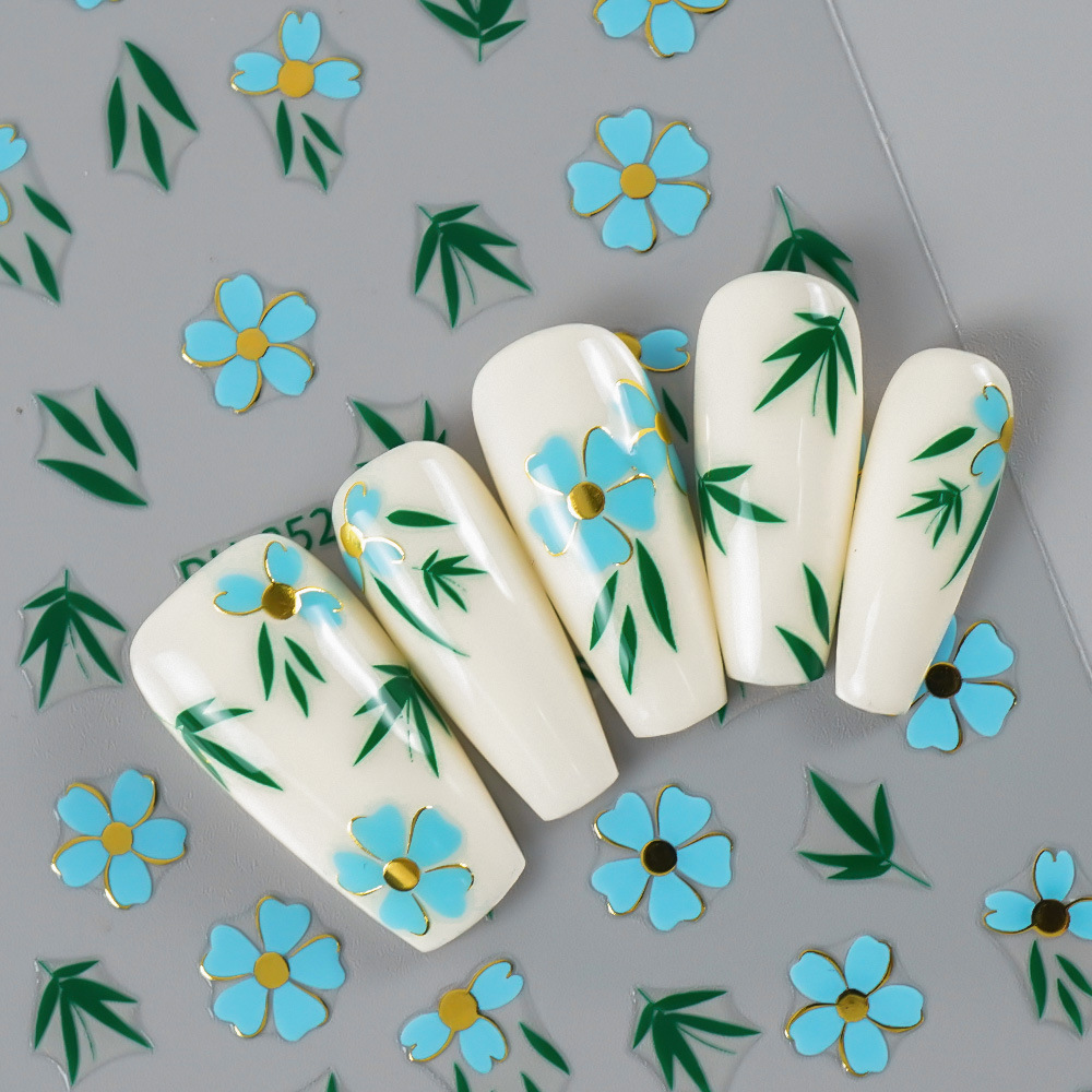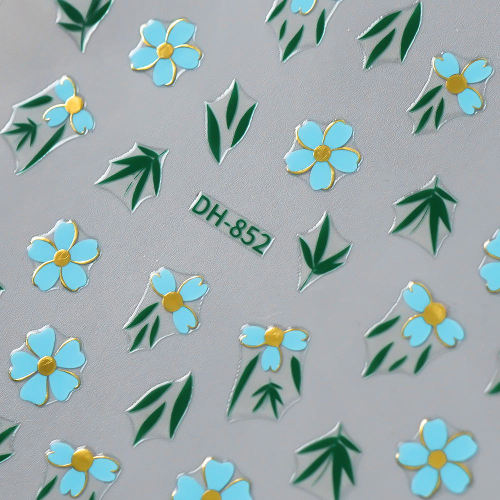 Redanco 새로운 3D 평면 인기 블루 골드 꽃 네일 아트 스티커 입체 접착 네일 스티커 DH-852스토어 가기