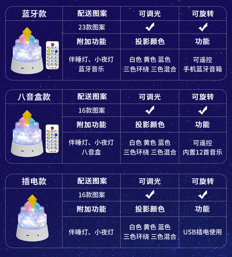 产品款式:插电款 - 八音盒 - 蓝牙音乐款