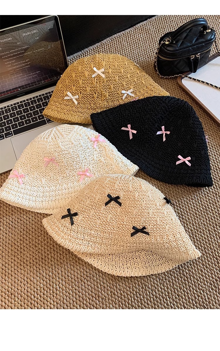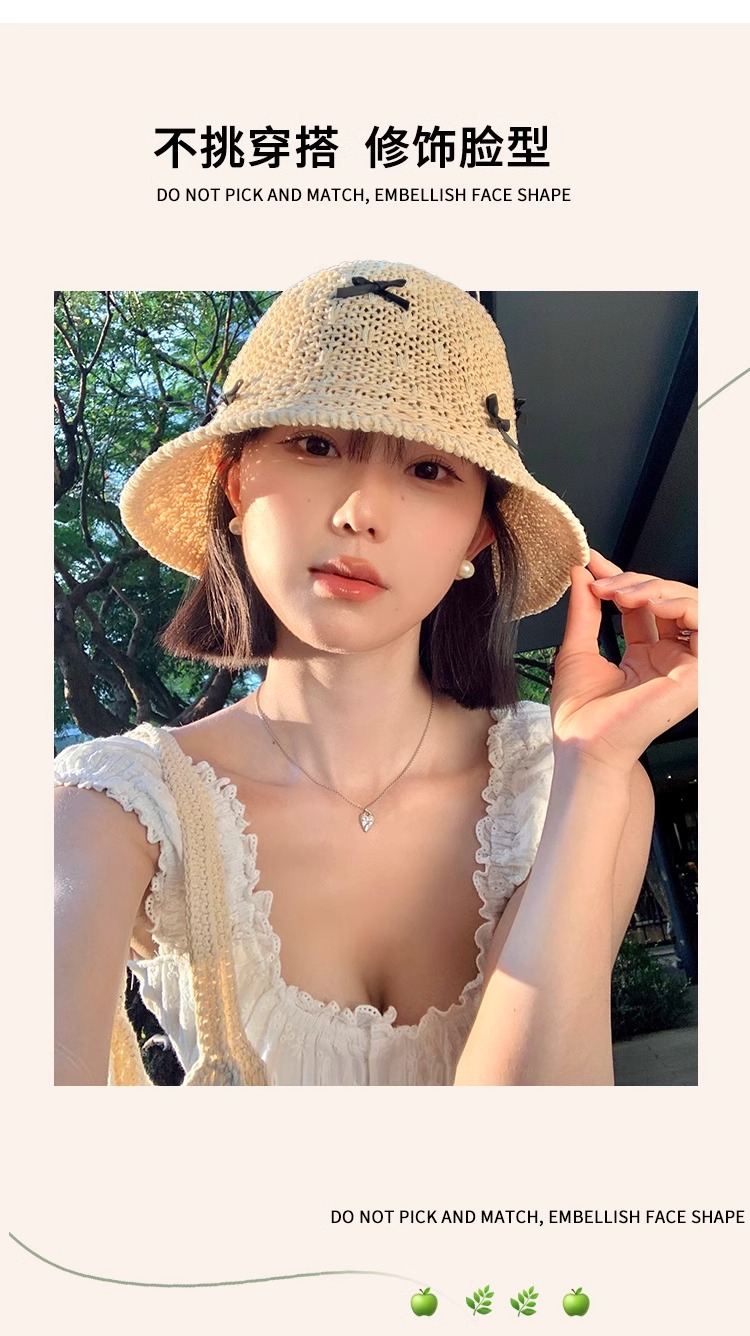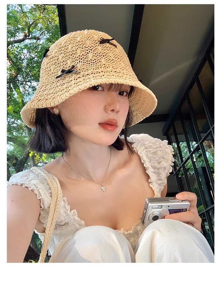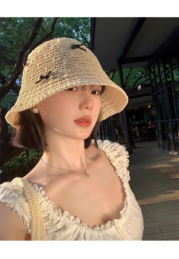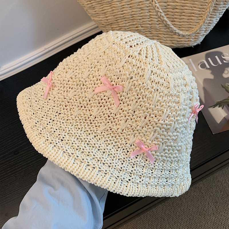 달콤한 활 손으로 짠 어부 모자 어린이 여름 중공 통기성 해변 햇빛 자외선 차단 냄비 모자스토어 가기
